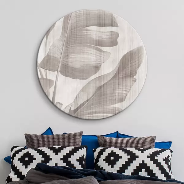 Cuadros redondos Hojas de plátano silenciadas en texturas suaves r35851