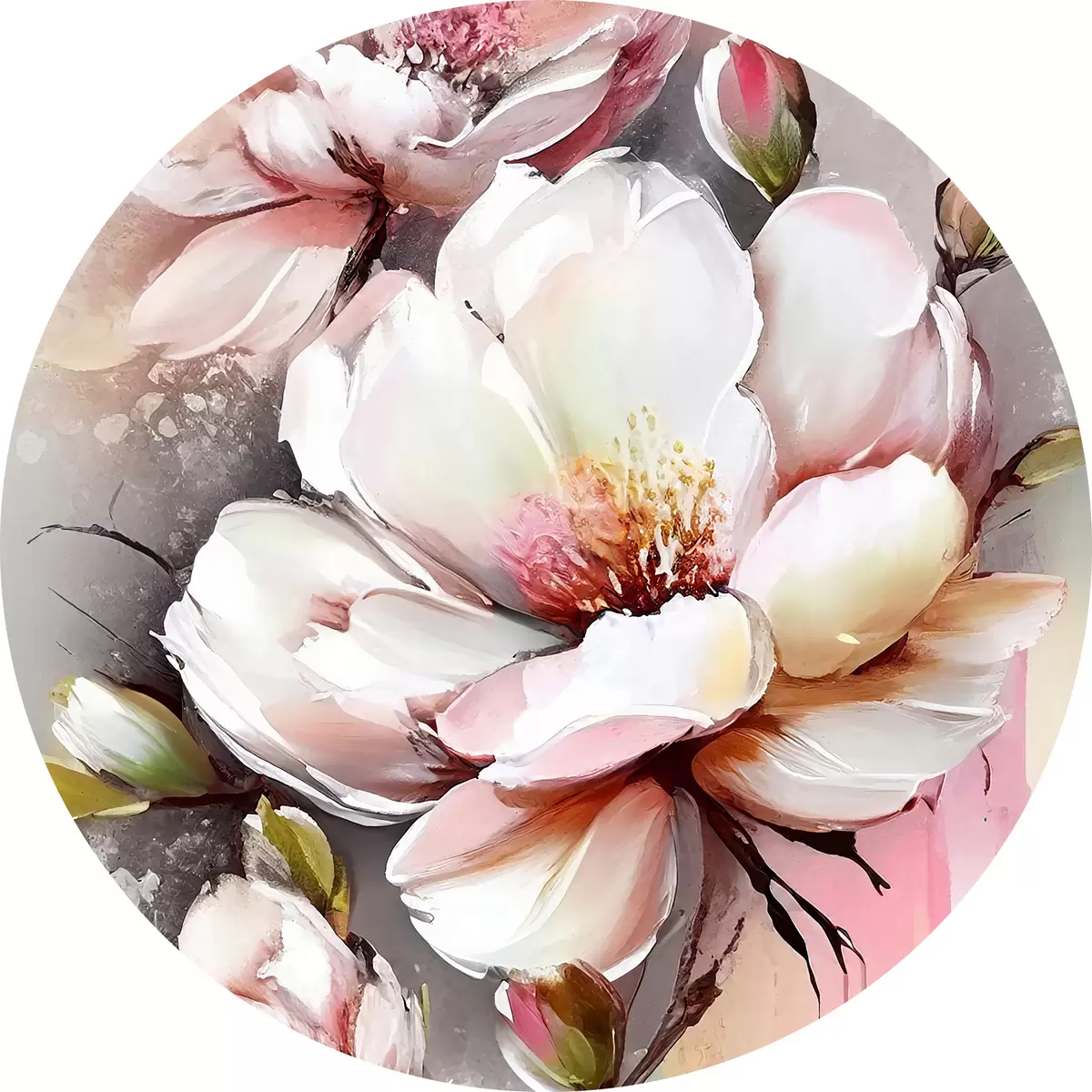 Cuadros redondos Gracia en flor: Pétalos suaves y tonos delicados r35925