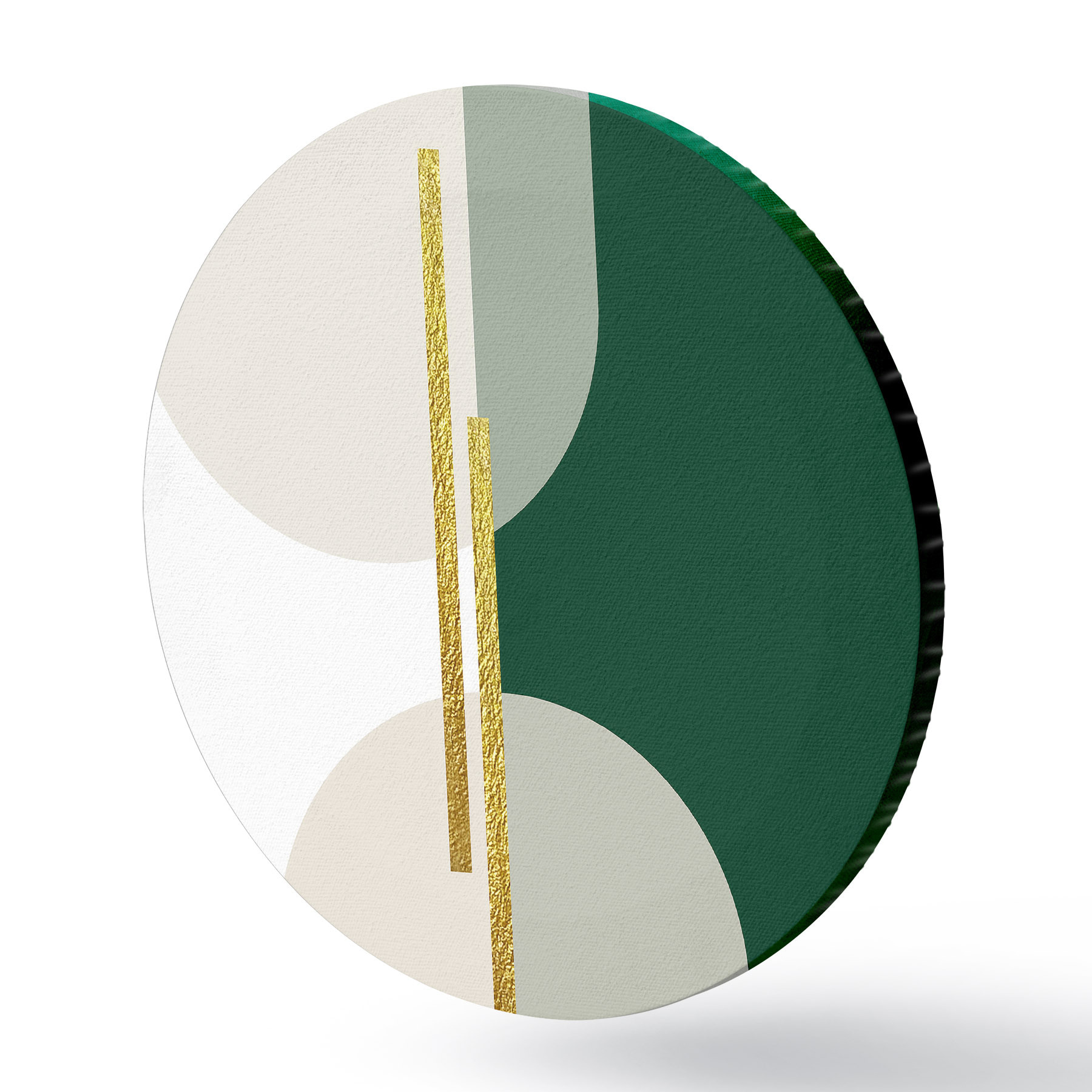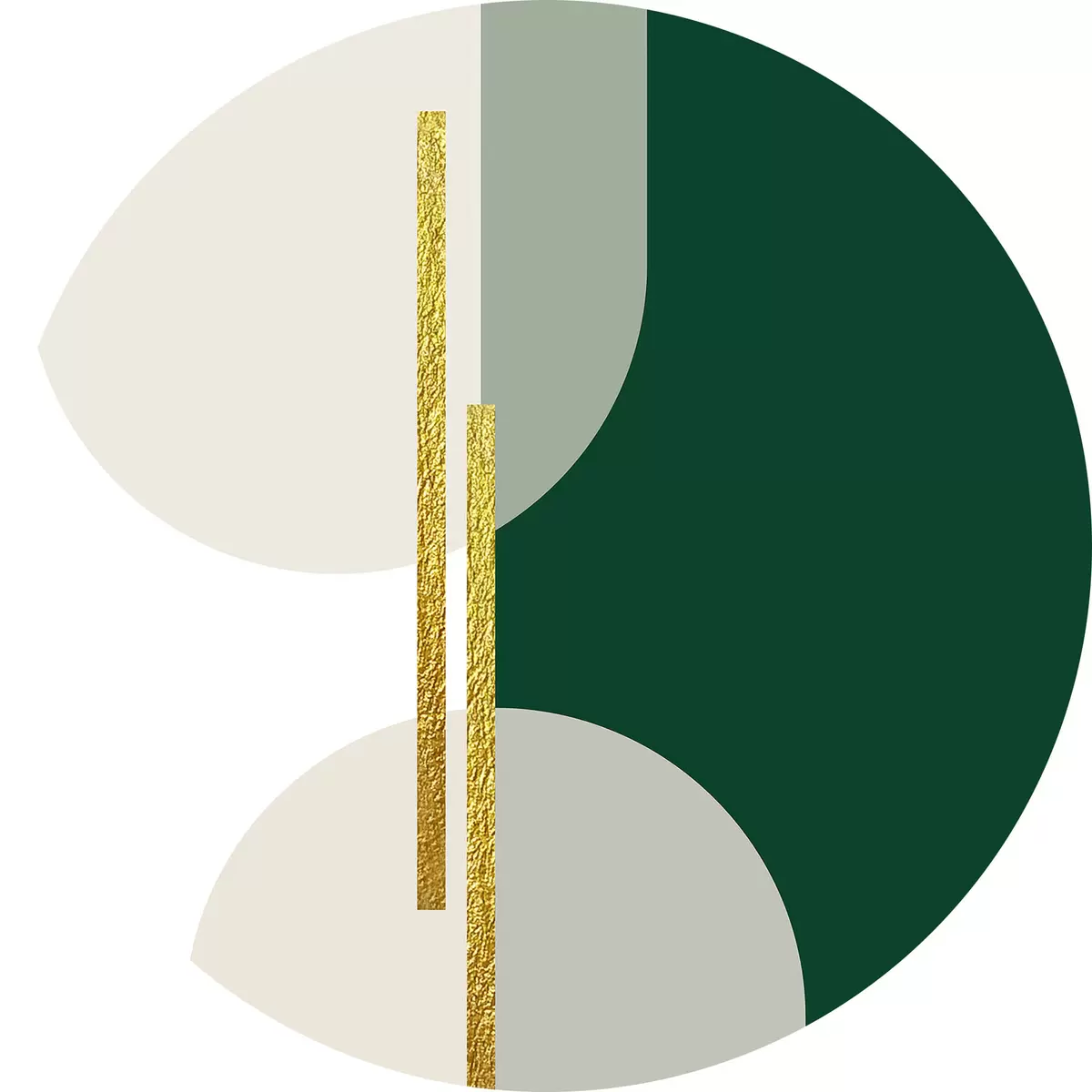 Cuadros redondos Arte mural abstracto en colores beige, verde y dorado r35943