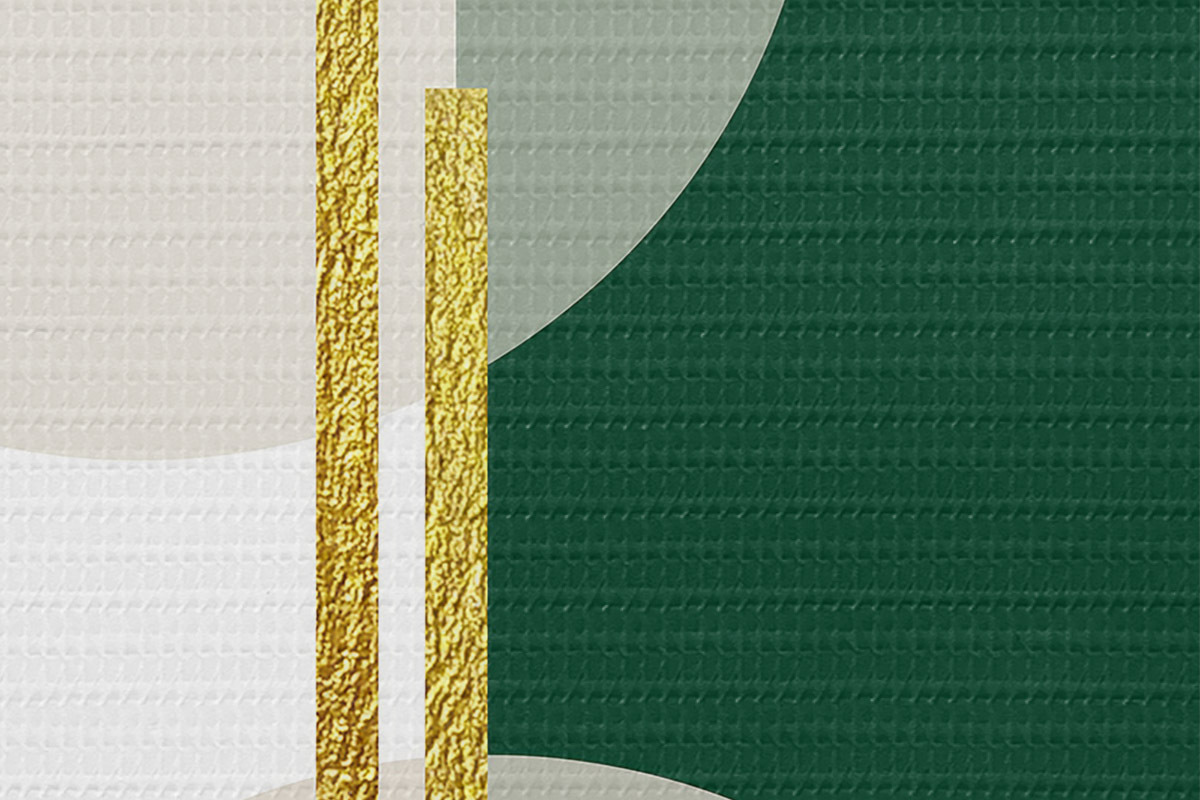 Foto Arte mural abstracto en colores beige, verde y dorado Nr r35943
