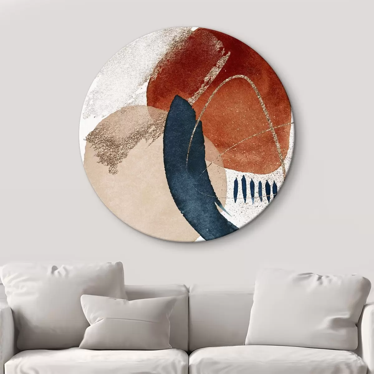 Cuadros redondos Viaje abstracto: Armonía de terracota y azul profundo r35954