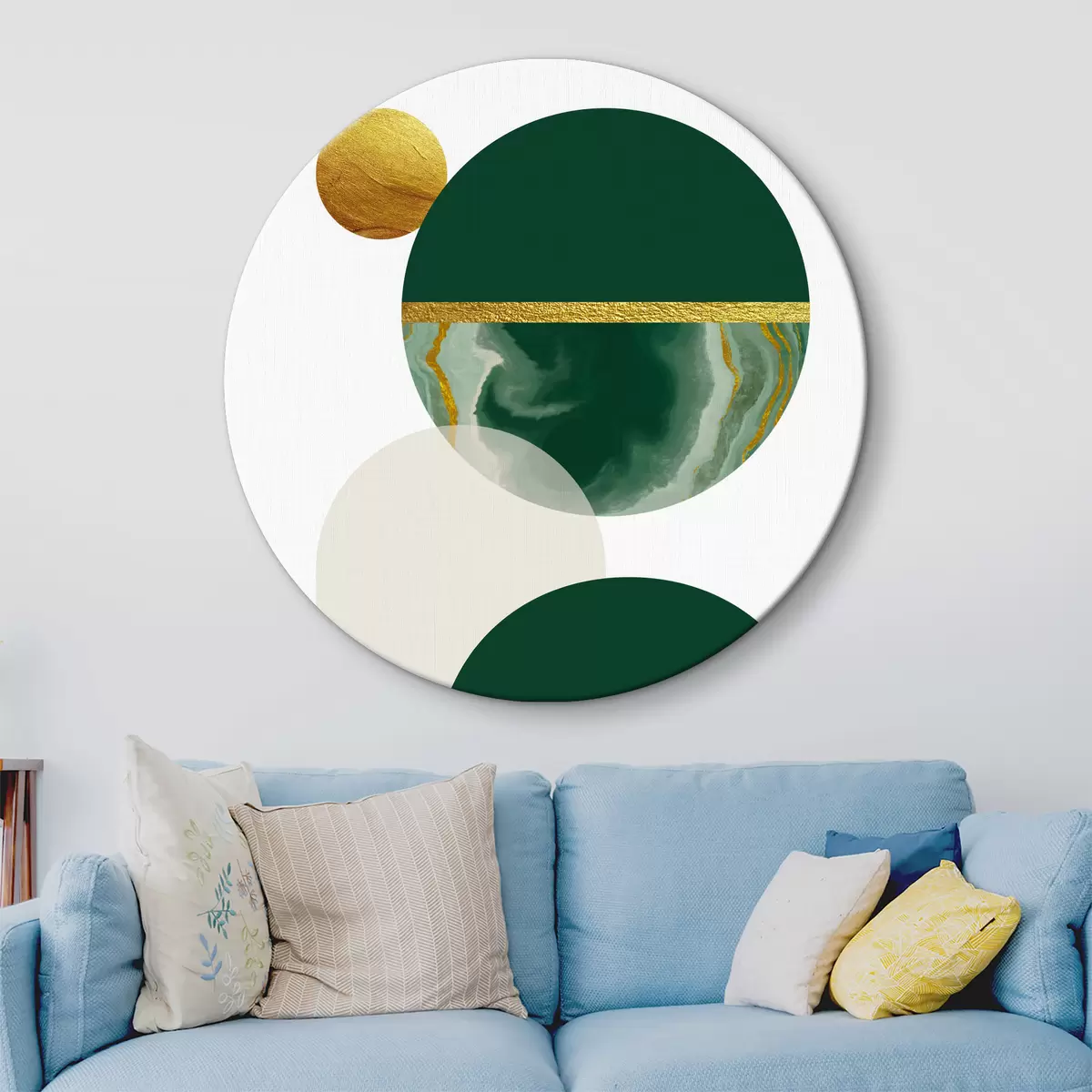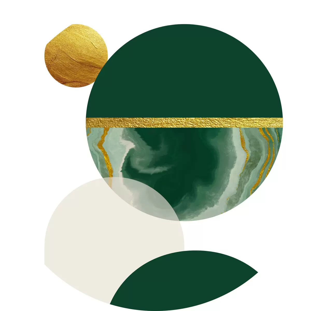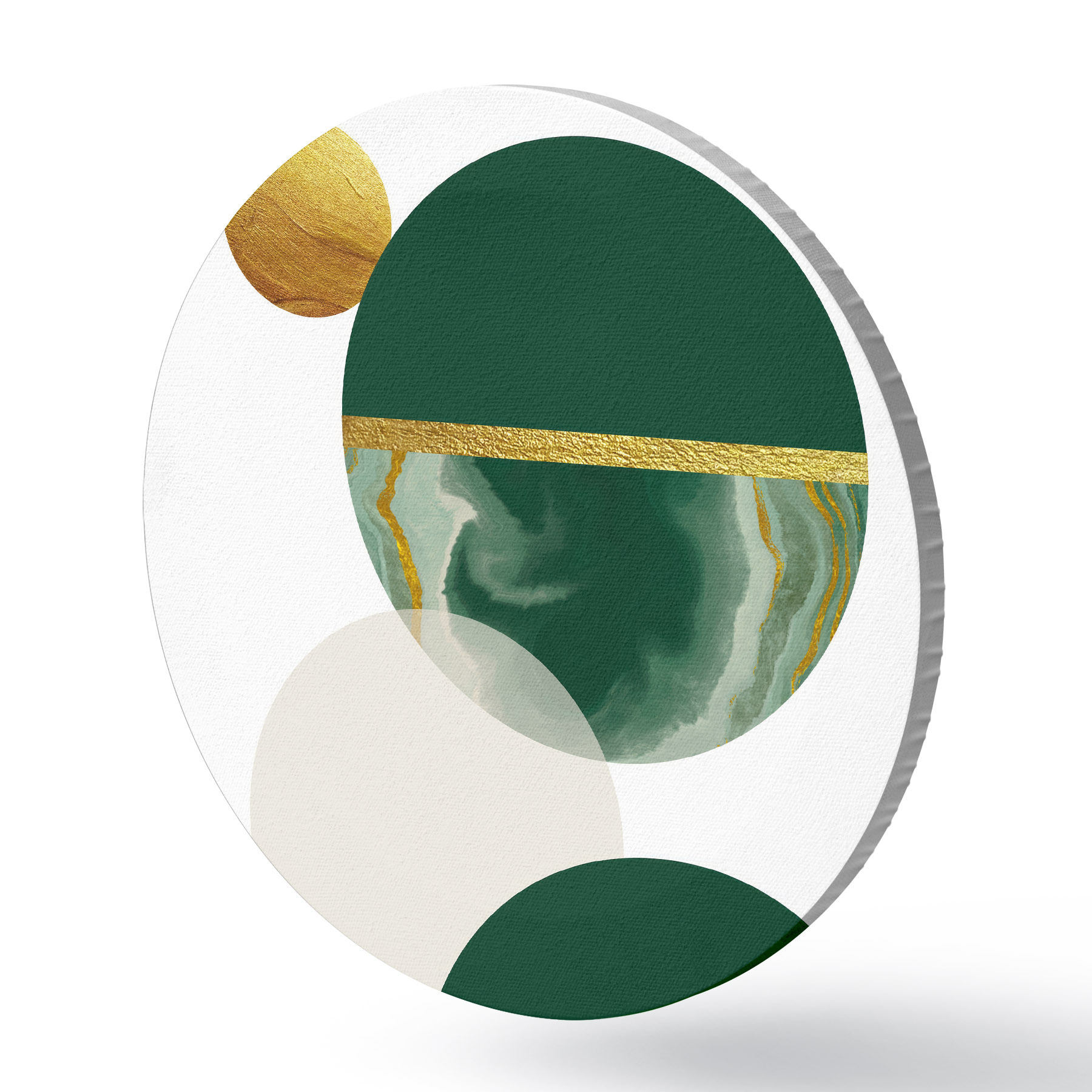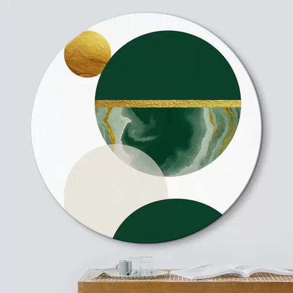 Cuadros redondos Equilibrio esmeralda: Diseño geométrico con tonos naturales r35985
