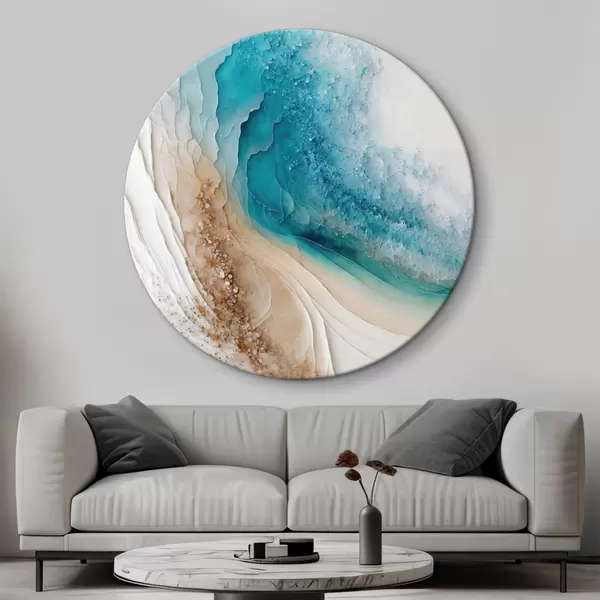 Cuadros redondos Arte fluido en turquesa y blanco r36029