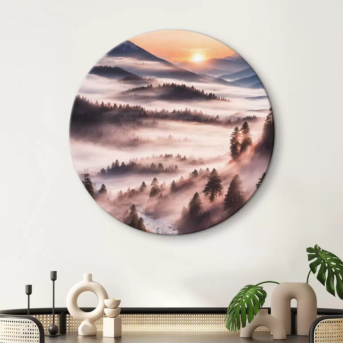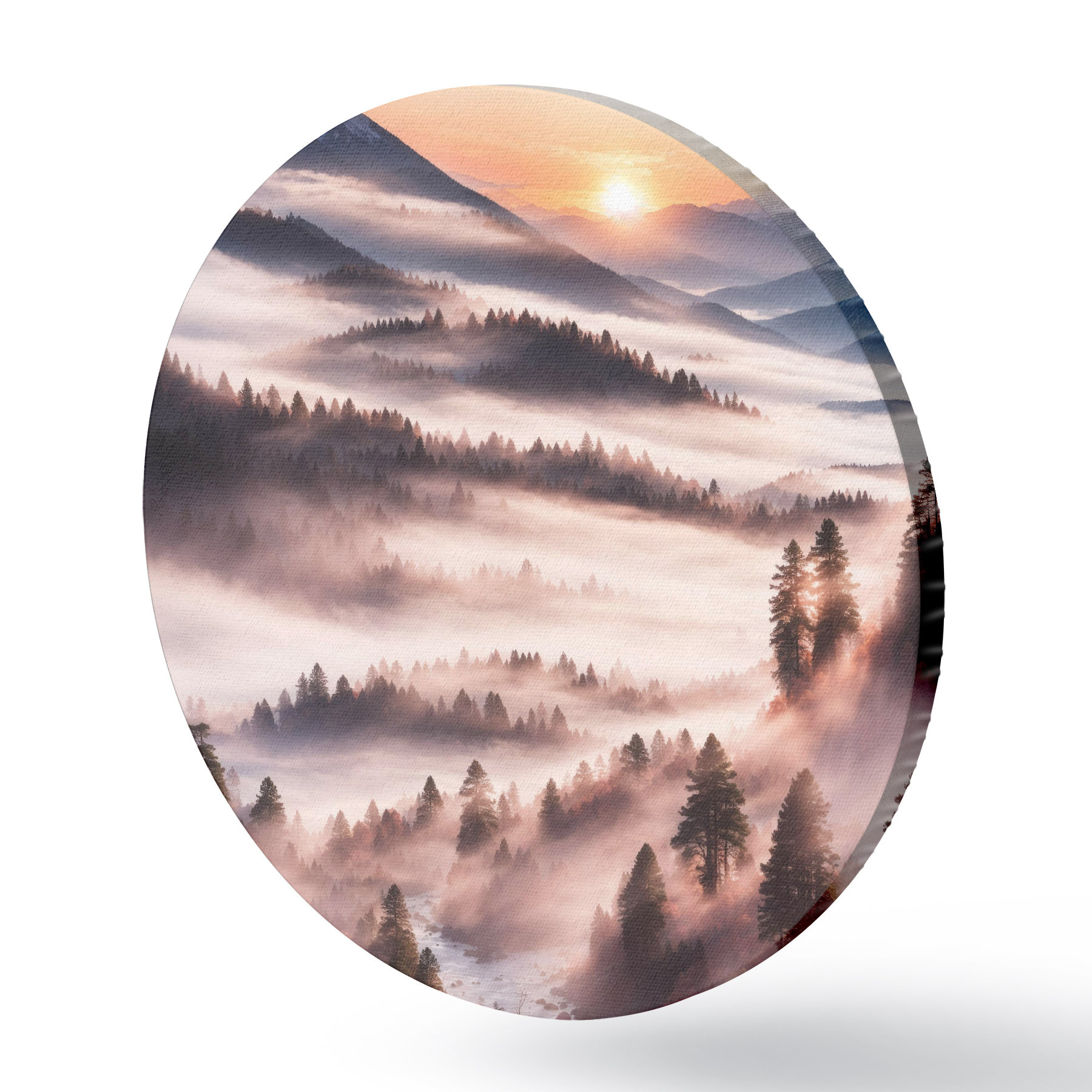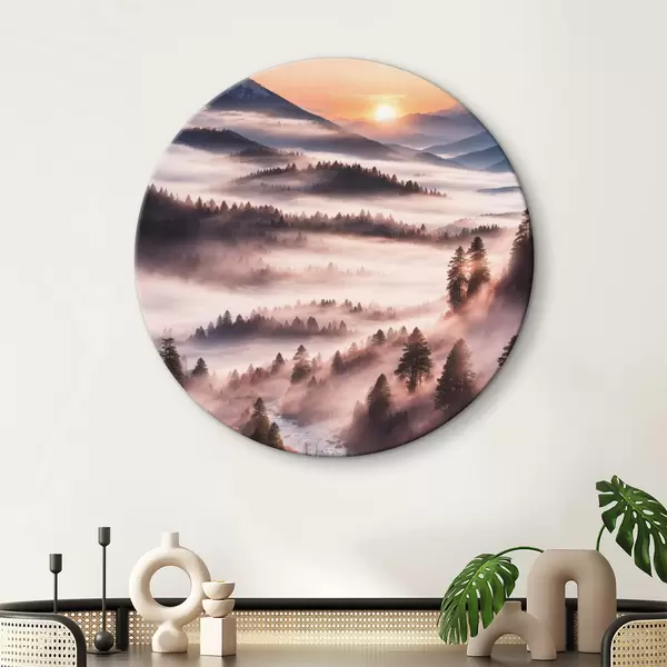 Cuadros redondos Vista del bosque con niebla r36050