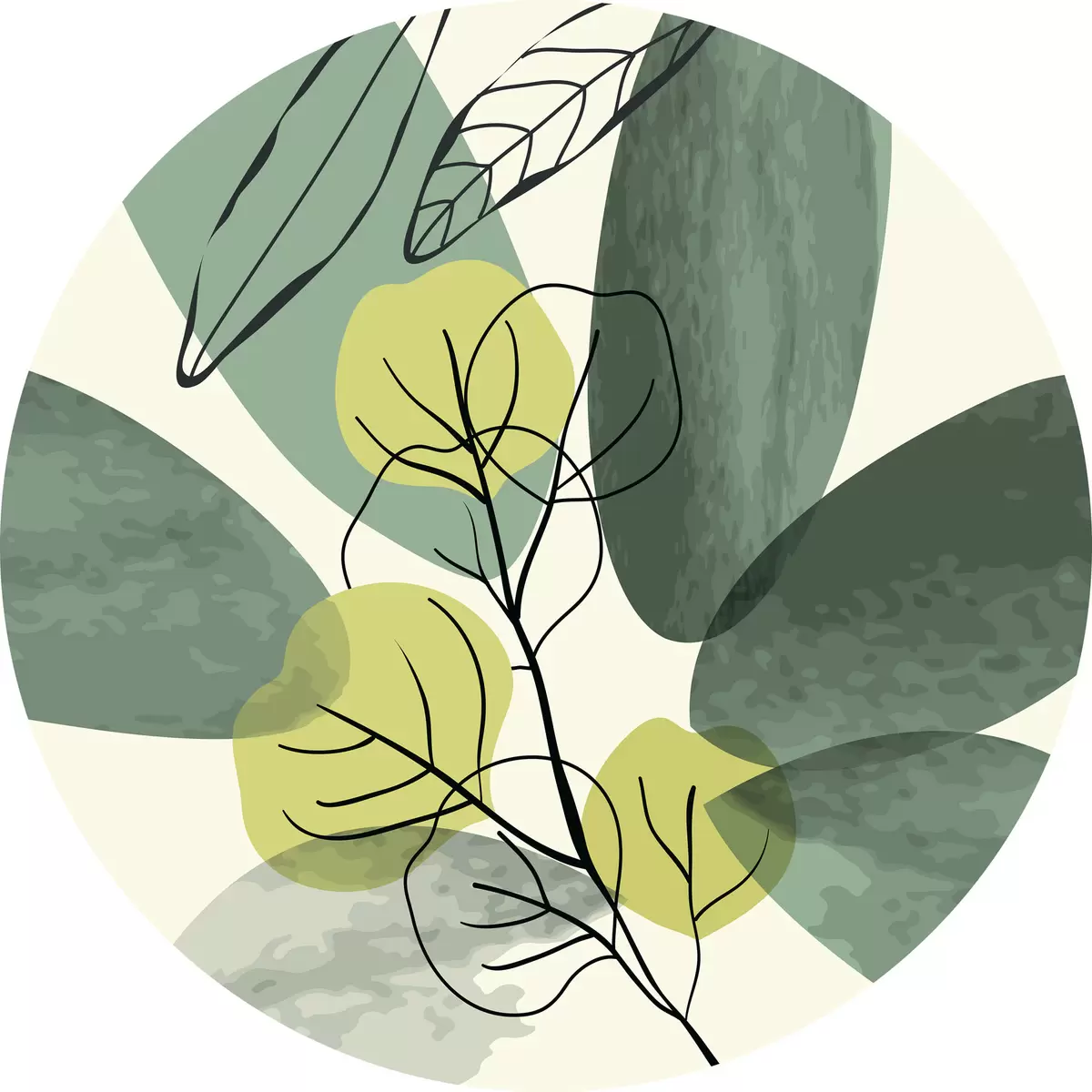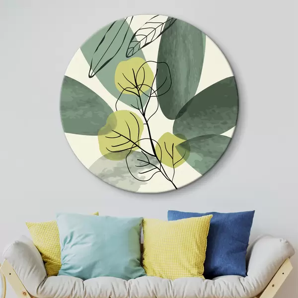 Cuadros redondos Dibujo en acuarela de follaje boho r36106