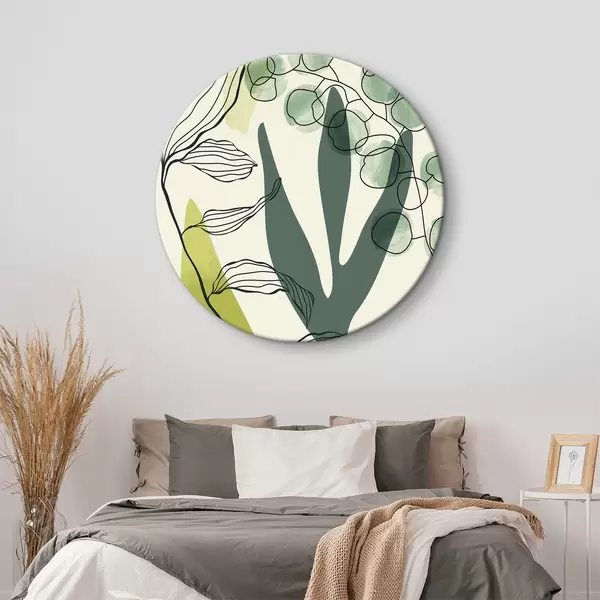 Cuadros redondos Flores y hojas abstractas de acuarela r36133