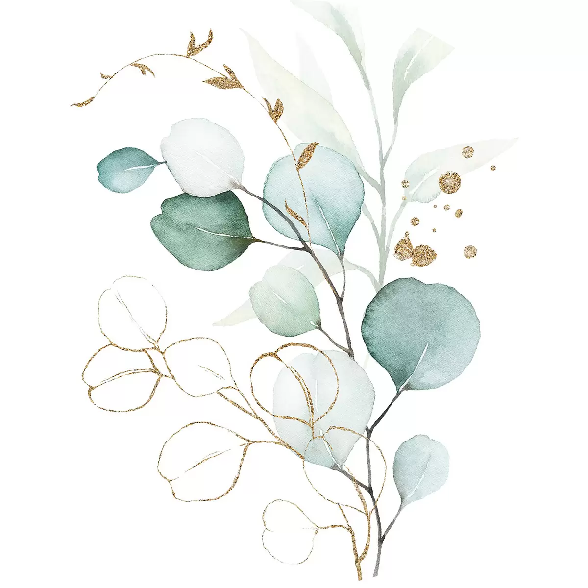 Foto Acuarela de una rama con hojas doradas y azules Nr r36138
