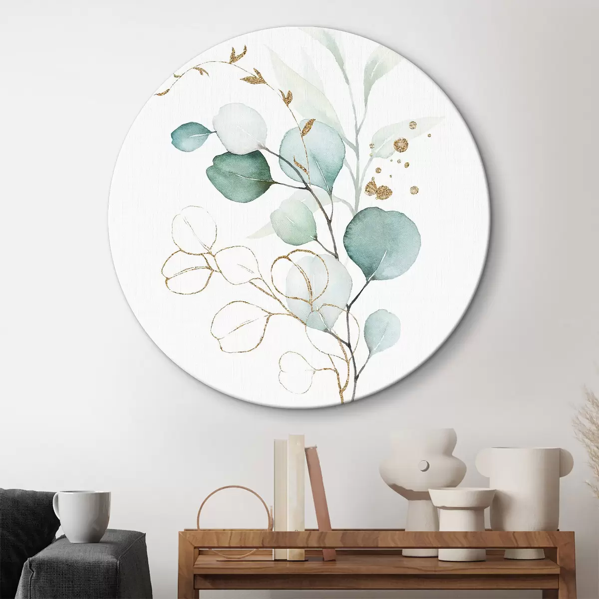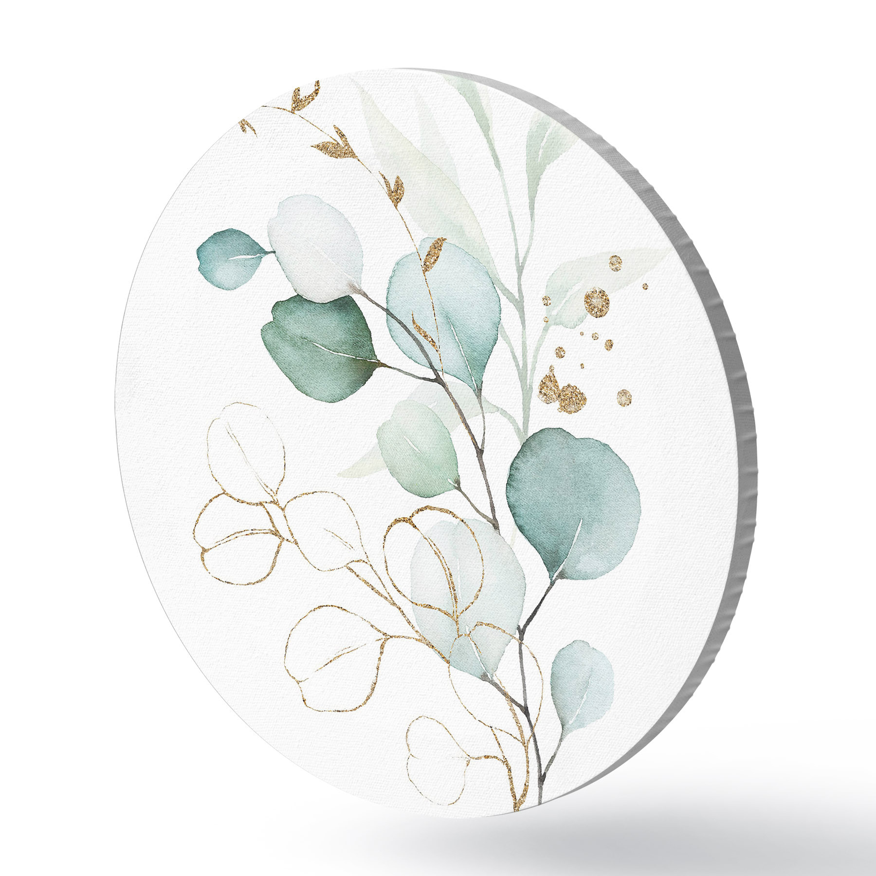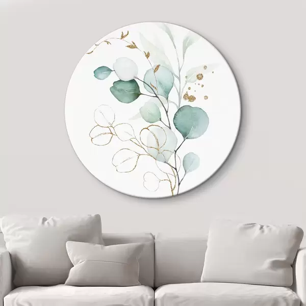 Cuadros redondos Acuarela de una rama con hojas doradas y azules r36138