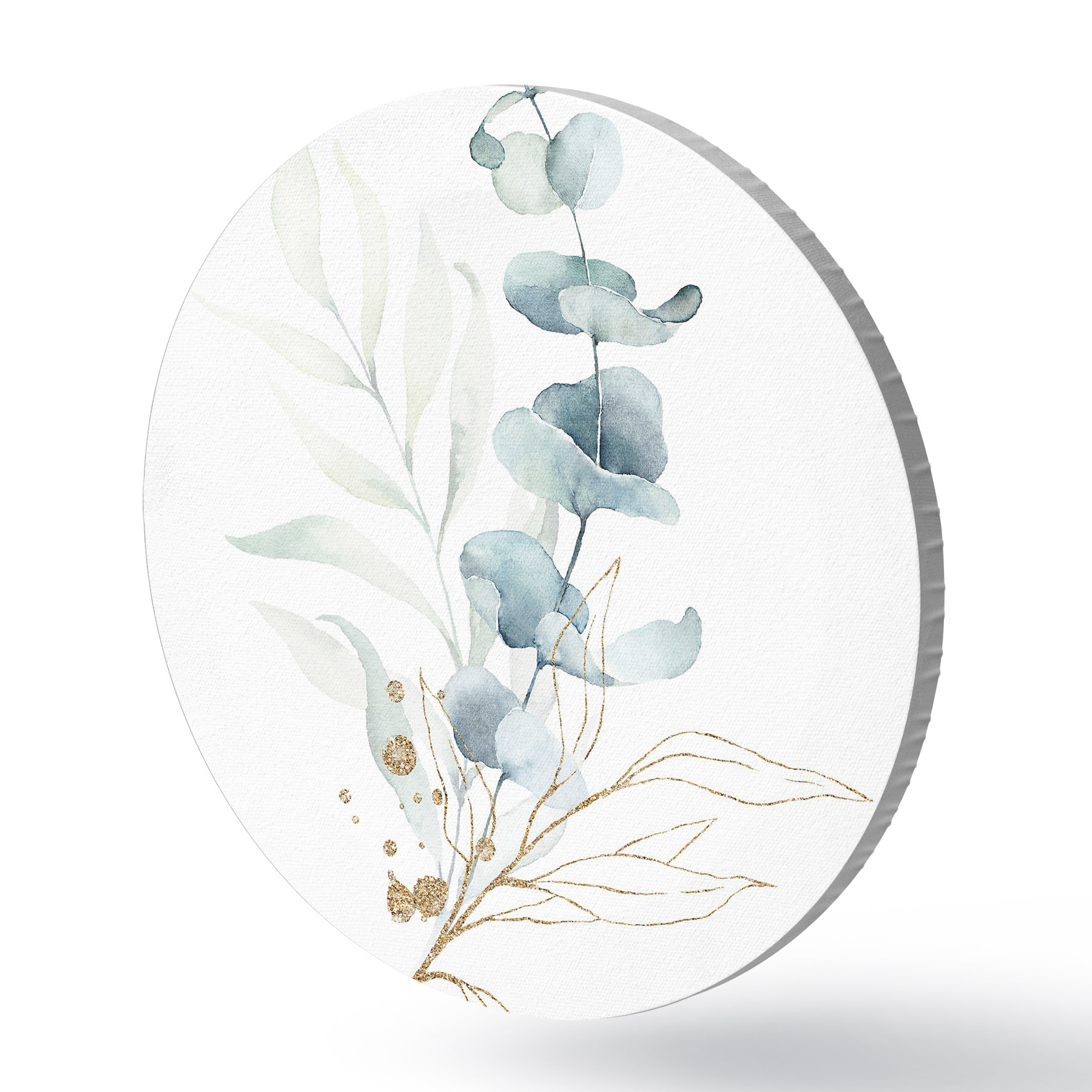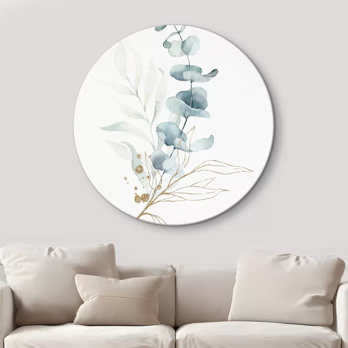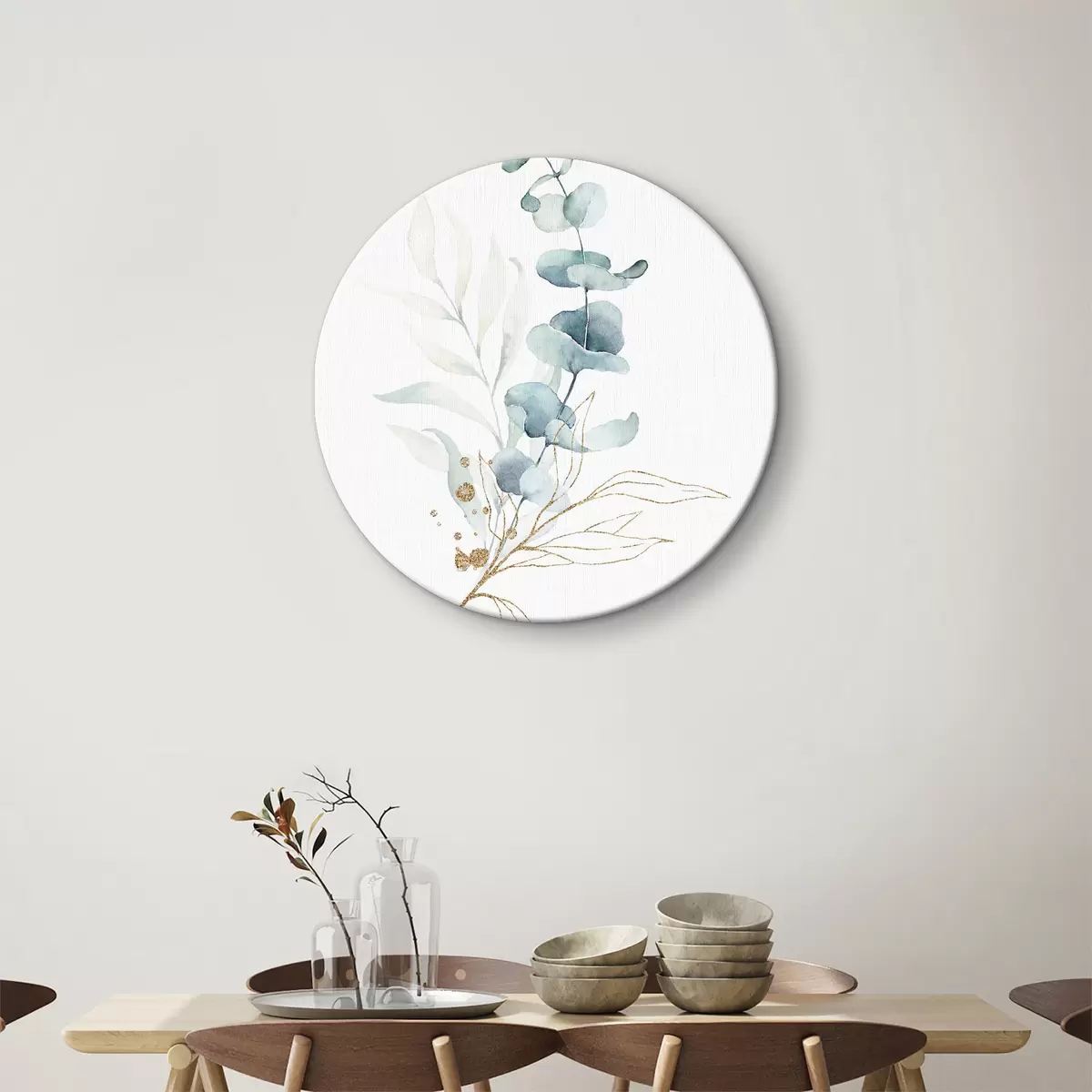 Cuadros redondos Dibujo abstracto en acuarela de ramas con hojas azules r36139