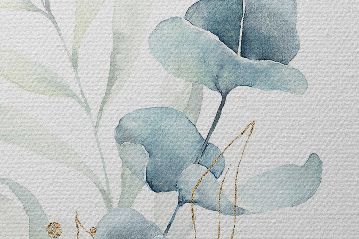 Foto Dibujo abstracto en acuarela de ramas con hojas azules Nr r36139