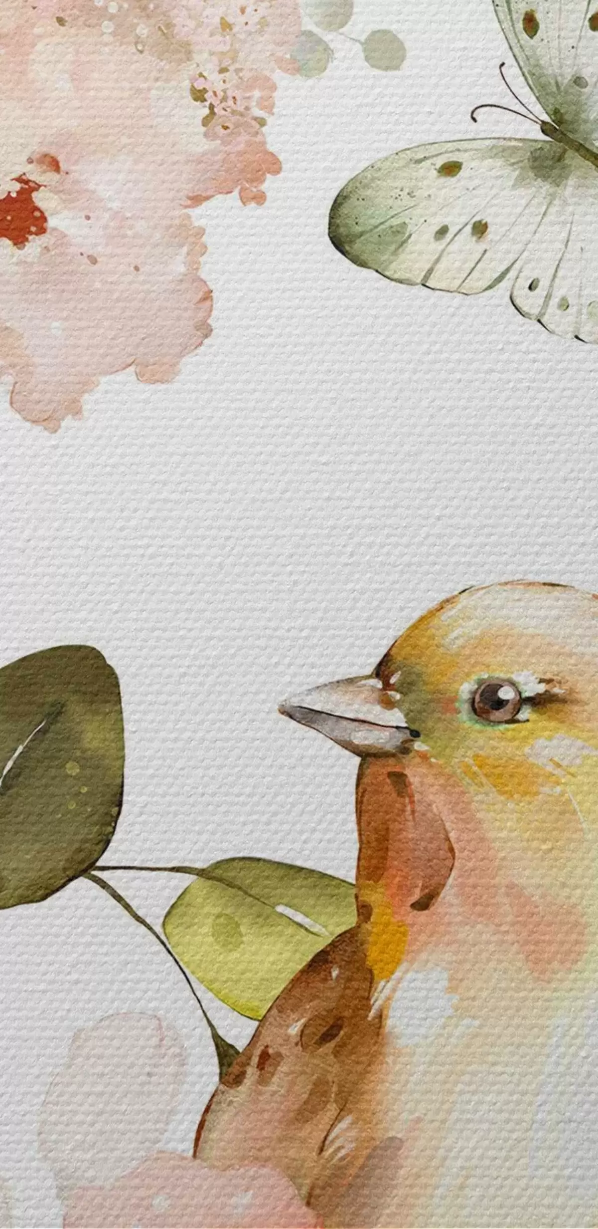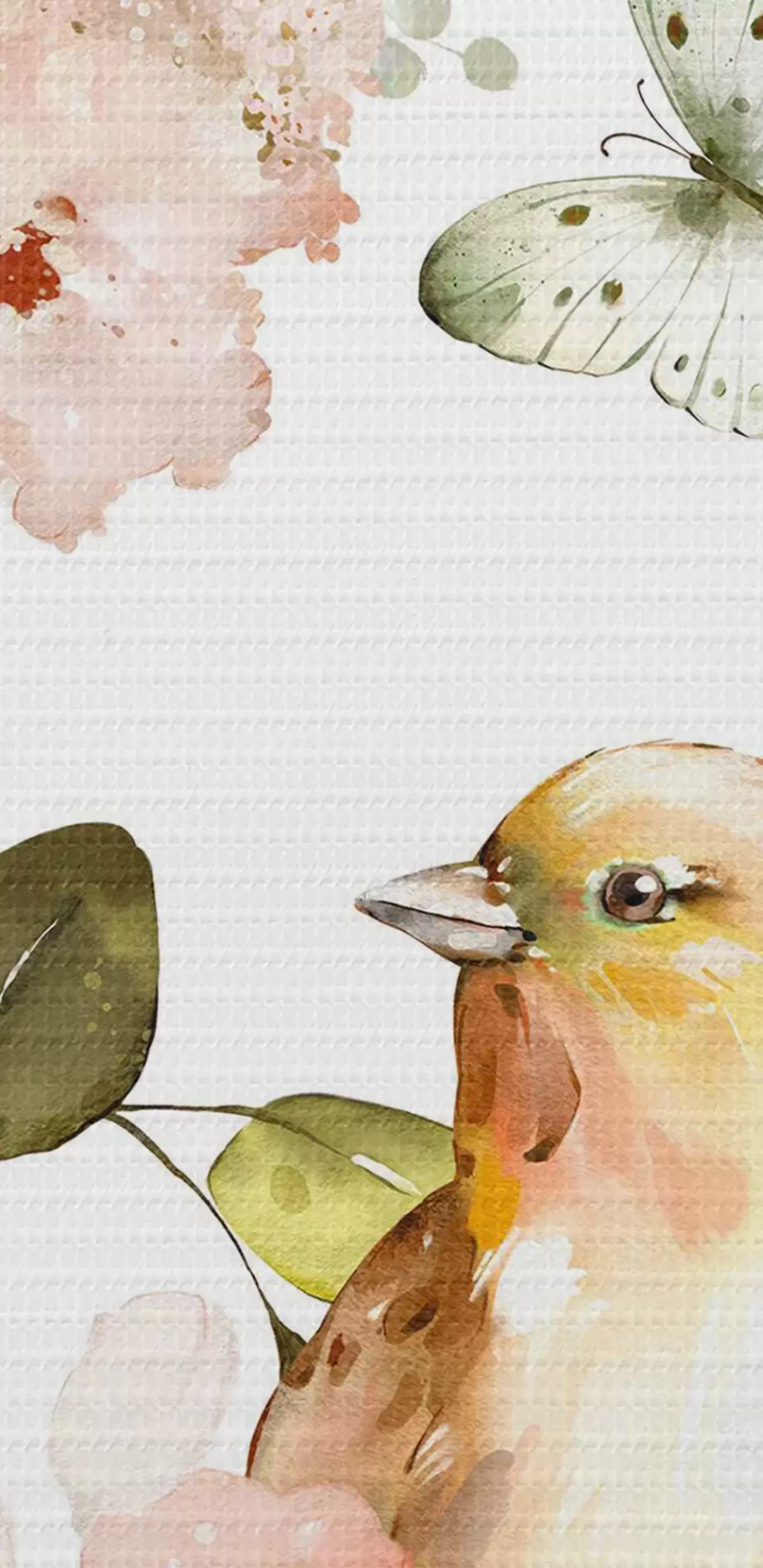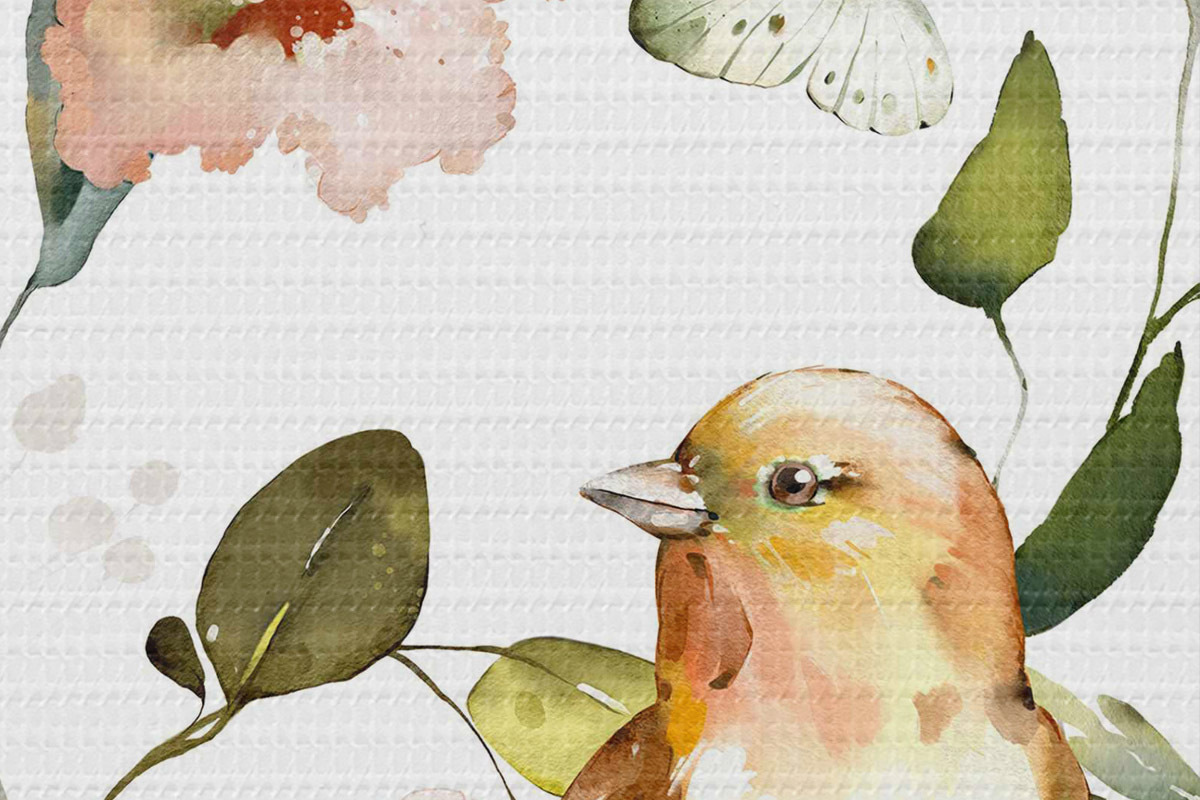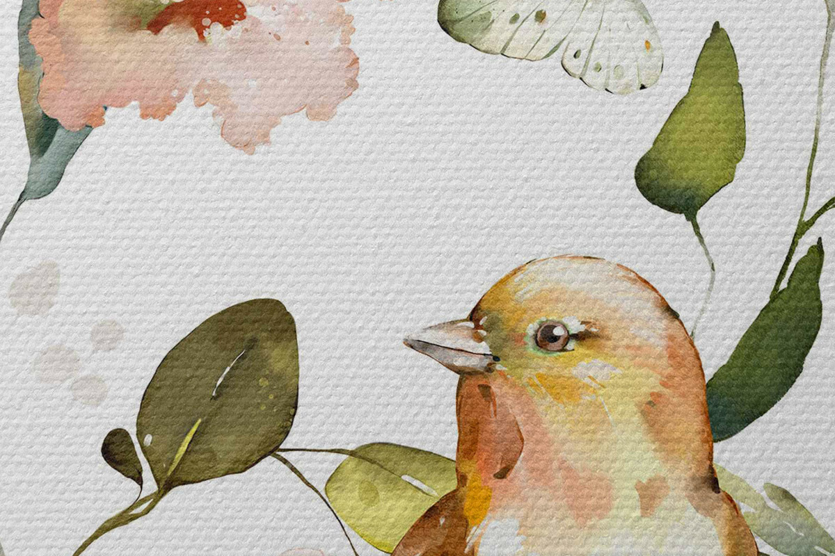 Foto Acuarela con flores, pájaros y mariposas sobre fondo blanco Nr r36153