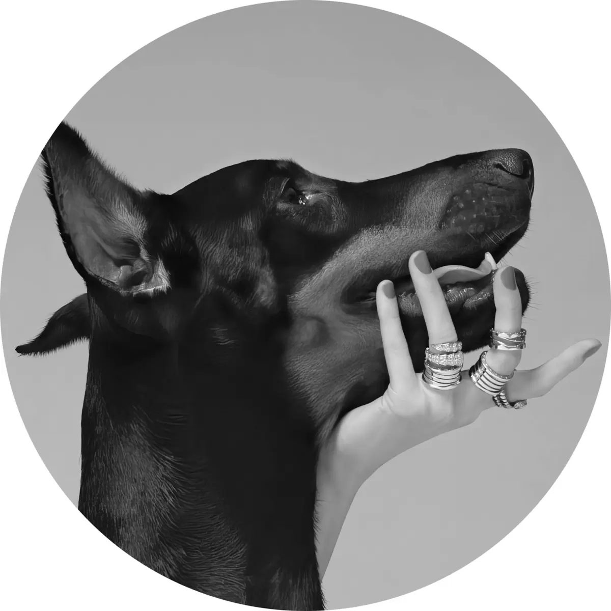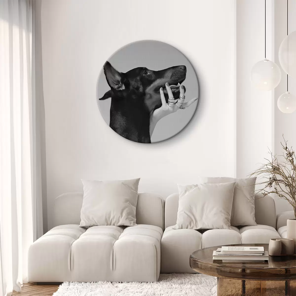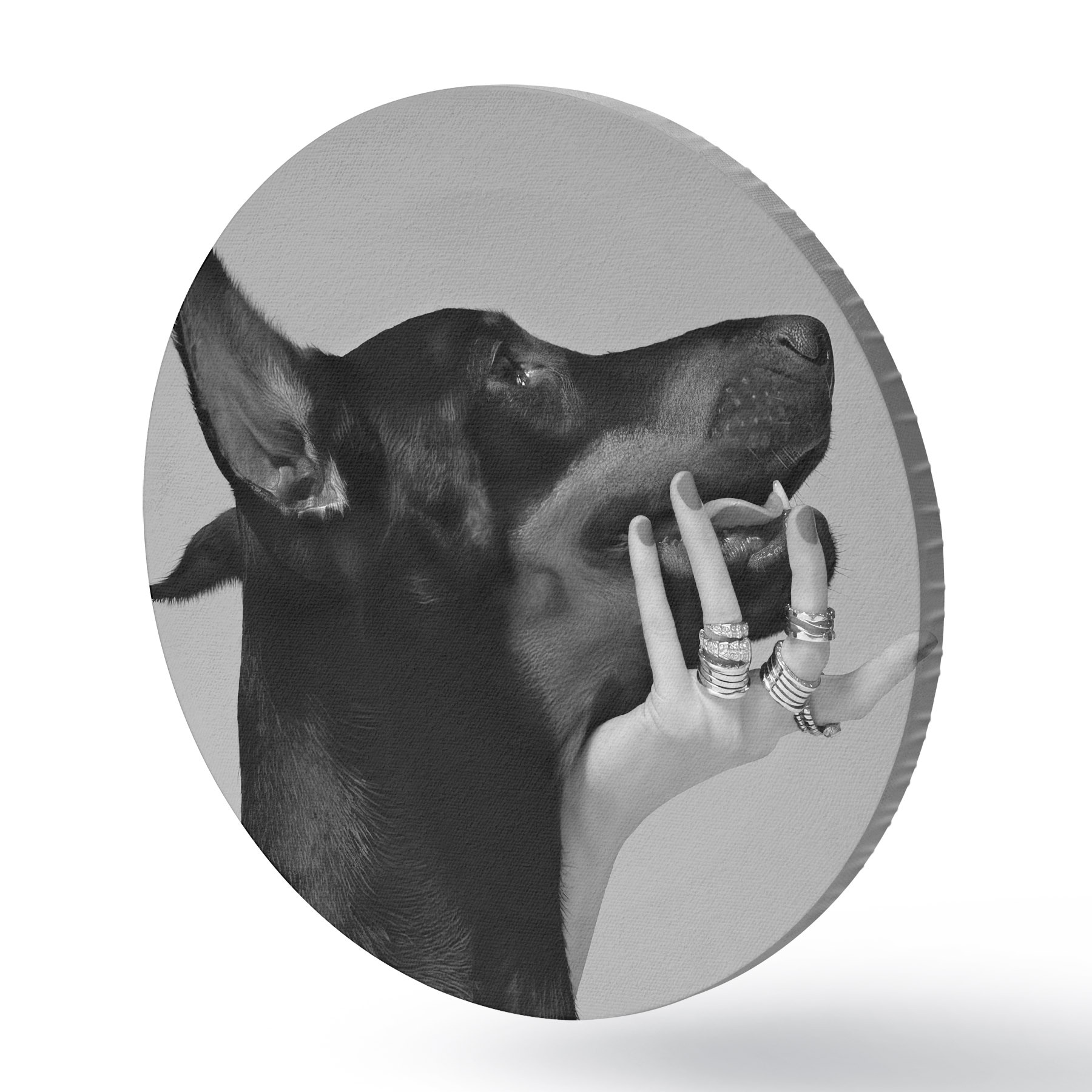 Cuadros redondos Doberman blanco y negro con nariz alta r36178