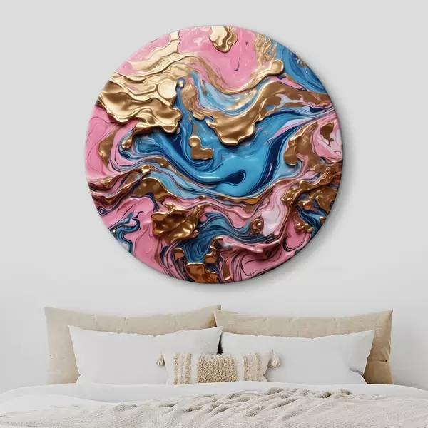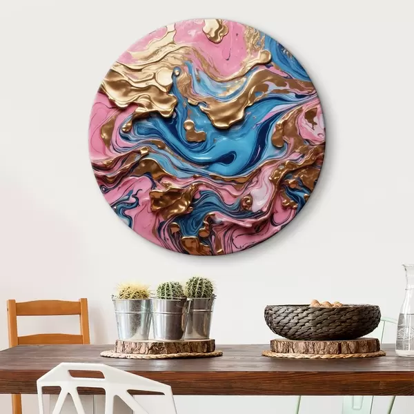 Cuadros redondos Brillo colorido de oro, rosa y azul r36227