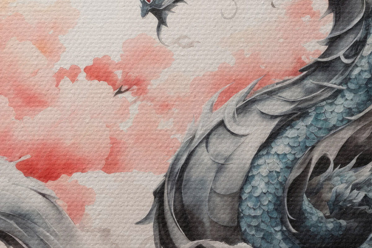 Cuadros redondos Dragón de la mitología china acuarela r36239