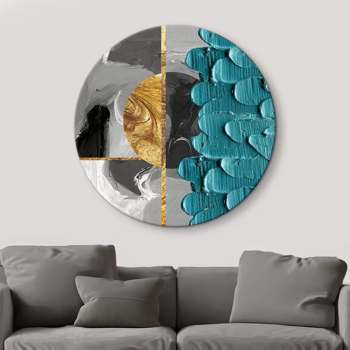 Cuadros redondos Fondo de arte abstracto. Óleo sobre lienzo y textura dorada r36288