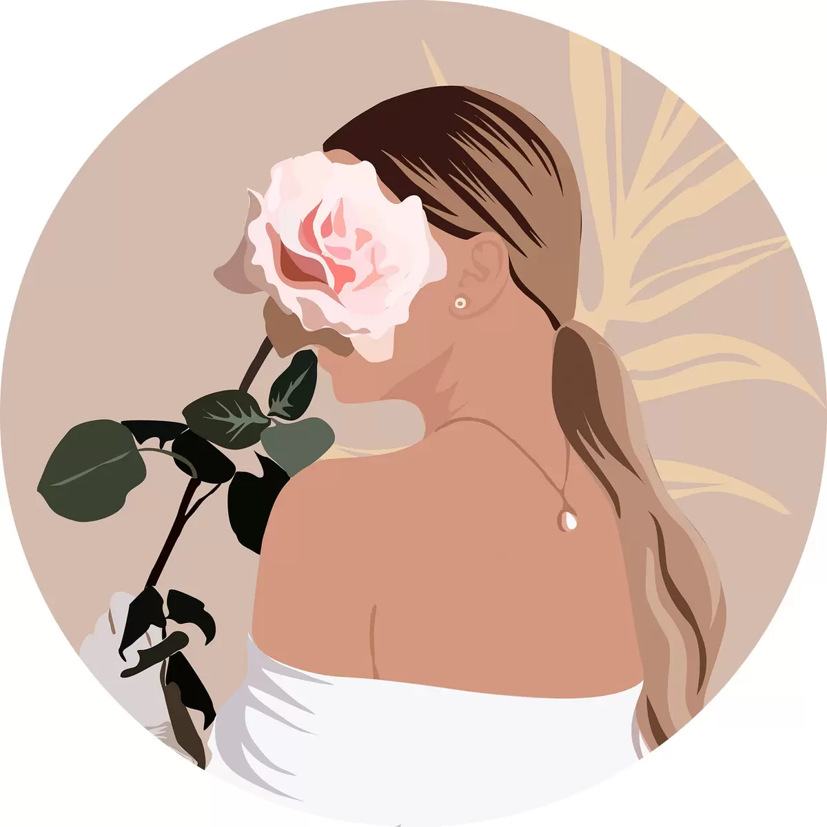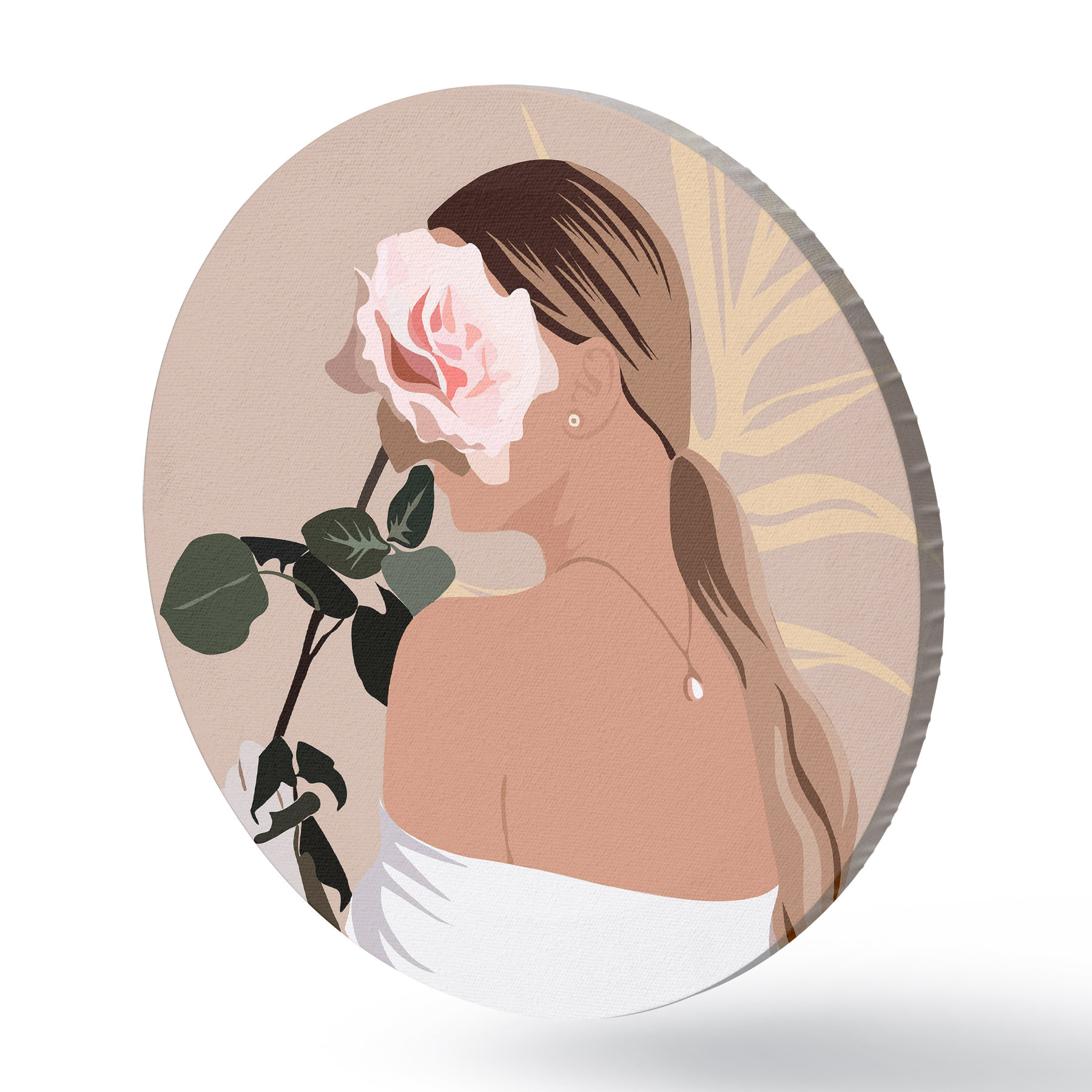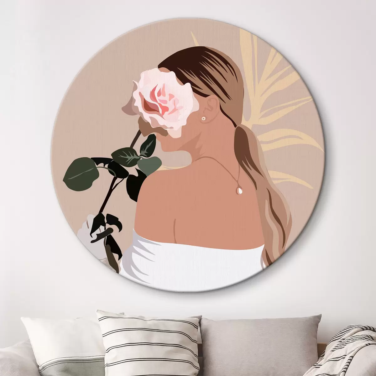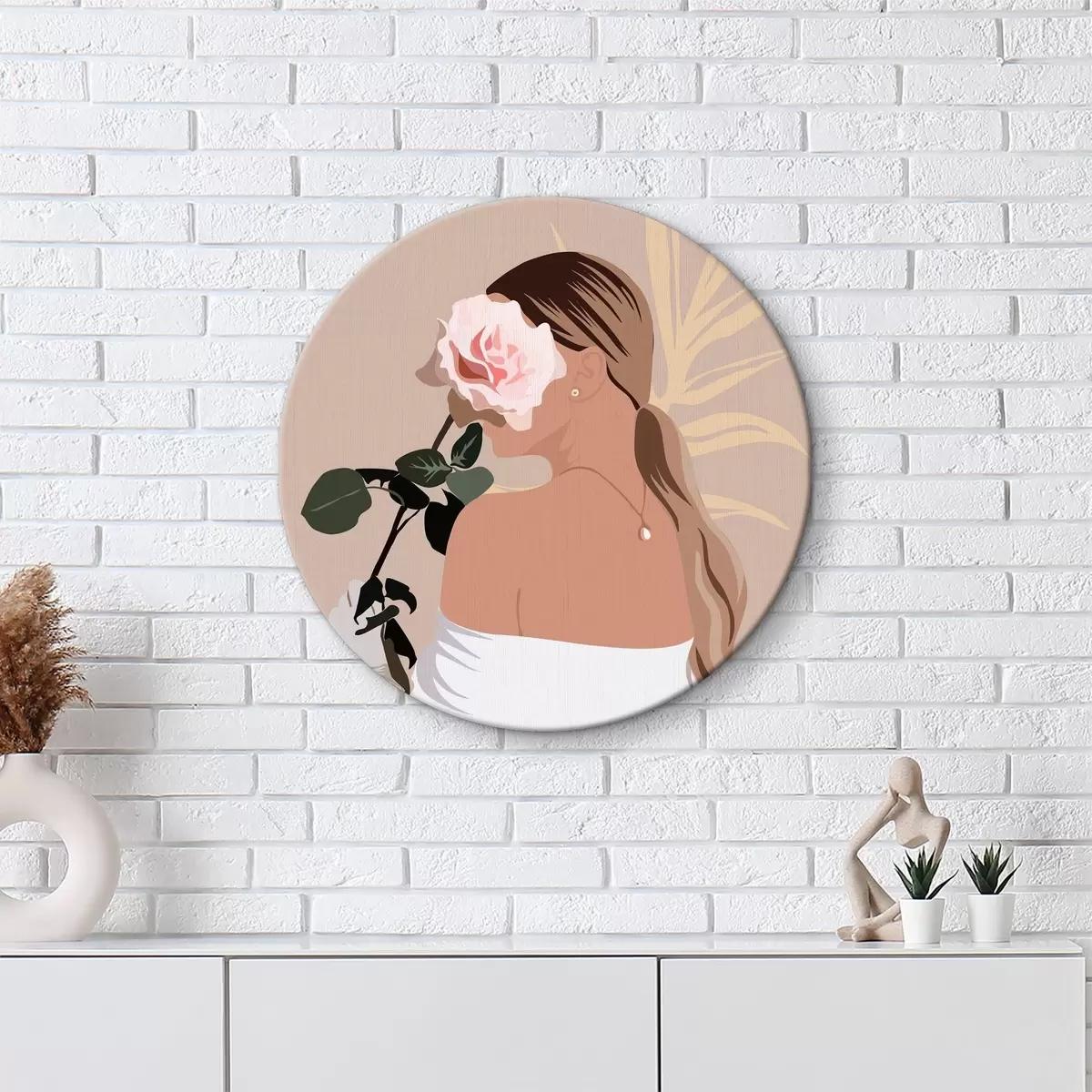 Cuadros redondos Chica con rosa rosa estilo boho abstracto r36366
