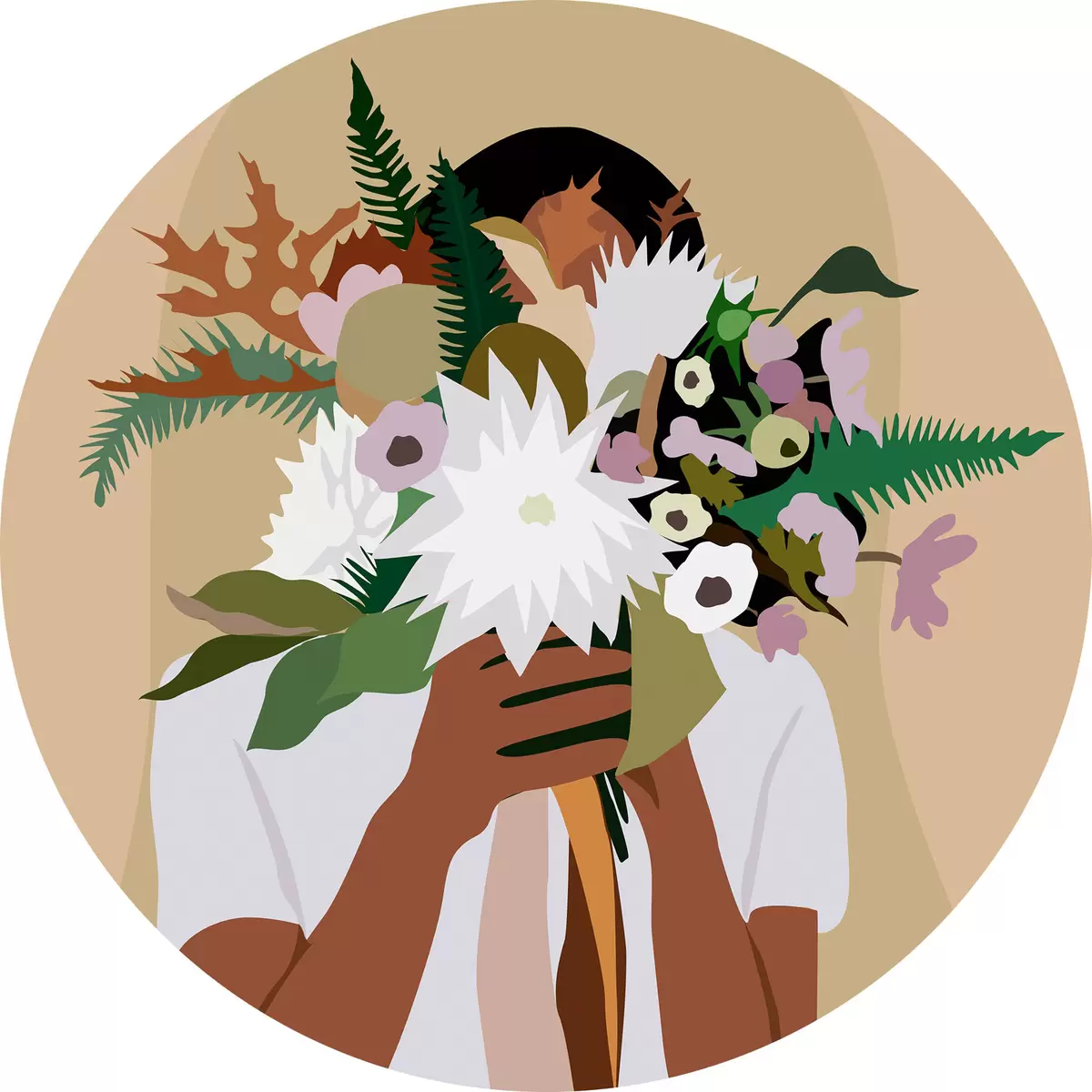 Foto Chica con un ramo de flores estilo boho abstracto Nr r36367
