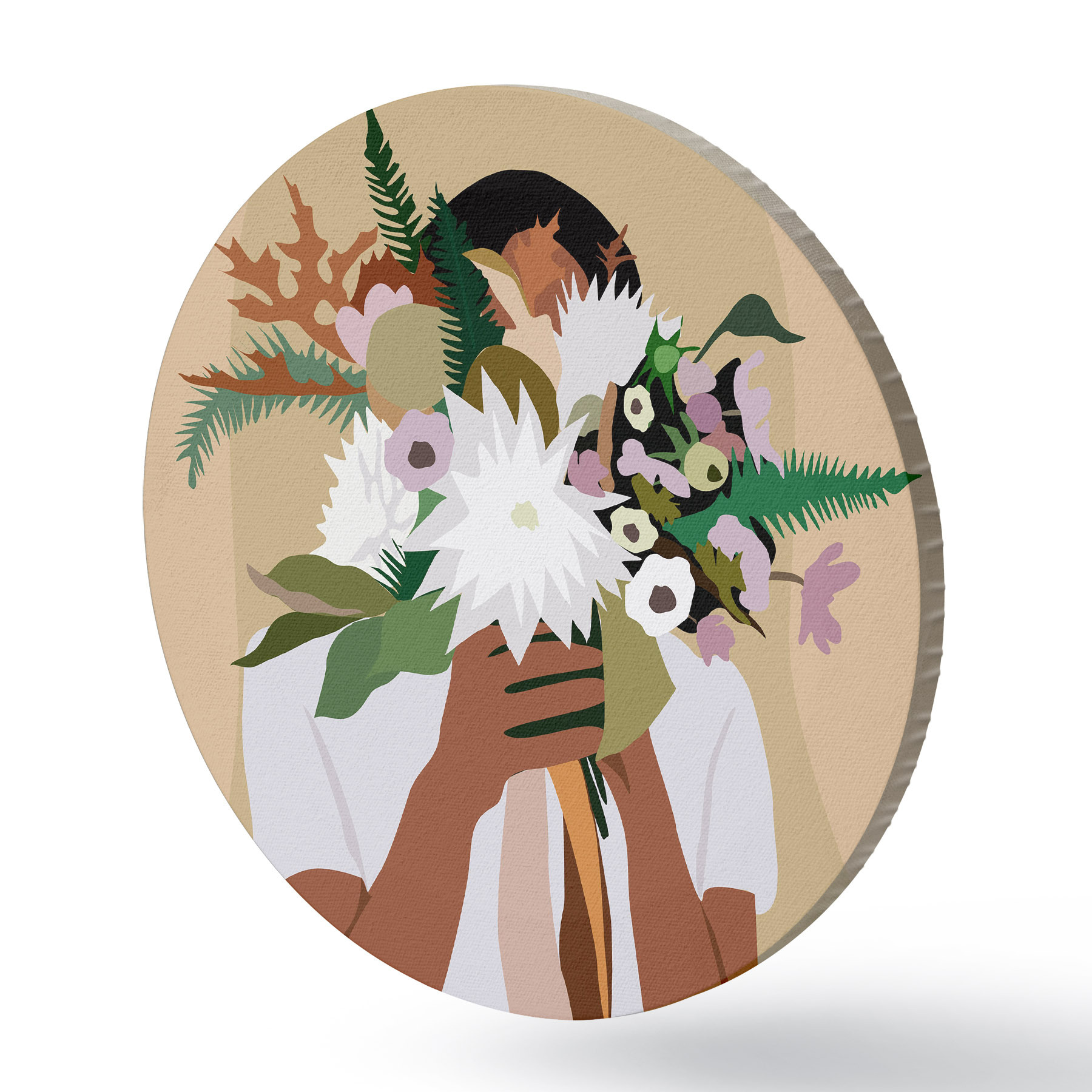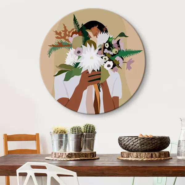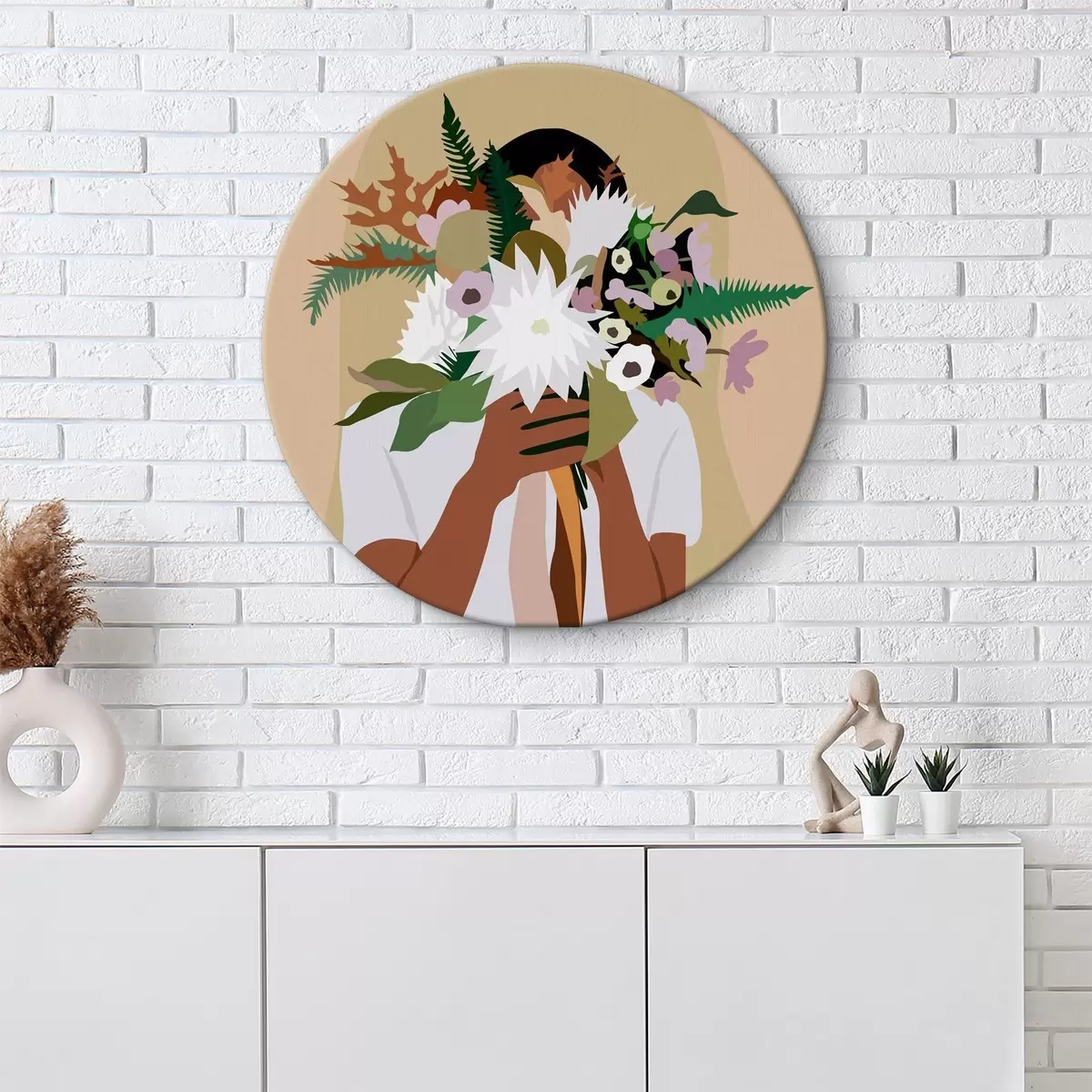 Cuadros redondos Chica con un ramo de flores estilo boho abstracto r36367