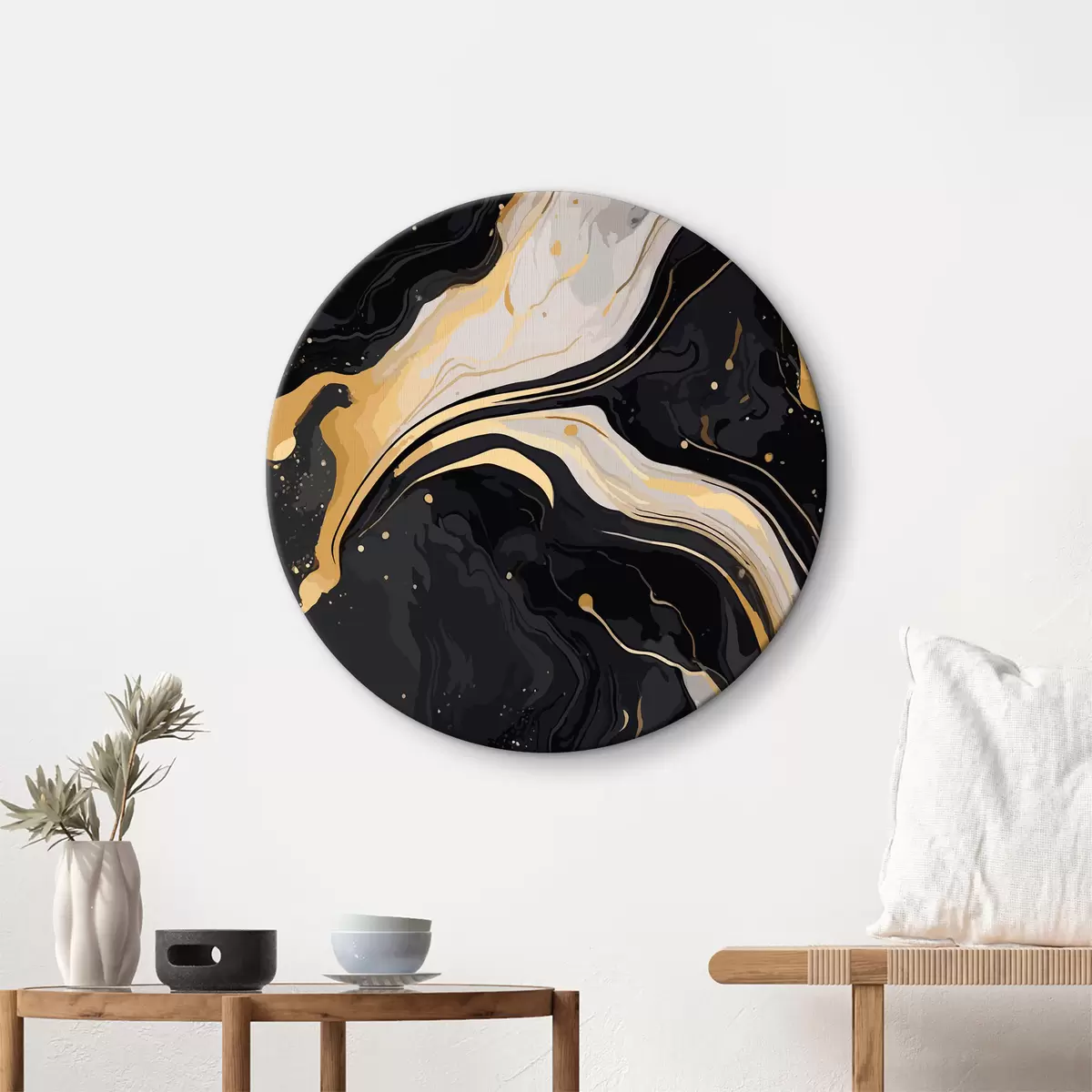 Cuadros redondos Elegante mármol negro con dorado r36375