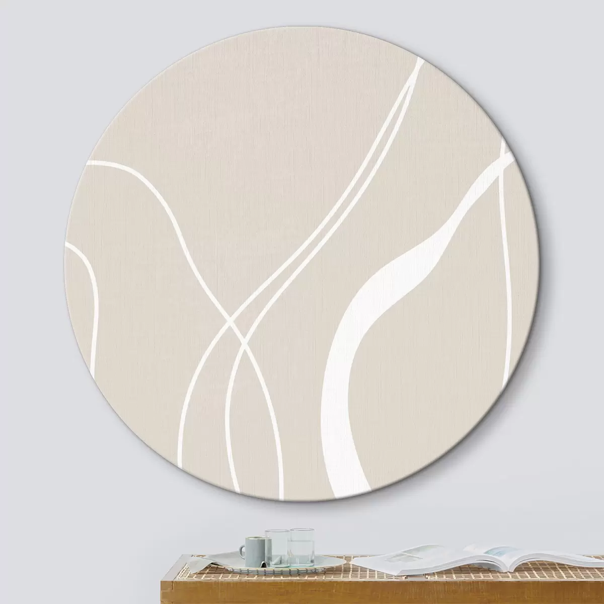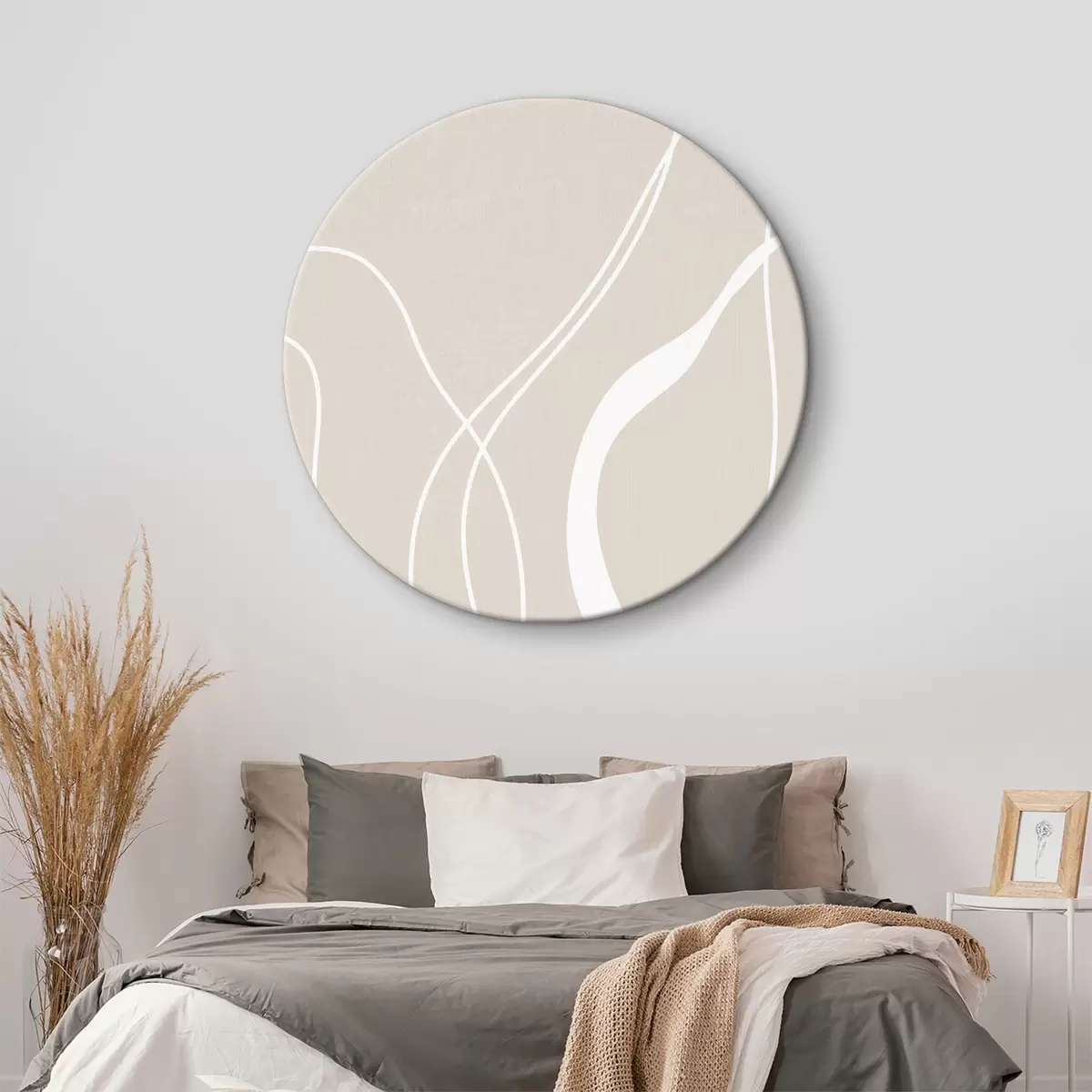 Cuadros redondos Líneas abstractas blancas sobre fondo beige r36488