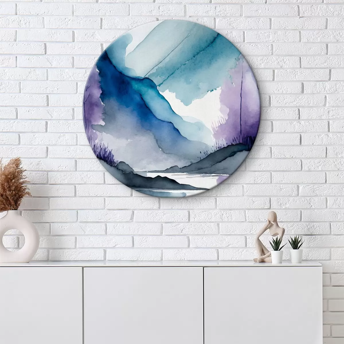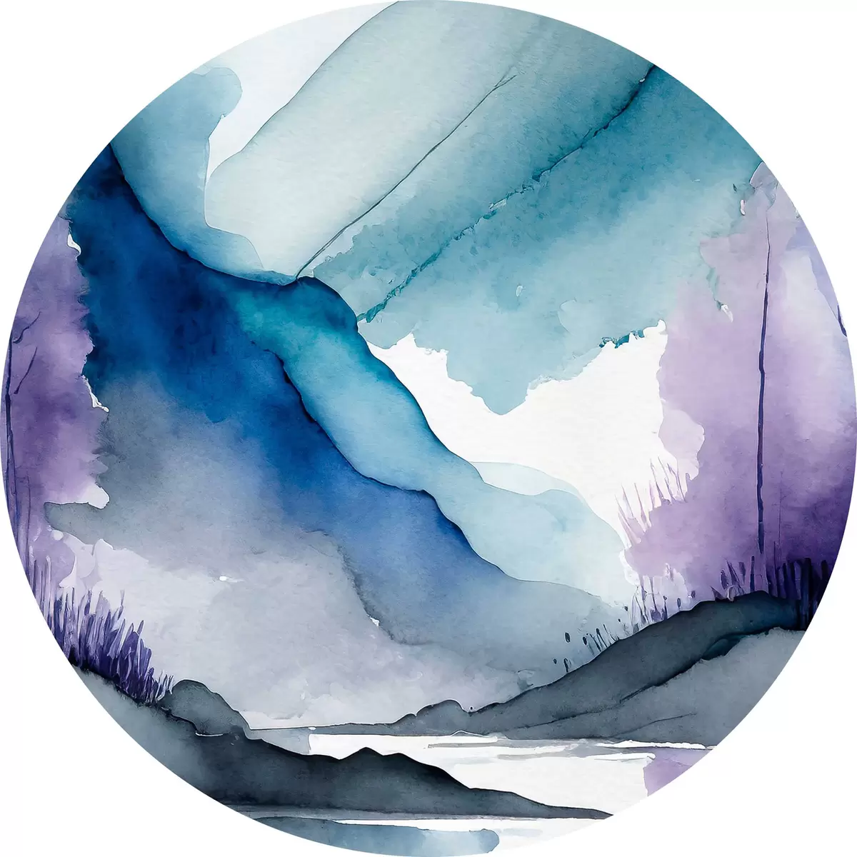 Cuadros redondos Montañas neblinosas y aguas tranquilas r36494
