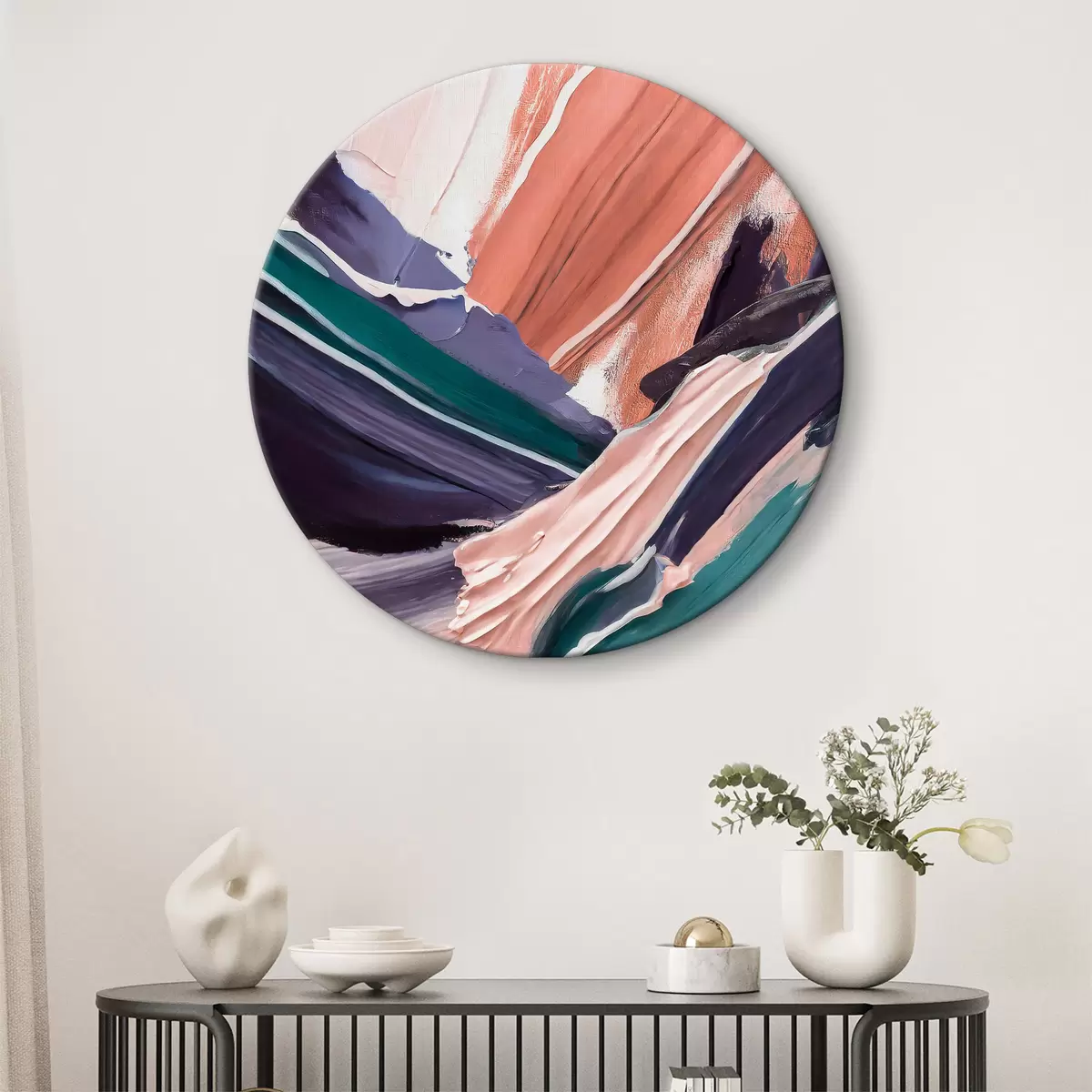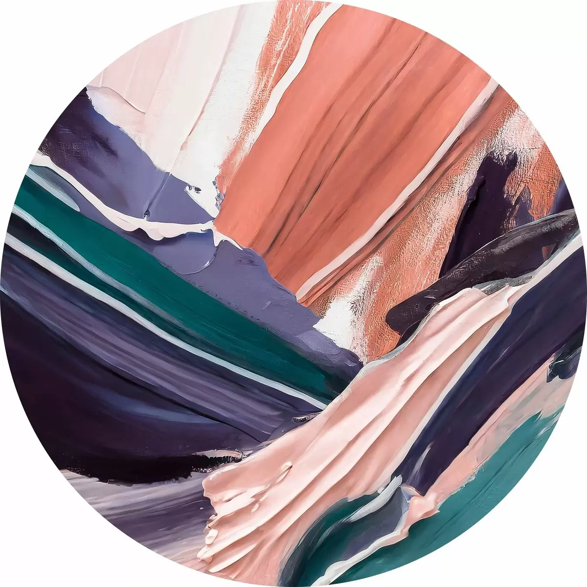 Cuadros redondos Pintura al óleo abstracta, pincelada, textura de pintura, colores suaves naranja púrpura r36498