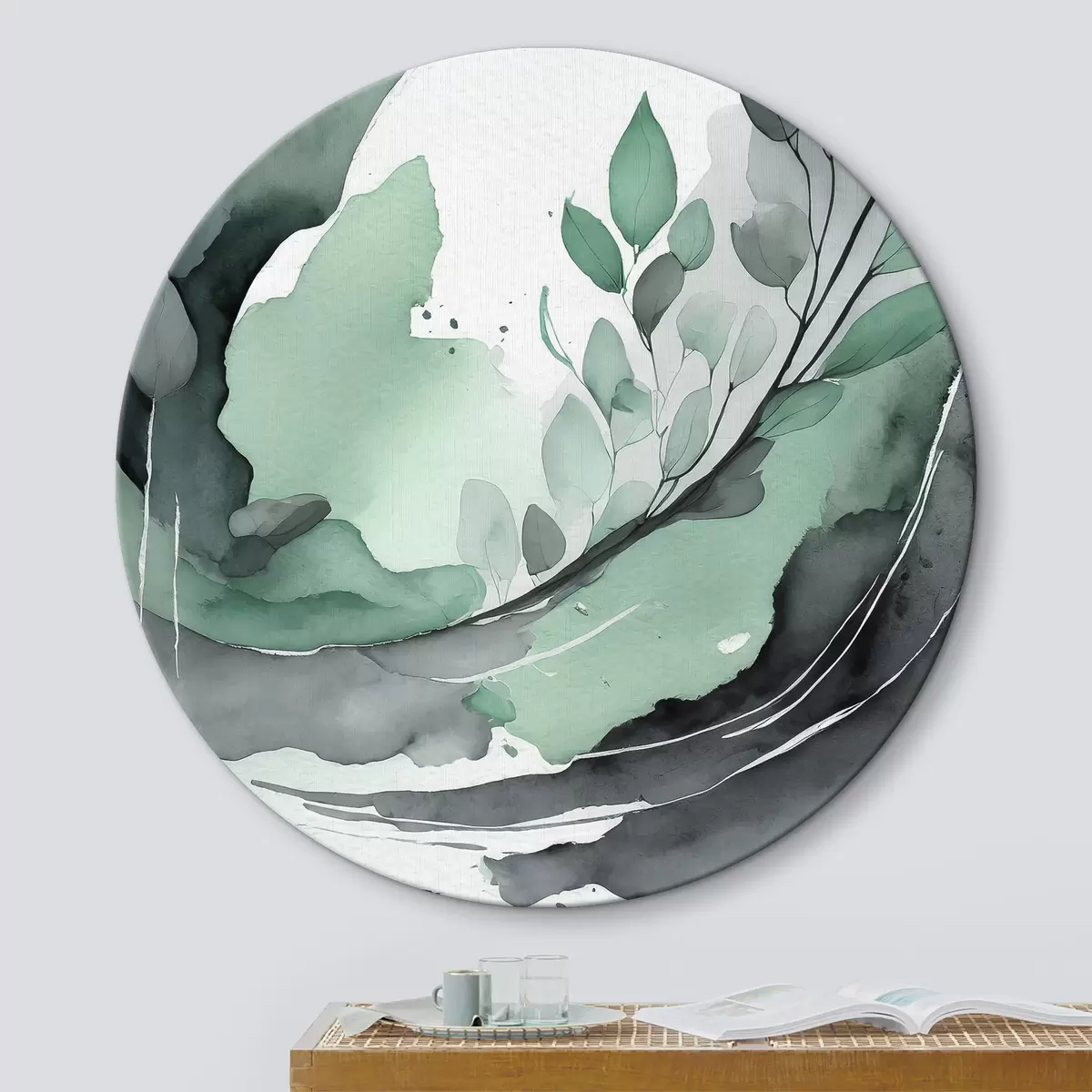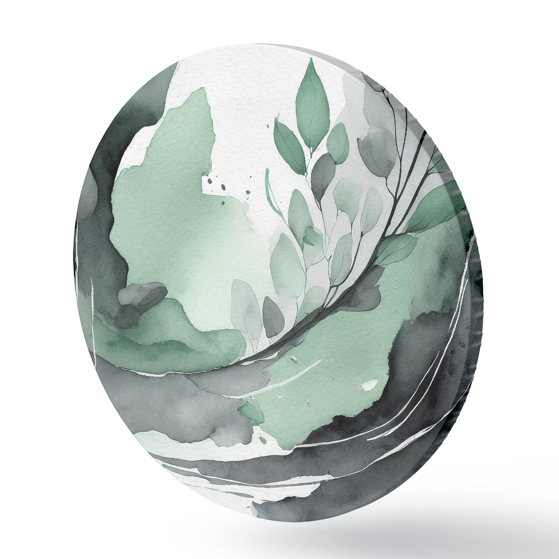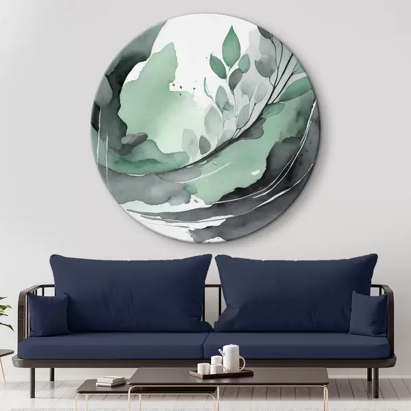 Cuadros redondos Dibujo abstracto en acuarela con una planta, colores verdes y grises naturales r36502