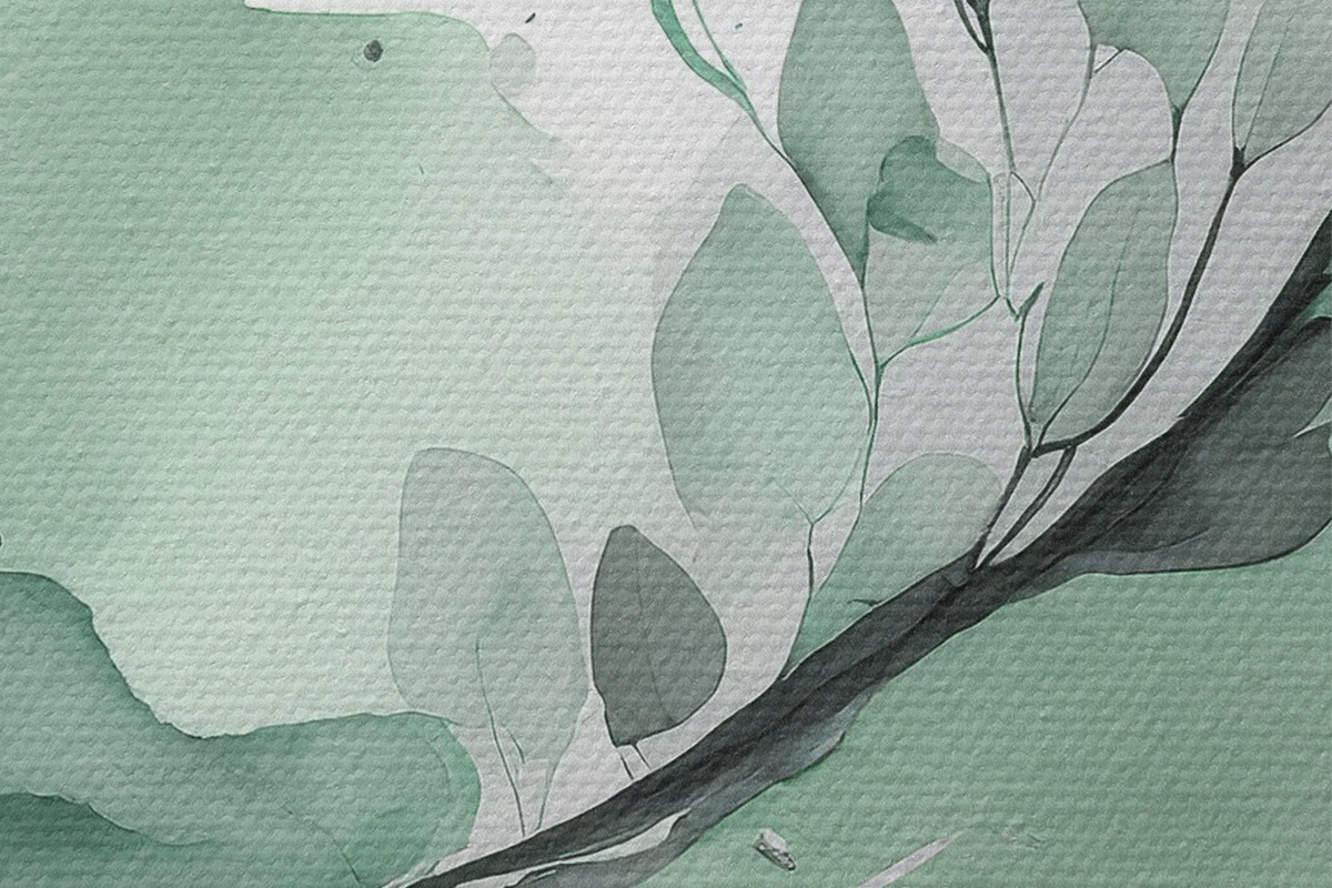 Foto Dibujo abstracto en acuarela con una planta, colores verdes y grises naturales Nr r36502