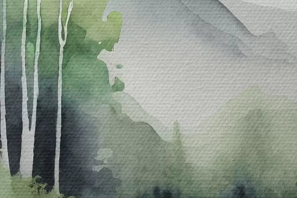 Foto Acuarela paisaje de lago y bosque, primavera, verde natural colores suaves Nr r36503