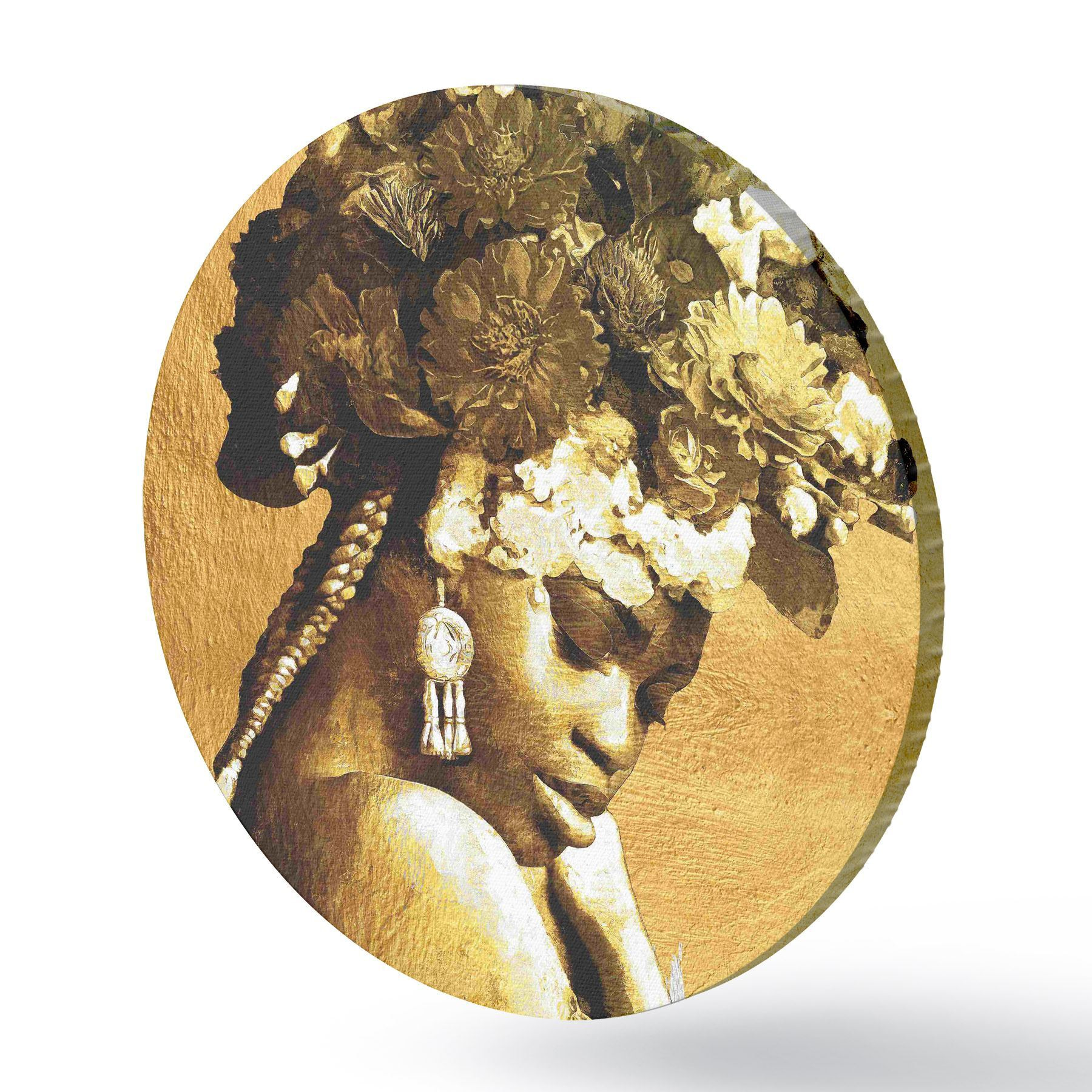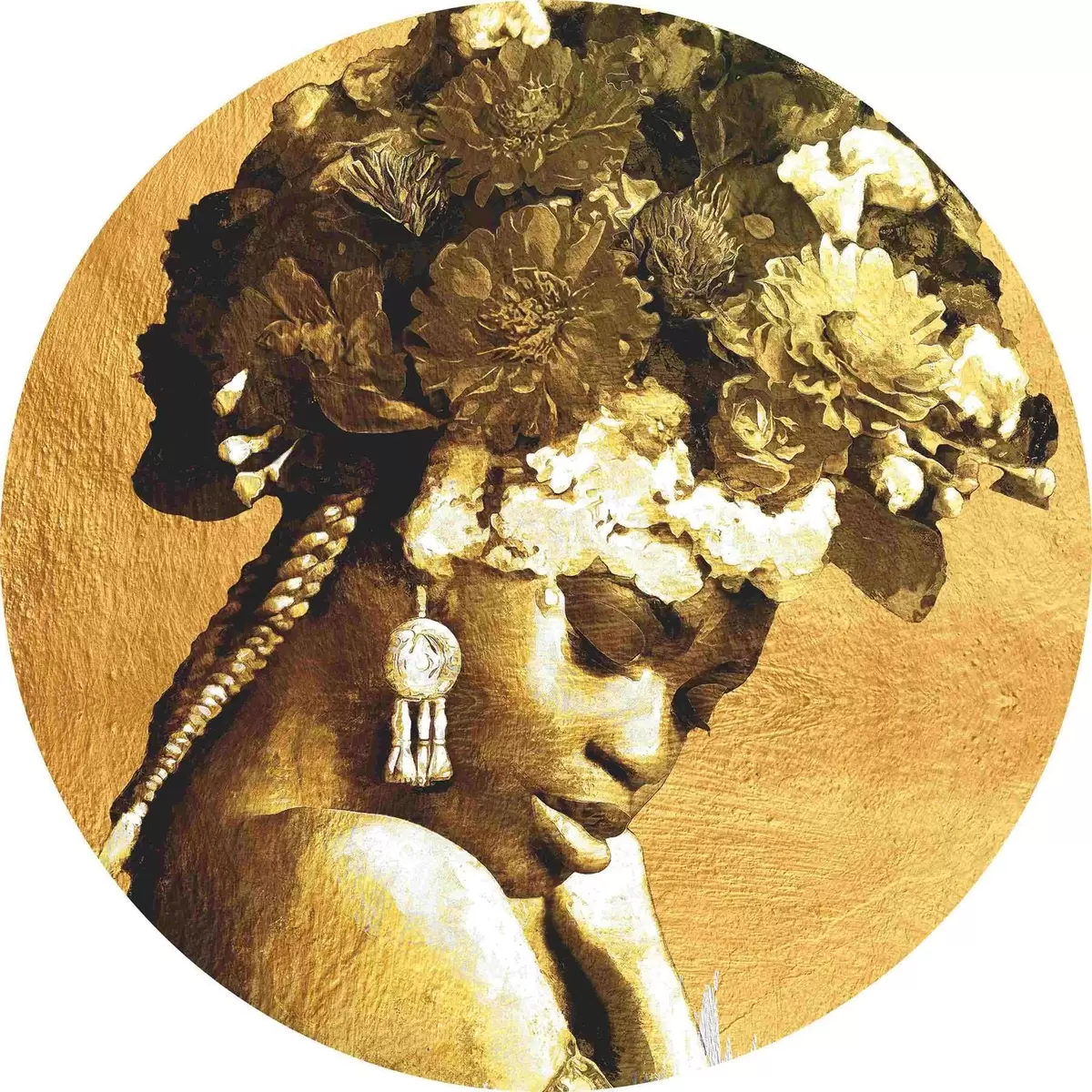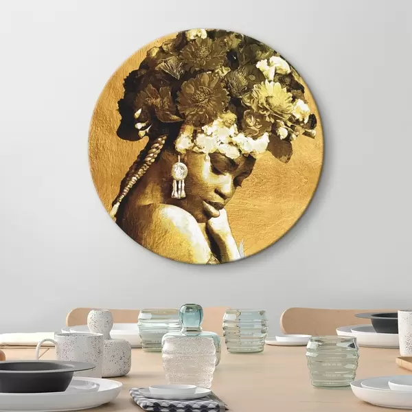 Cuadros redondos Mujer con flores en la cabeza r36532
