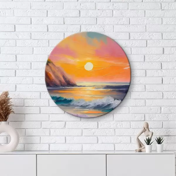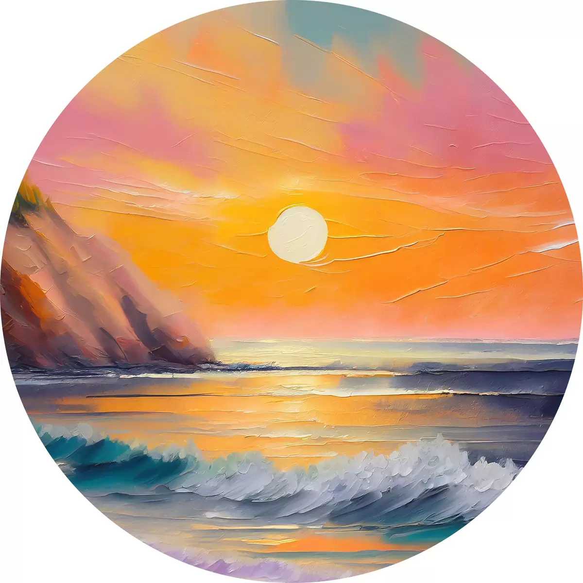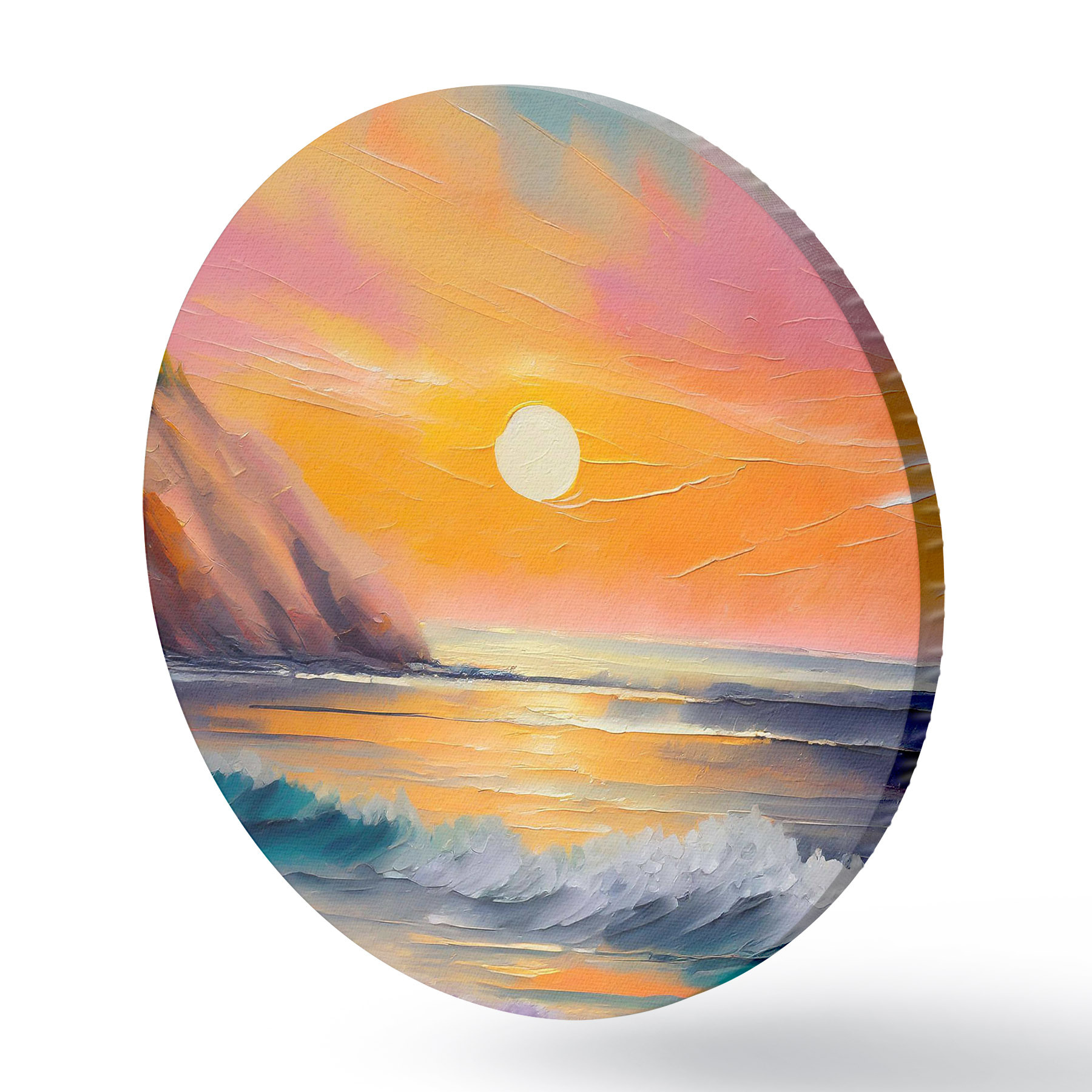 Cuadros redondos Los colores del atardecer abrazan las tranquilas olas r36582