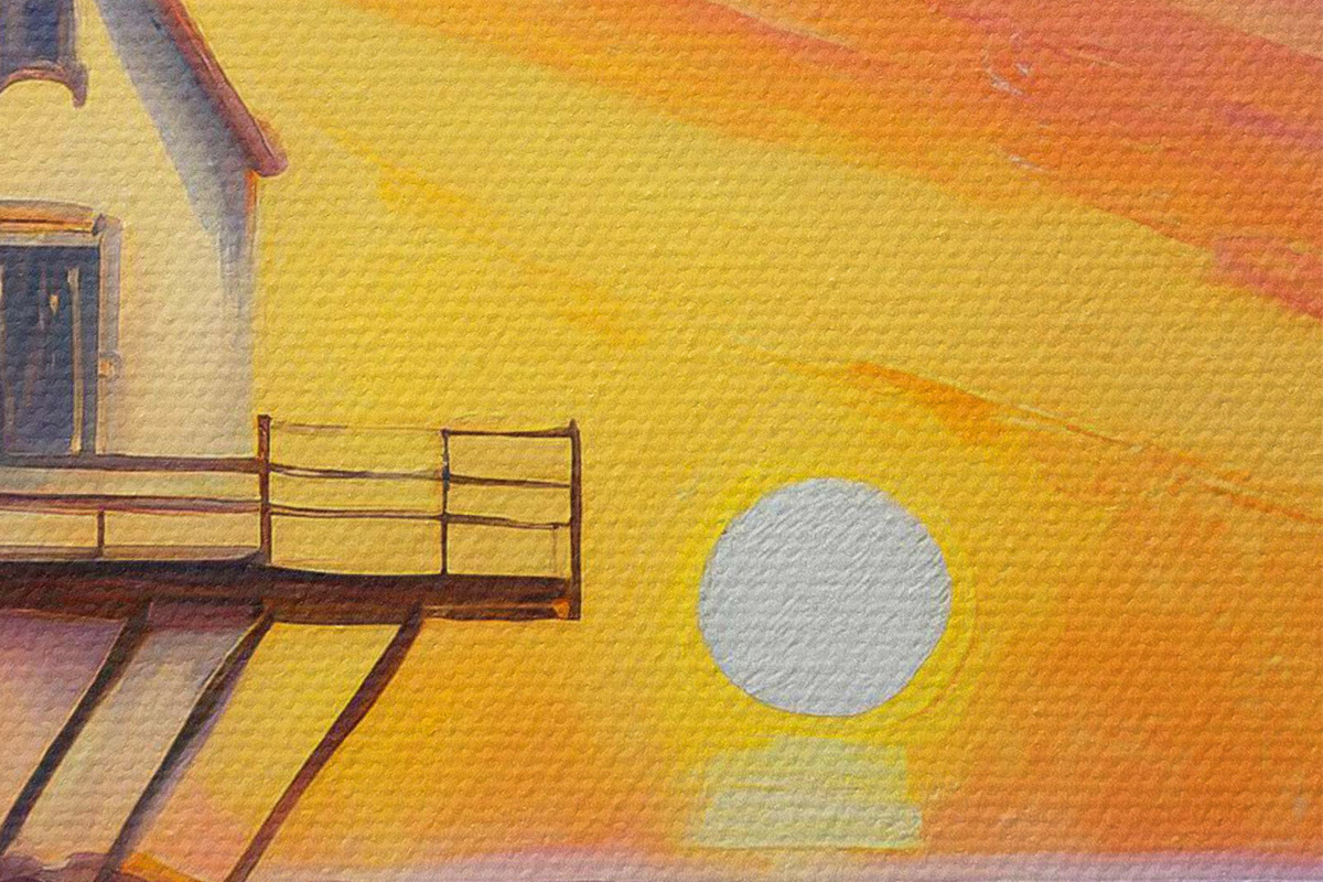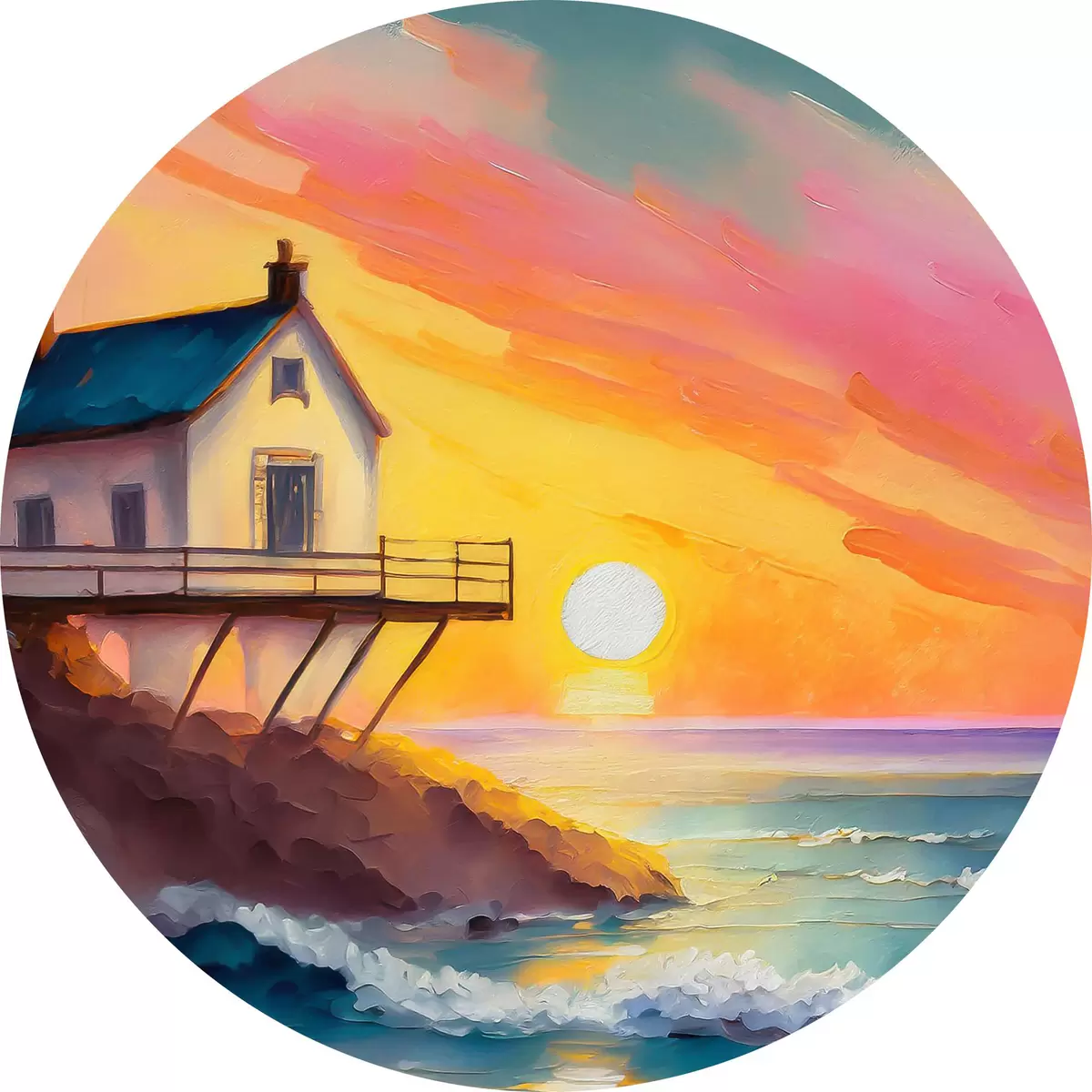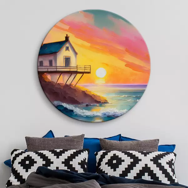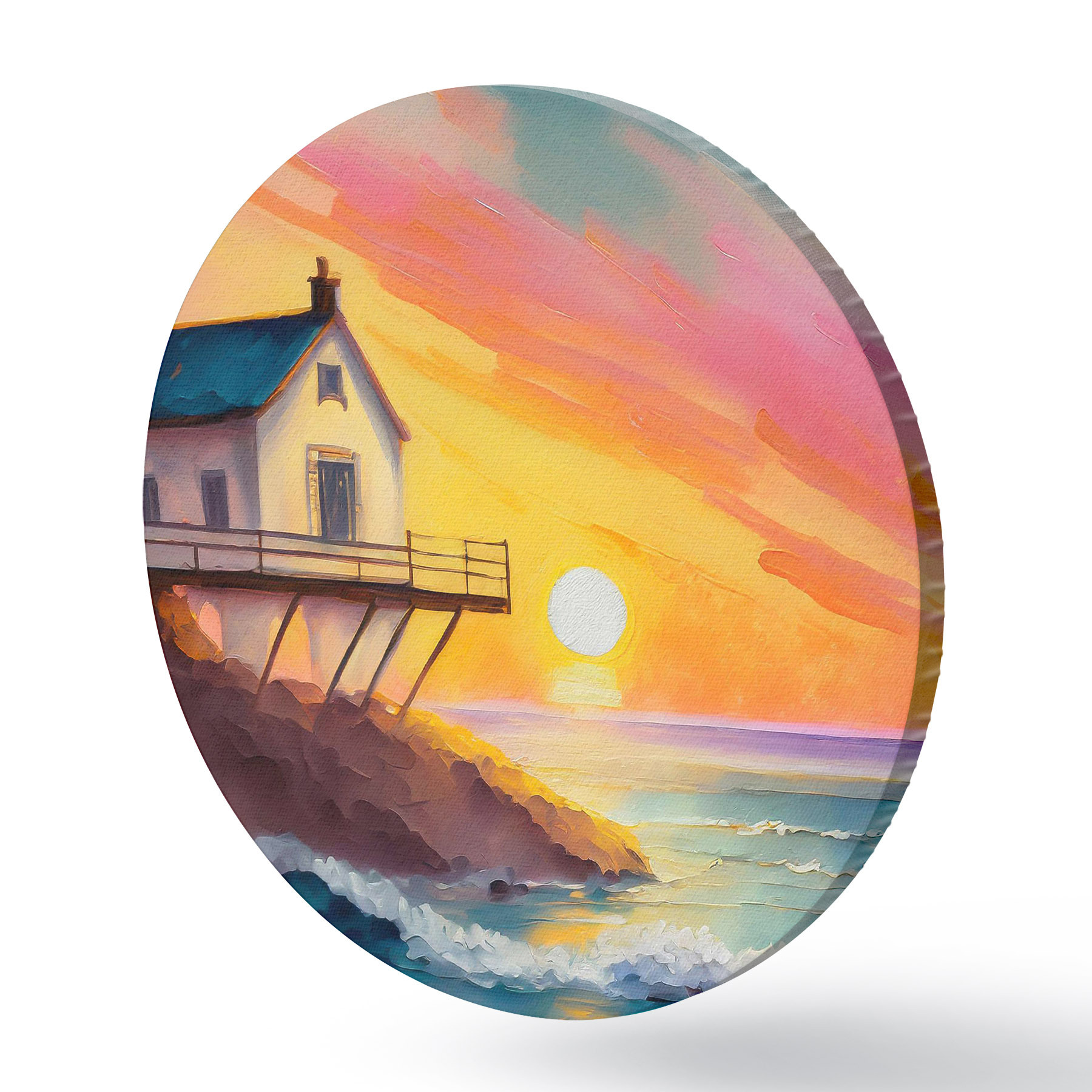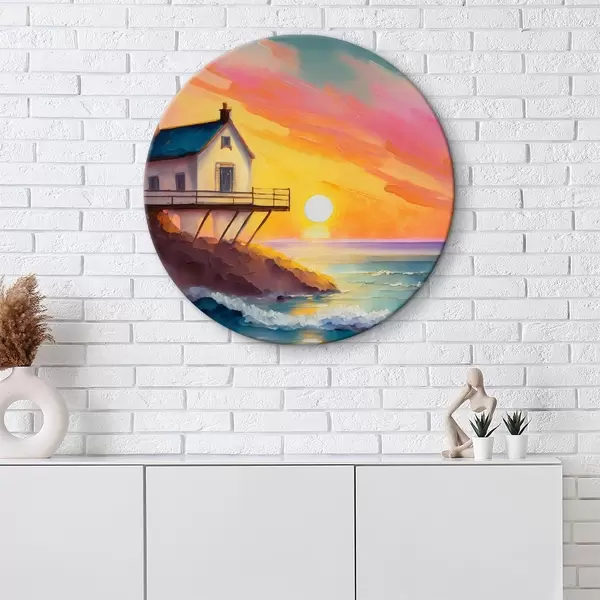 Cuadros redondos Un refugio junto al mar bañado por las sombras del sol poniente r36585