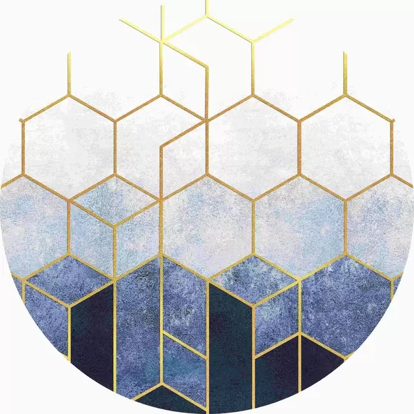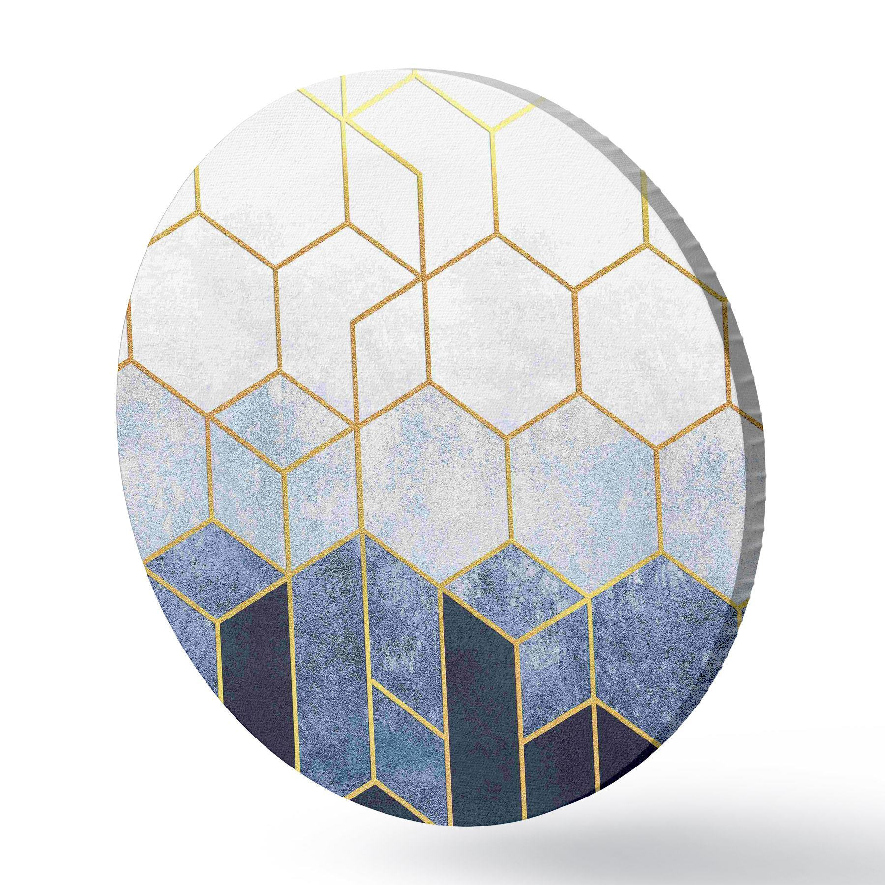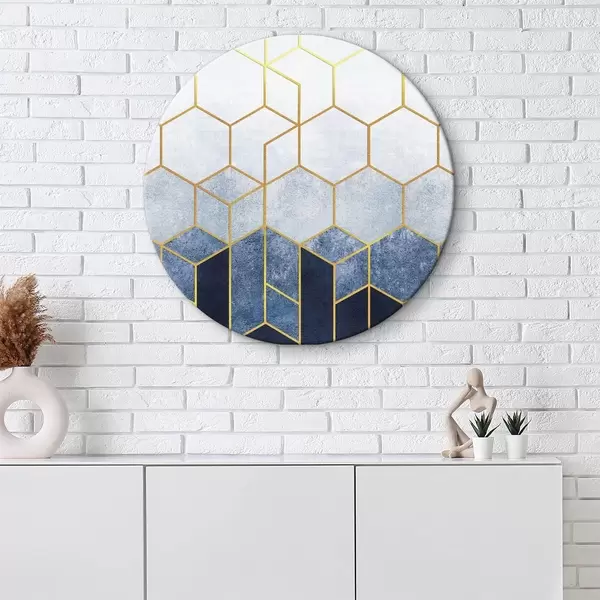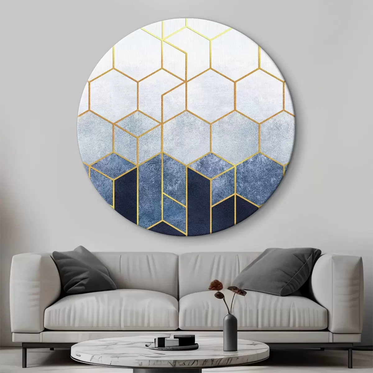 Cuadros redondos Elegante motivo geométrico en azul y blanco r36601
