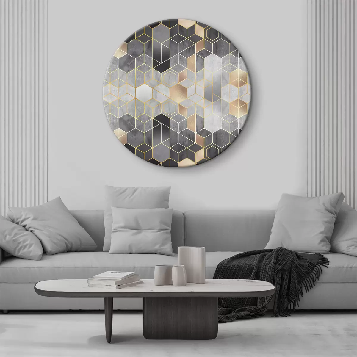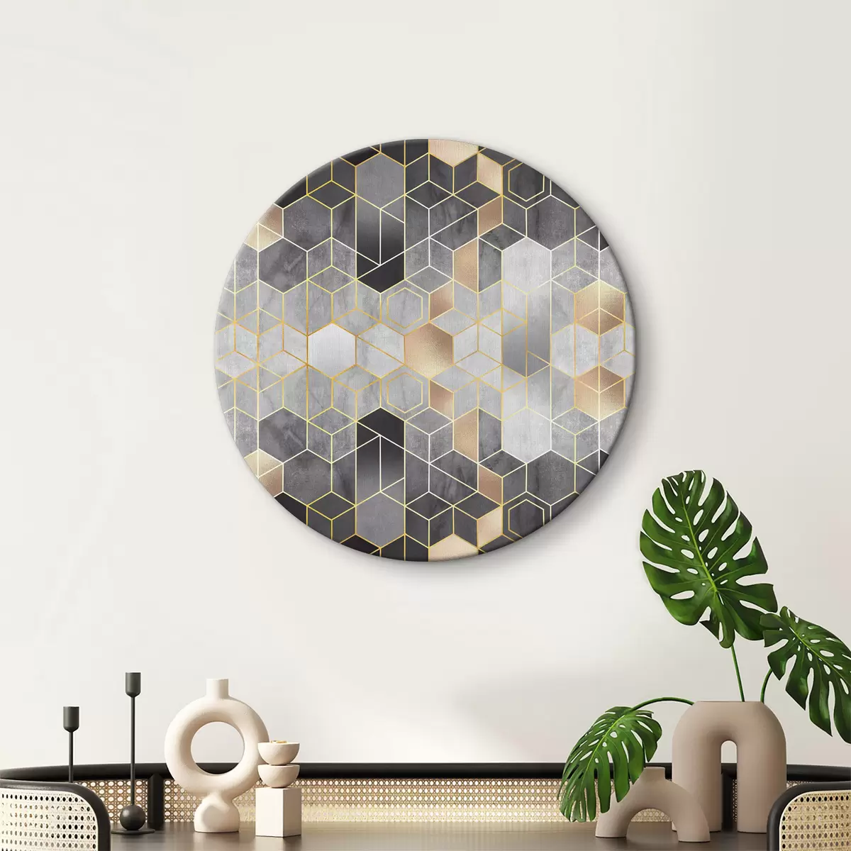 Cuadros redondos Elegante motivo hexagonal en colores neutros r36602