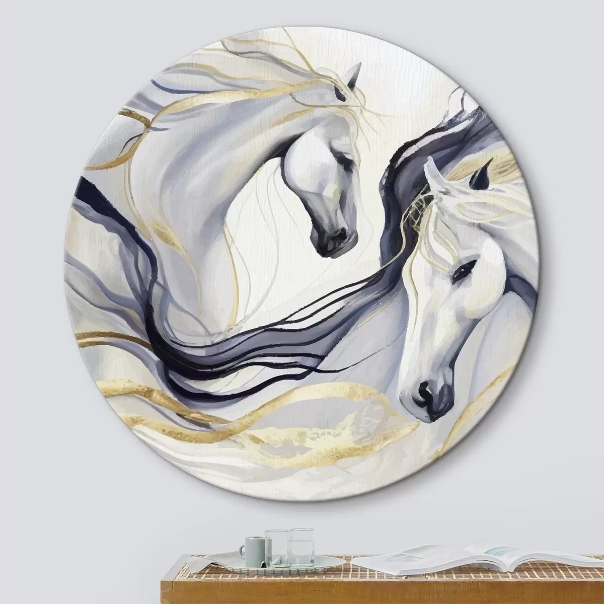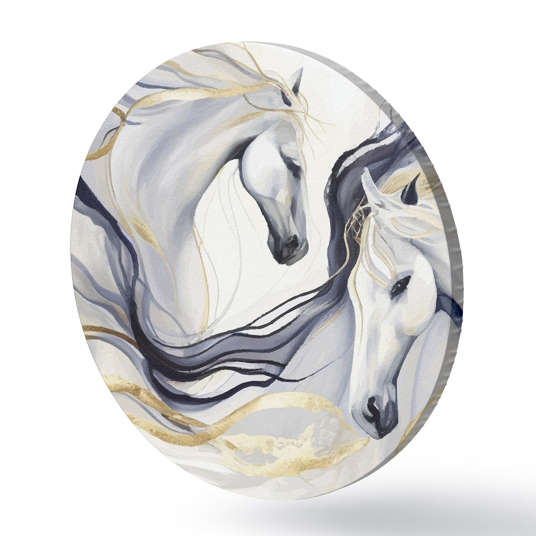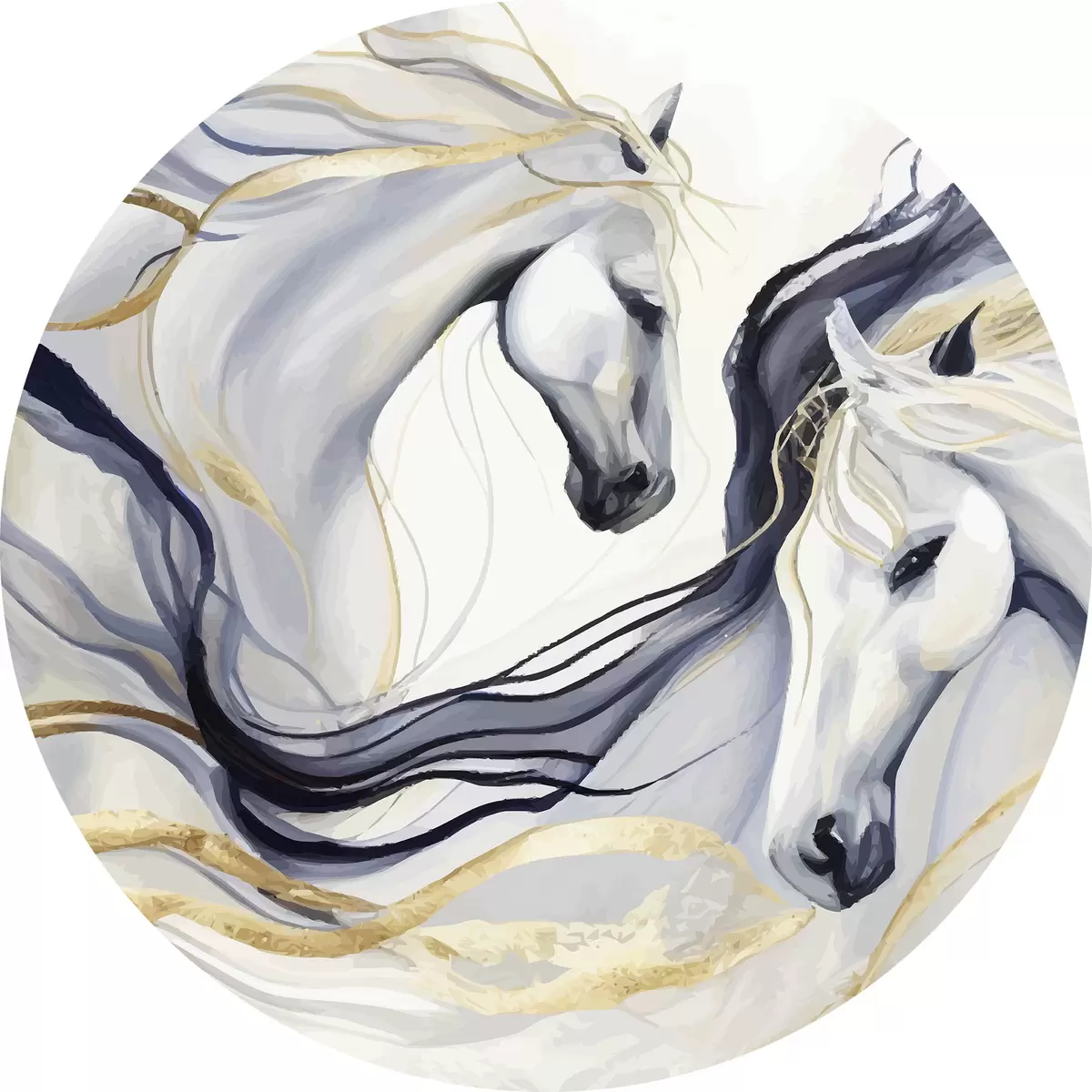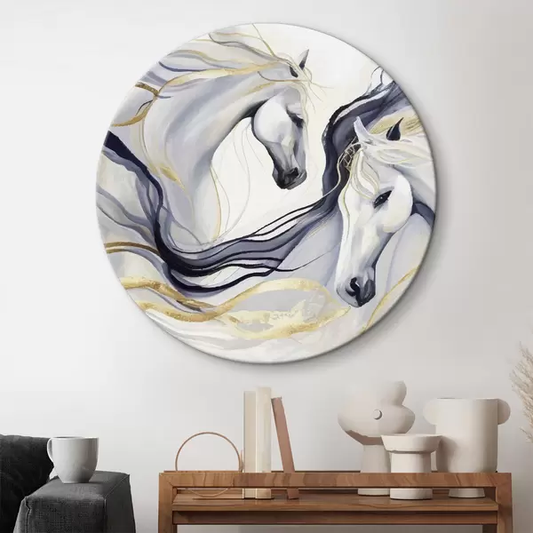 Cuadros redondos Pareja abstracta de caballos con detalles dorados r36623