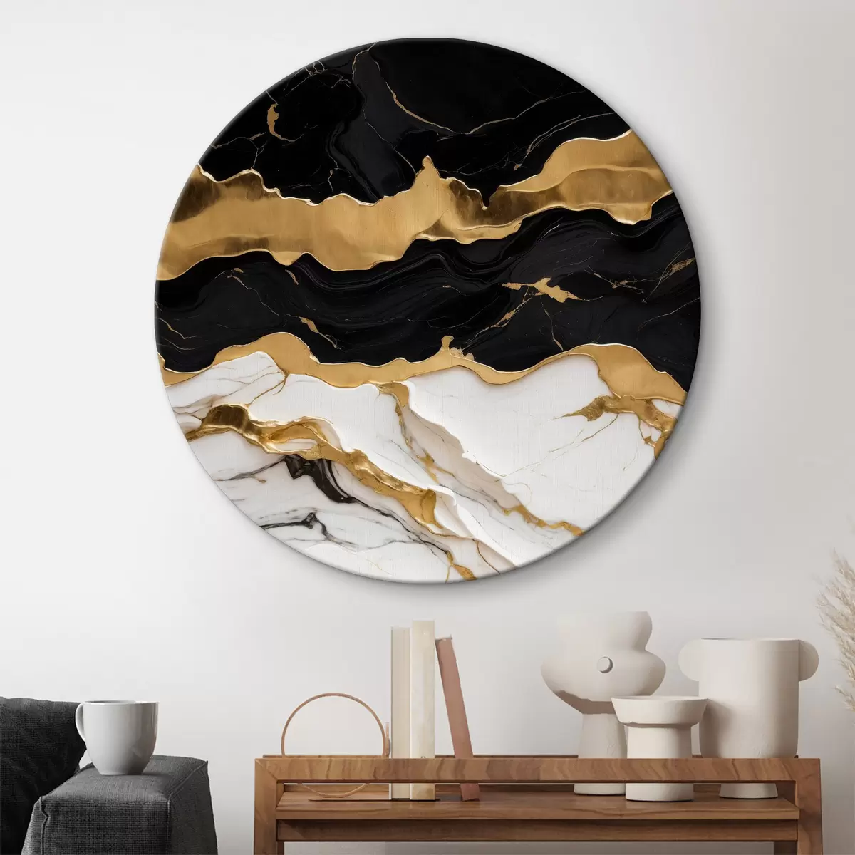 Cuadros redondos Abstracción en blanco y negro sobre mármol con una línea dorada r36636