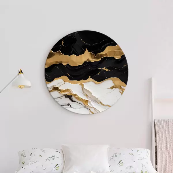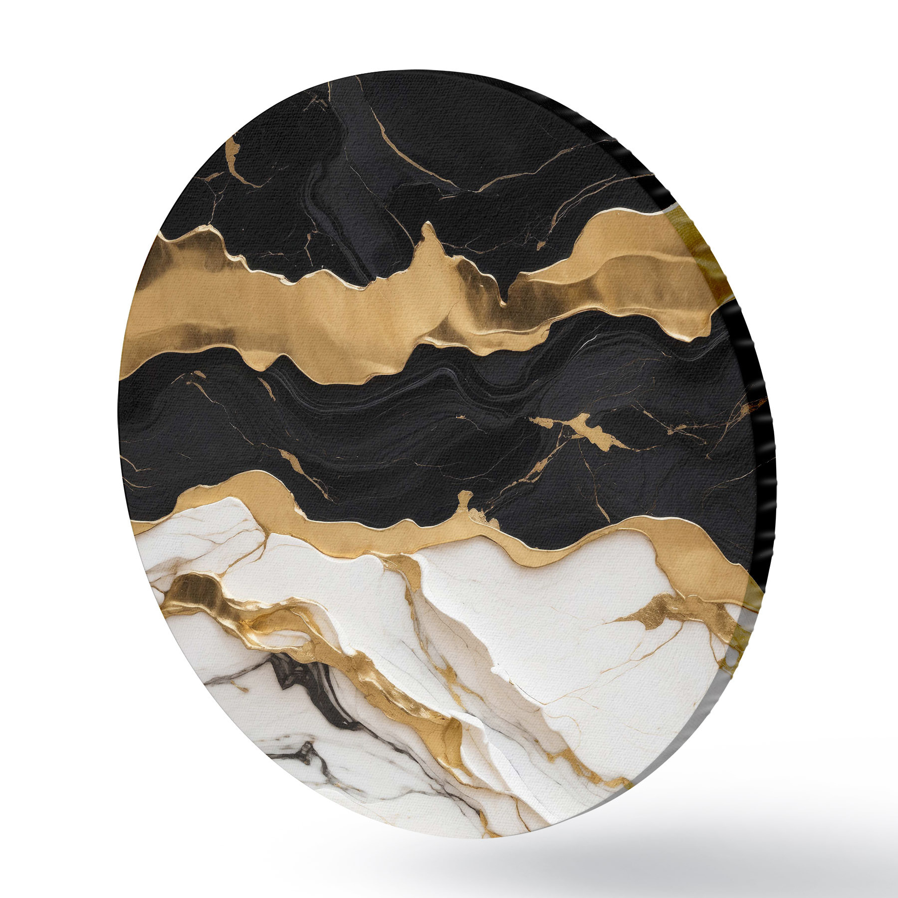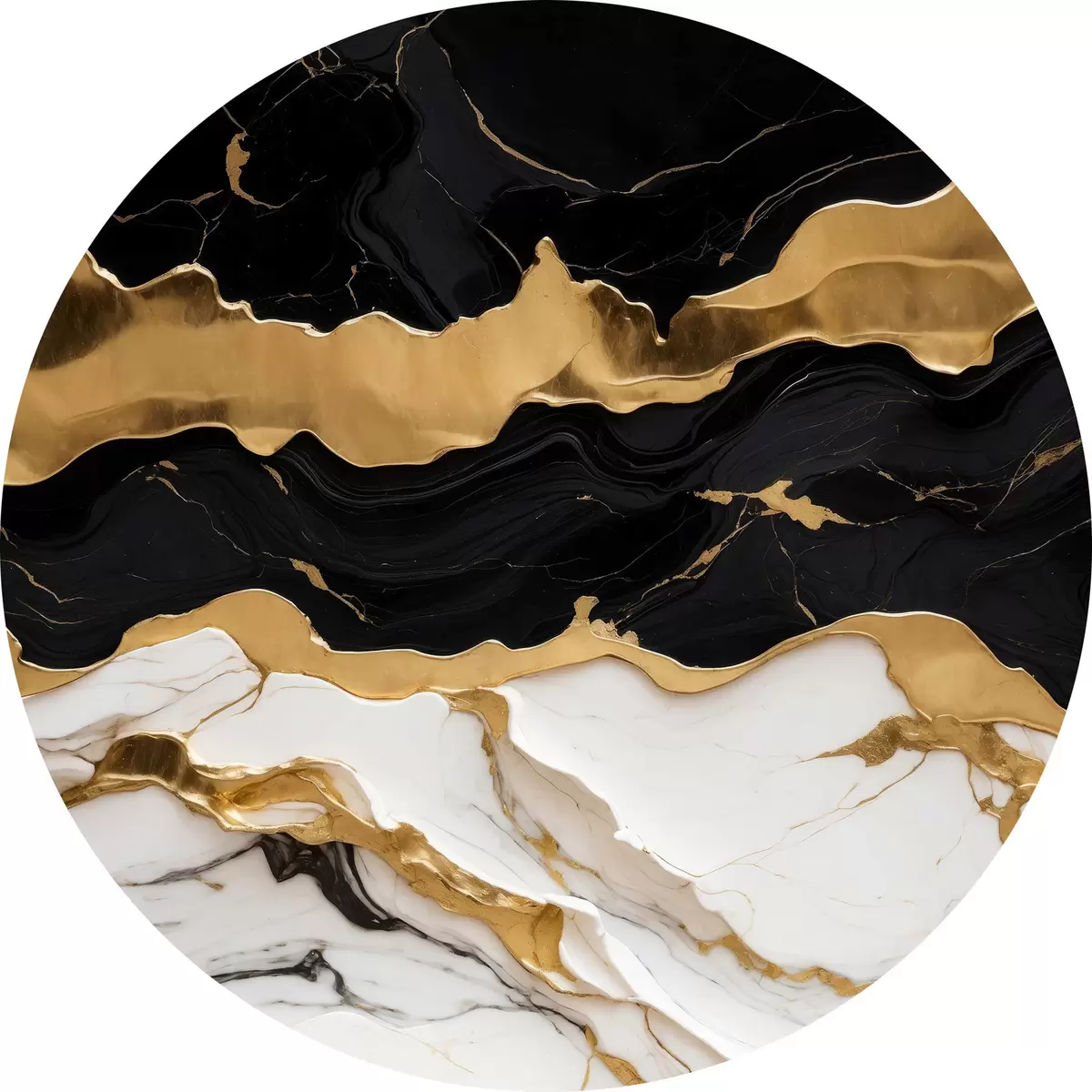 Cuadros redondos Abstracción en blanco y negro sobre mármol con una línea dorada r36636