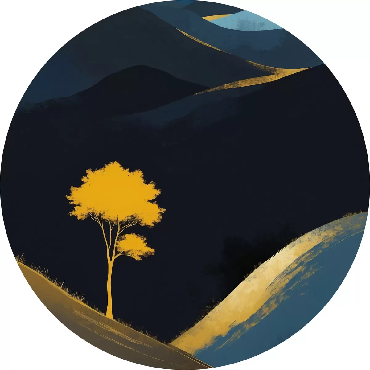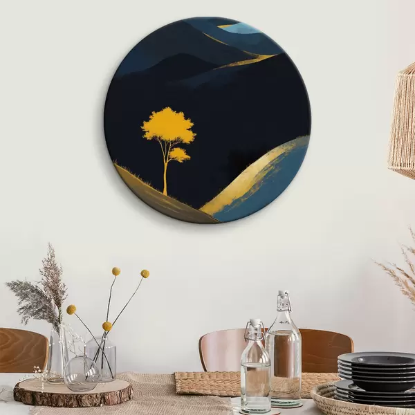 Cuadros redondos Un árbol solitario bajo un cielo nocturno sin estrellas r36639