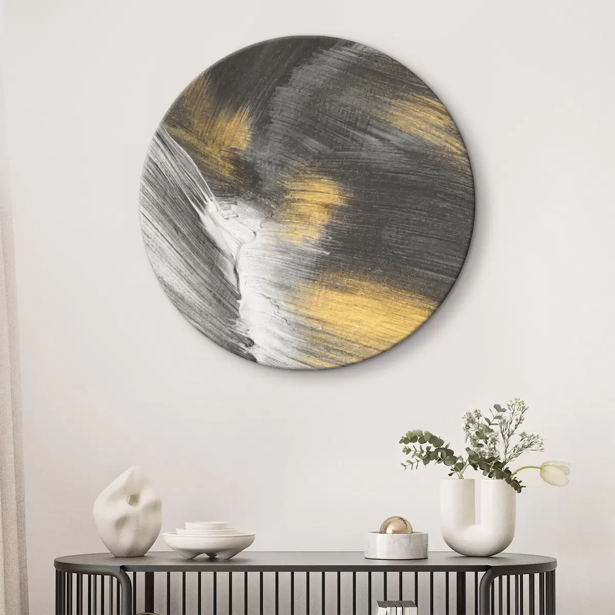 Cuadros redondos Pinceladas metálicas se entrelazan entre sí r36673