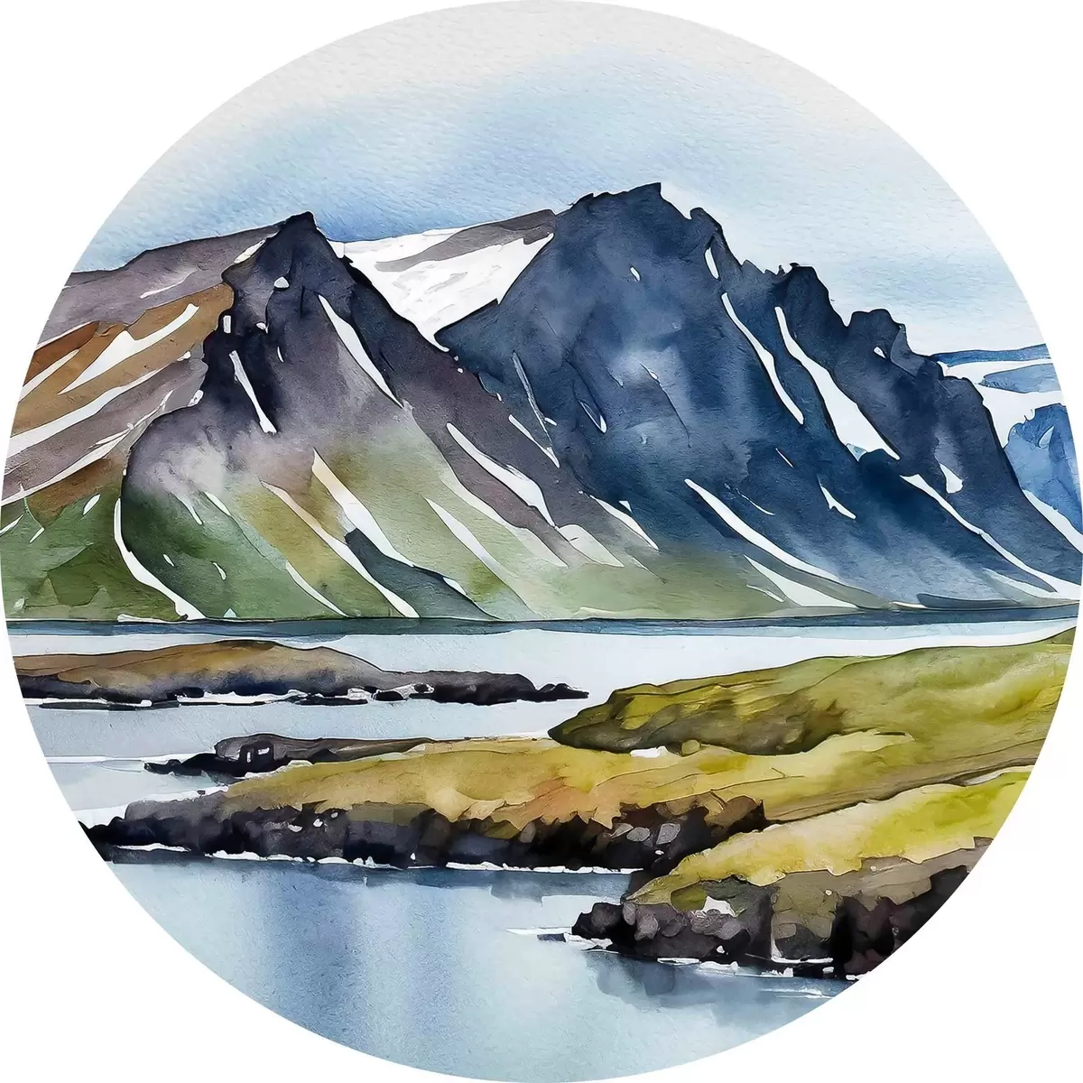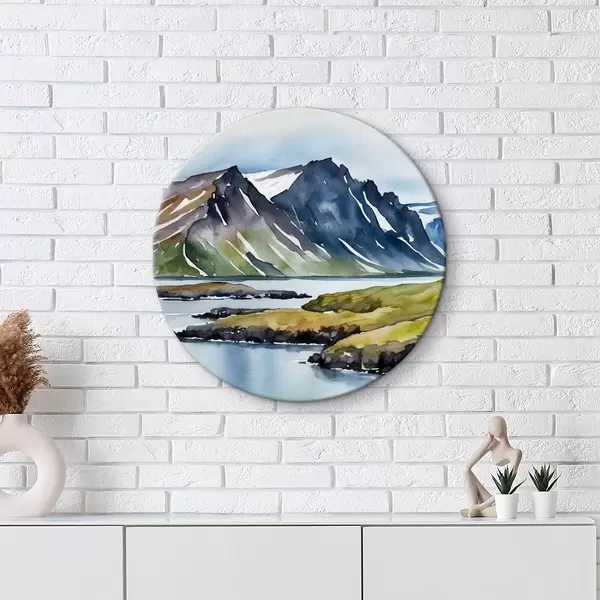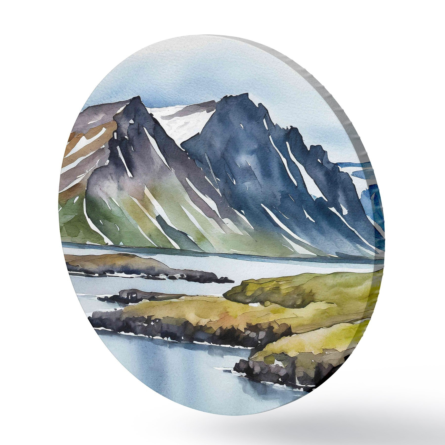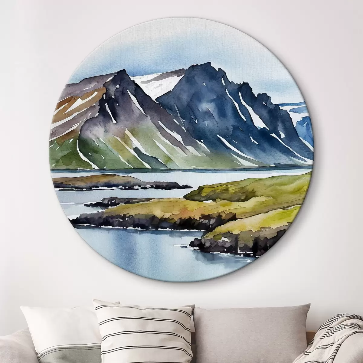 Cuadros redondos Acuarela que representa un lago y montañas r36679