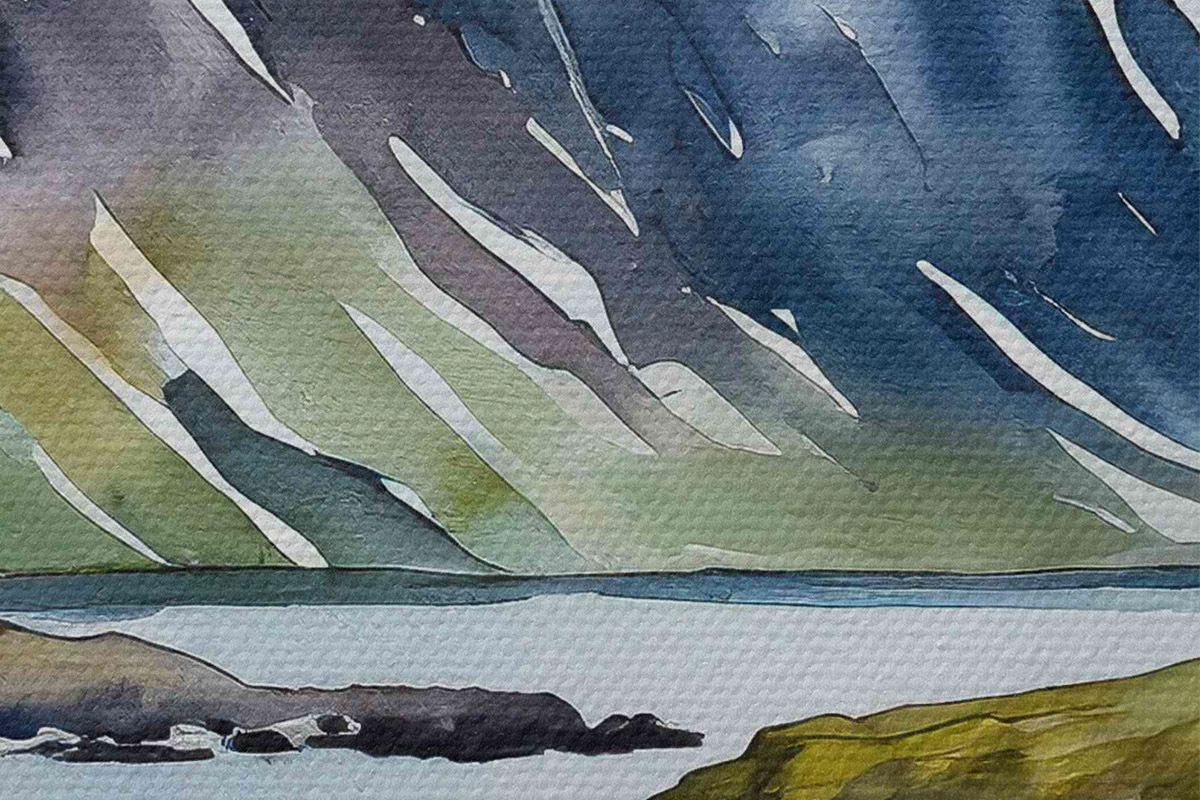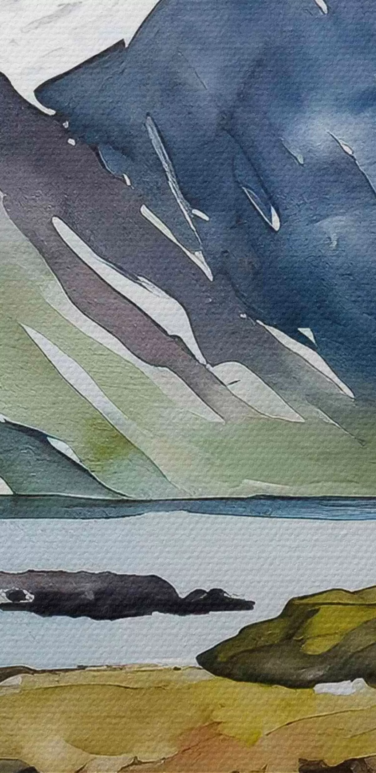 Foto Acuarela que representa un lago y montañas Nr r36679