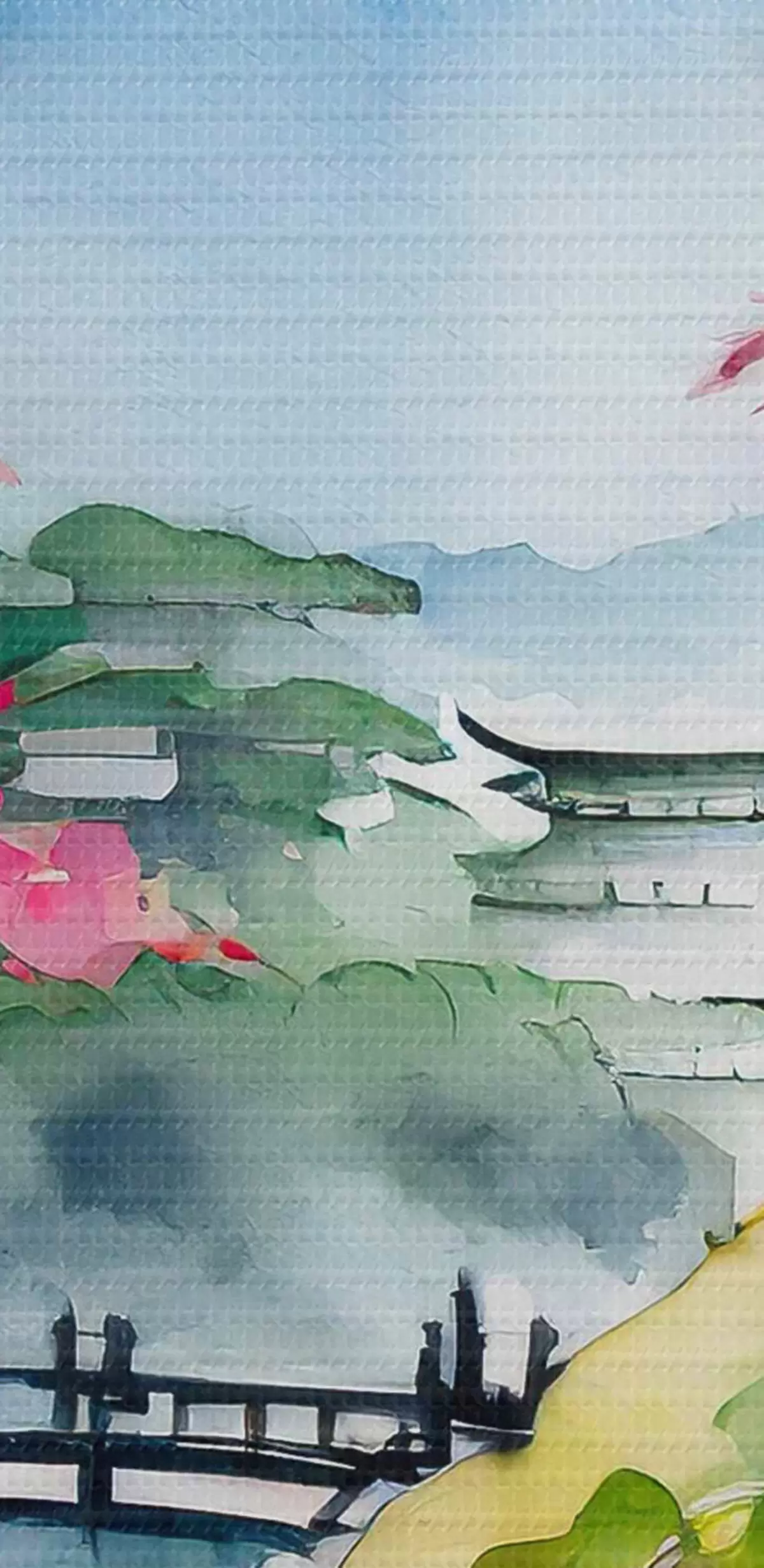 Foto Acuarela Japón, cerezo, montañas Nr r36691