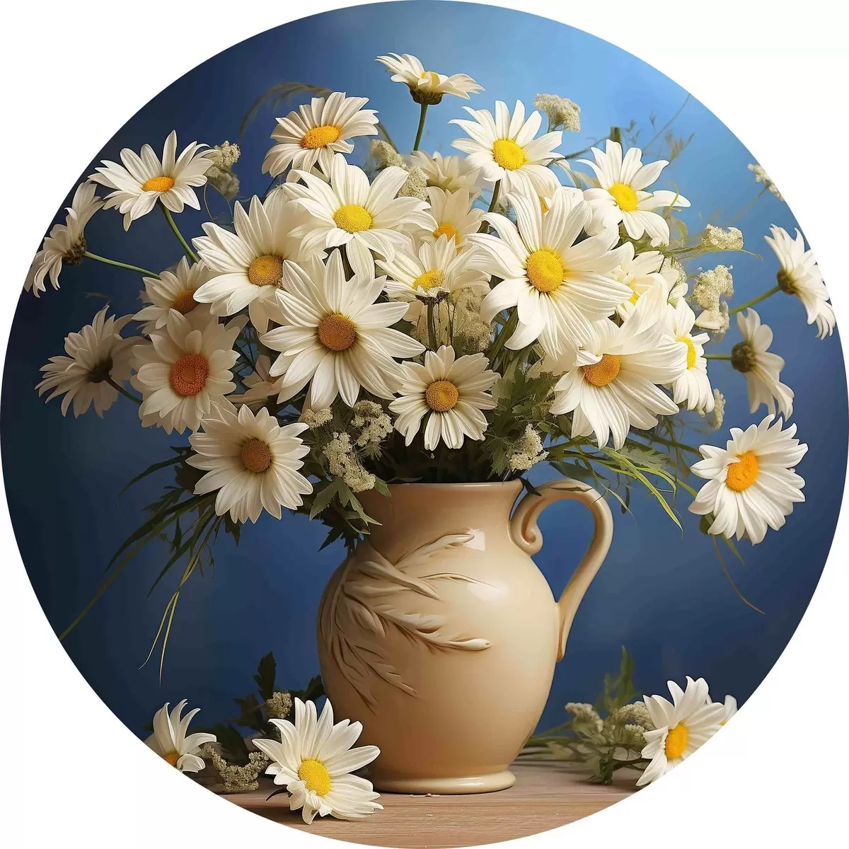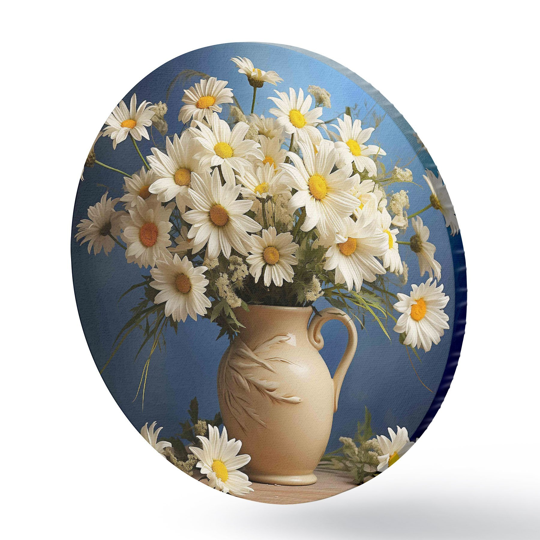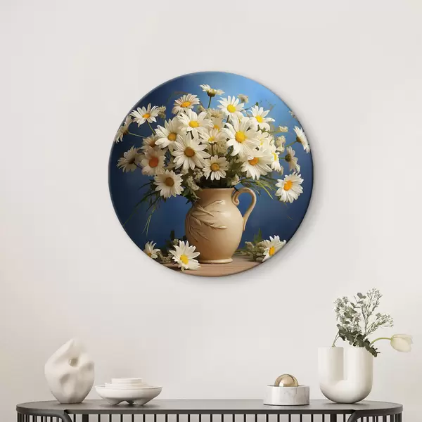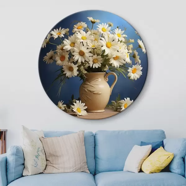 Cuadros redondos Maravilloso ramo de margaritas blancas sobre fondo azul r36814