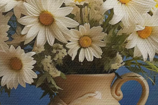 Foto Maravilloso ramo de margaritas blancas sobre fondo azul Nr r36814