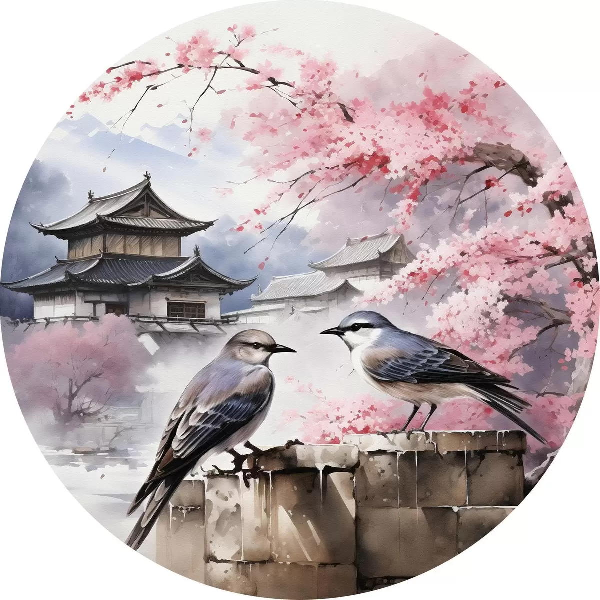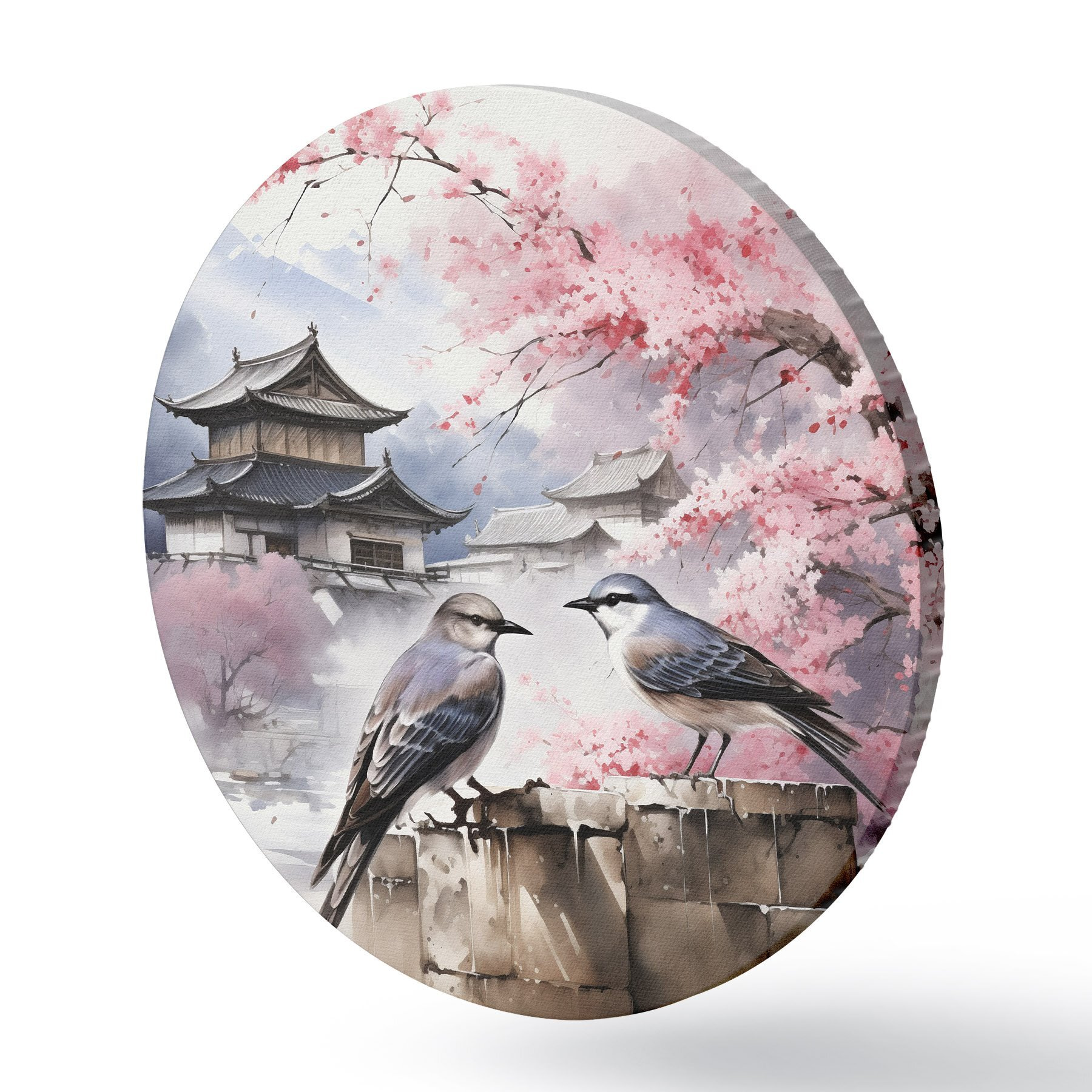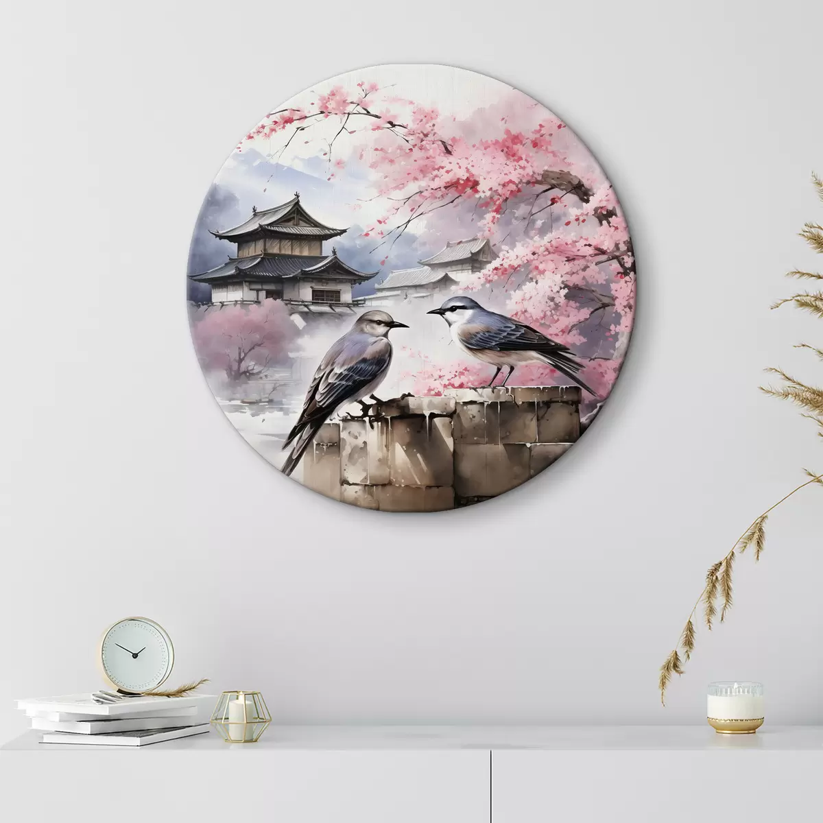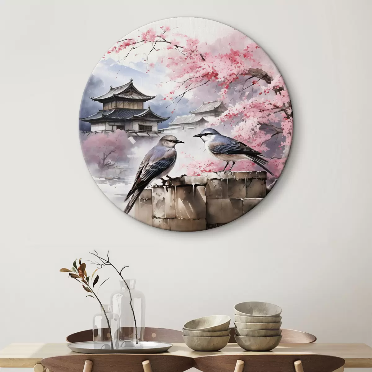 Cuadros redondos Dos pájaros sobre un fondo de sakura en flor r36815
