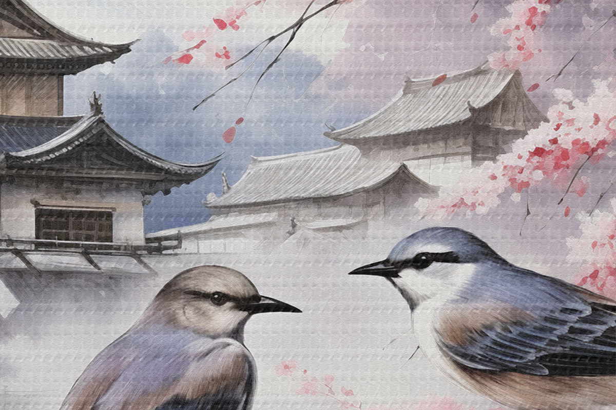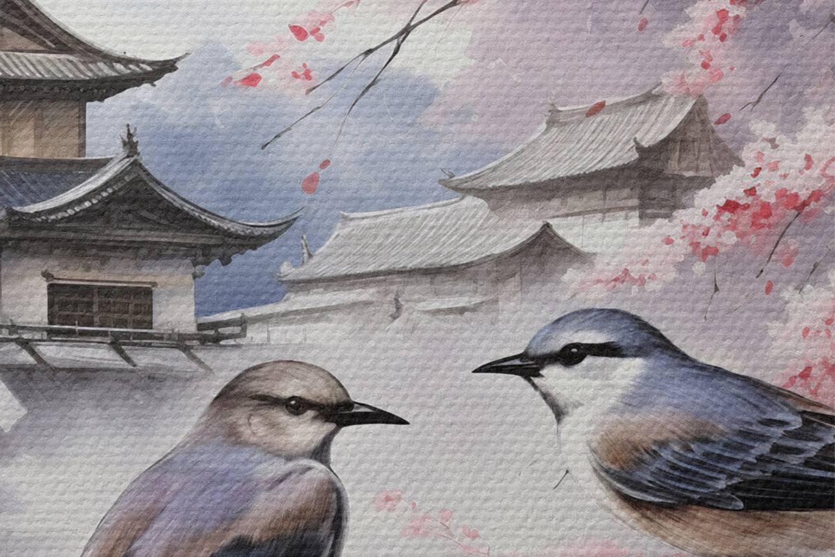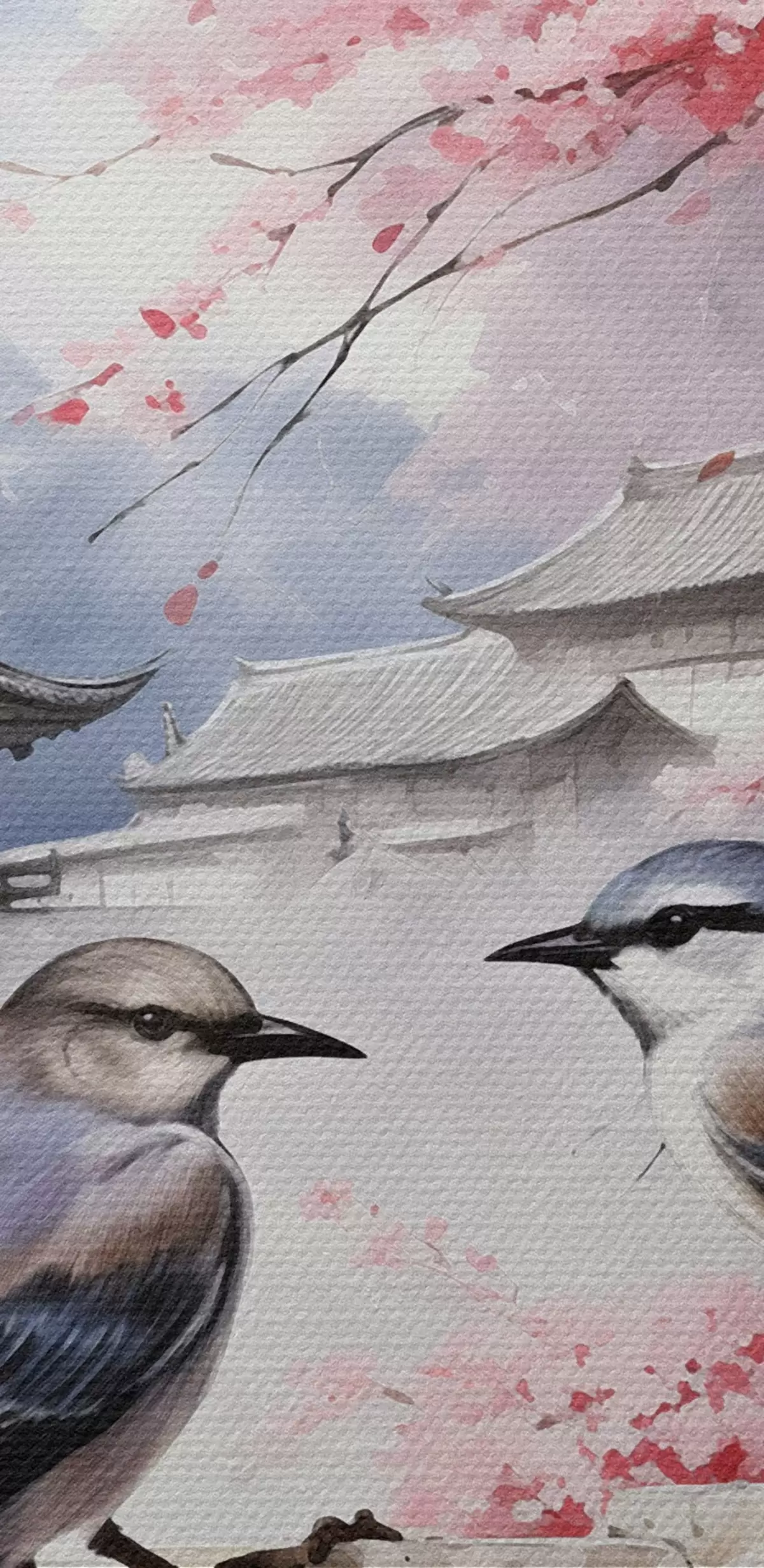 Foto Dos pájaros sobre un fondo de sakura en flor Nr r36815