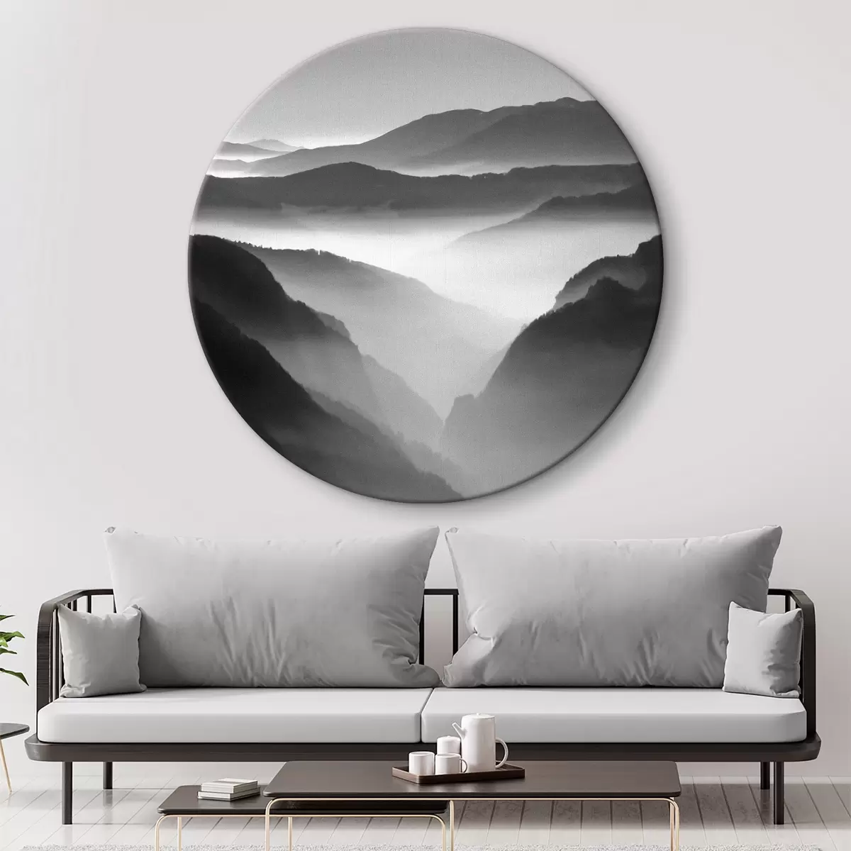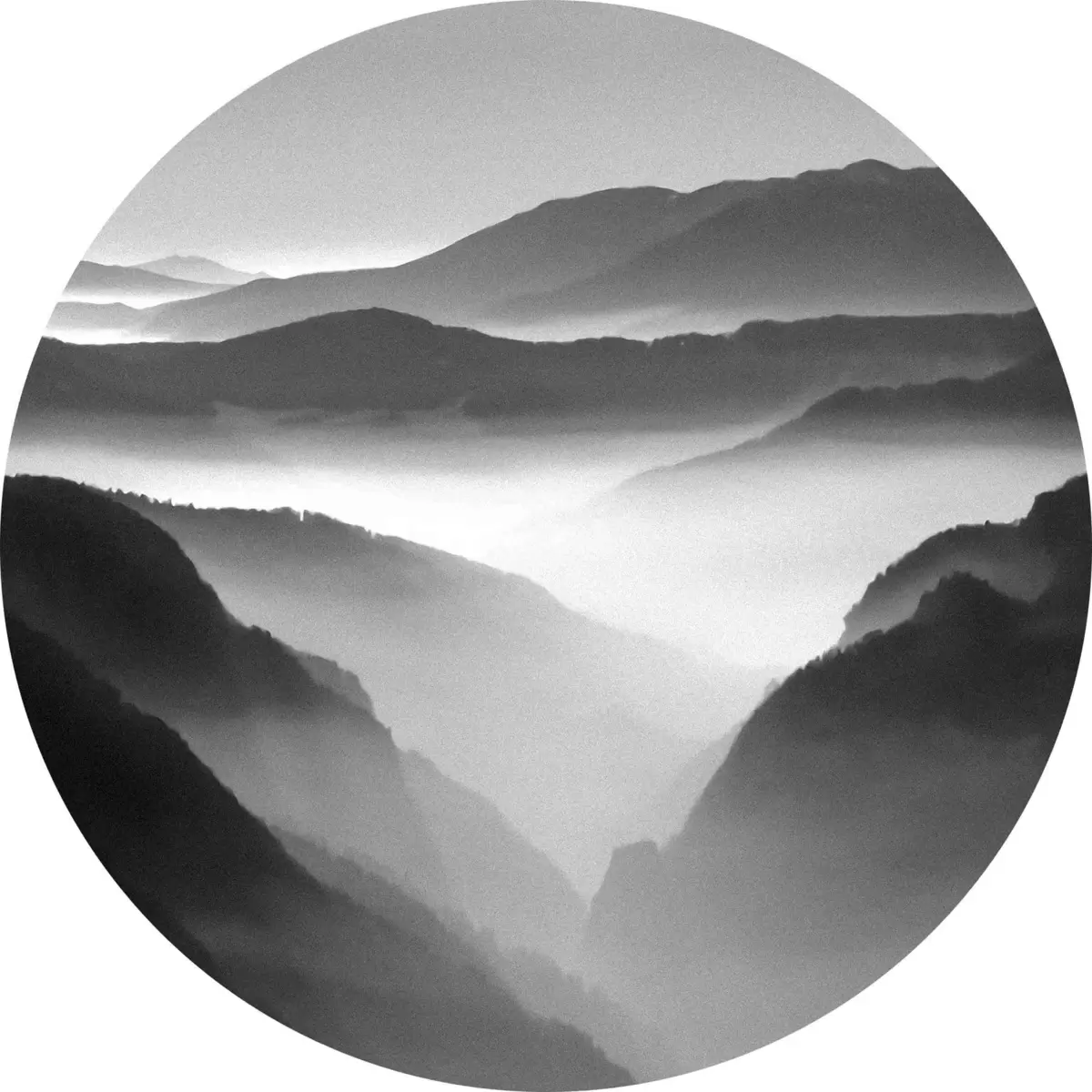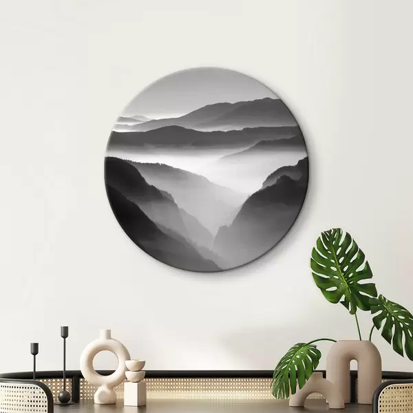 Cuadros redondos Foto de montañas en blanco y negro r36845