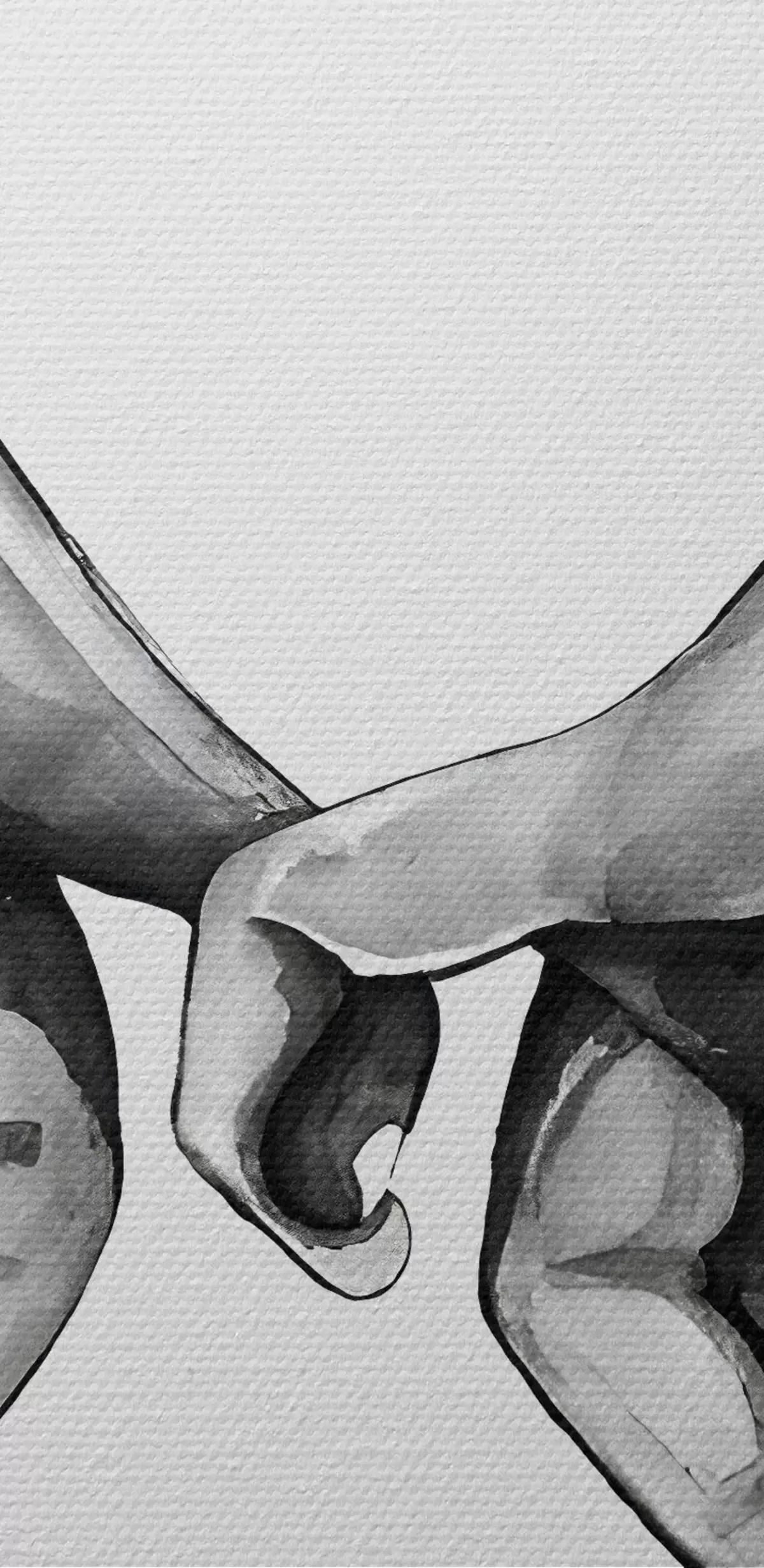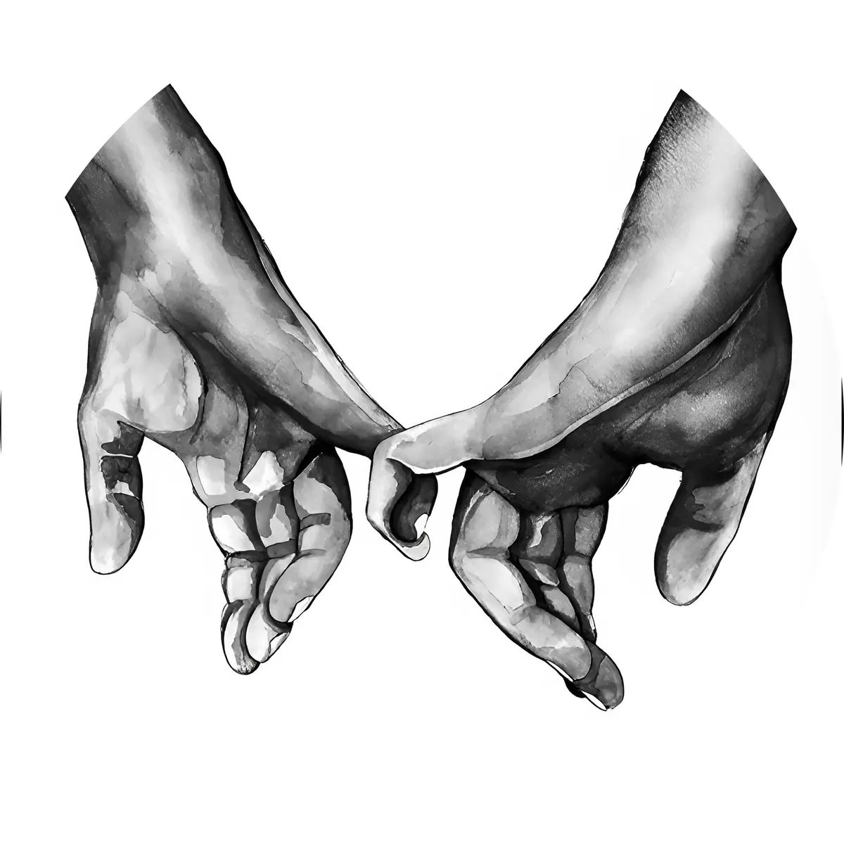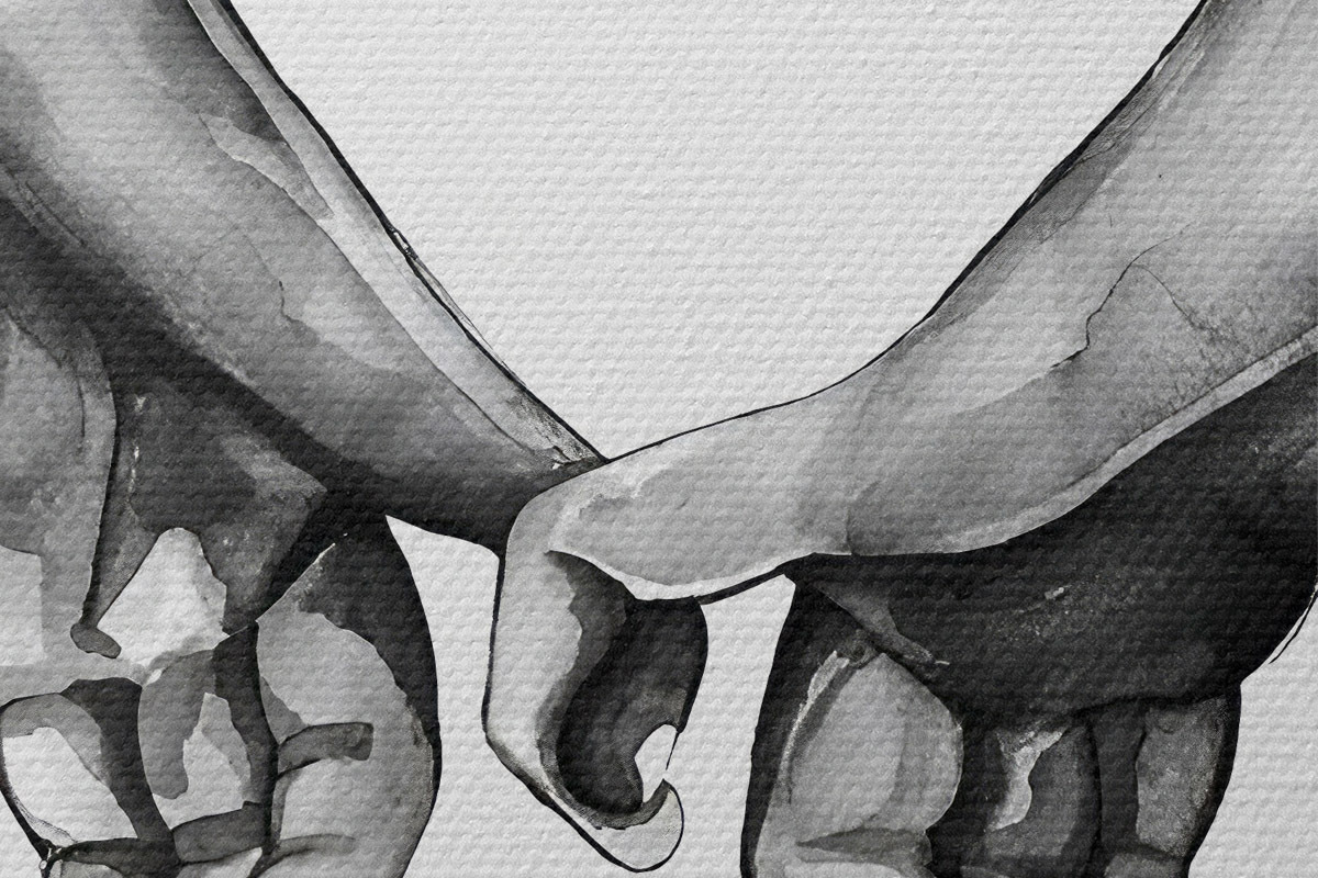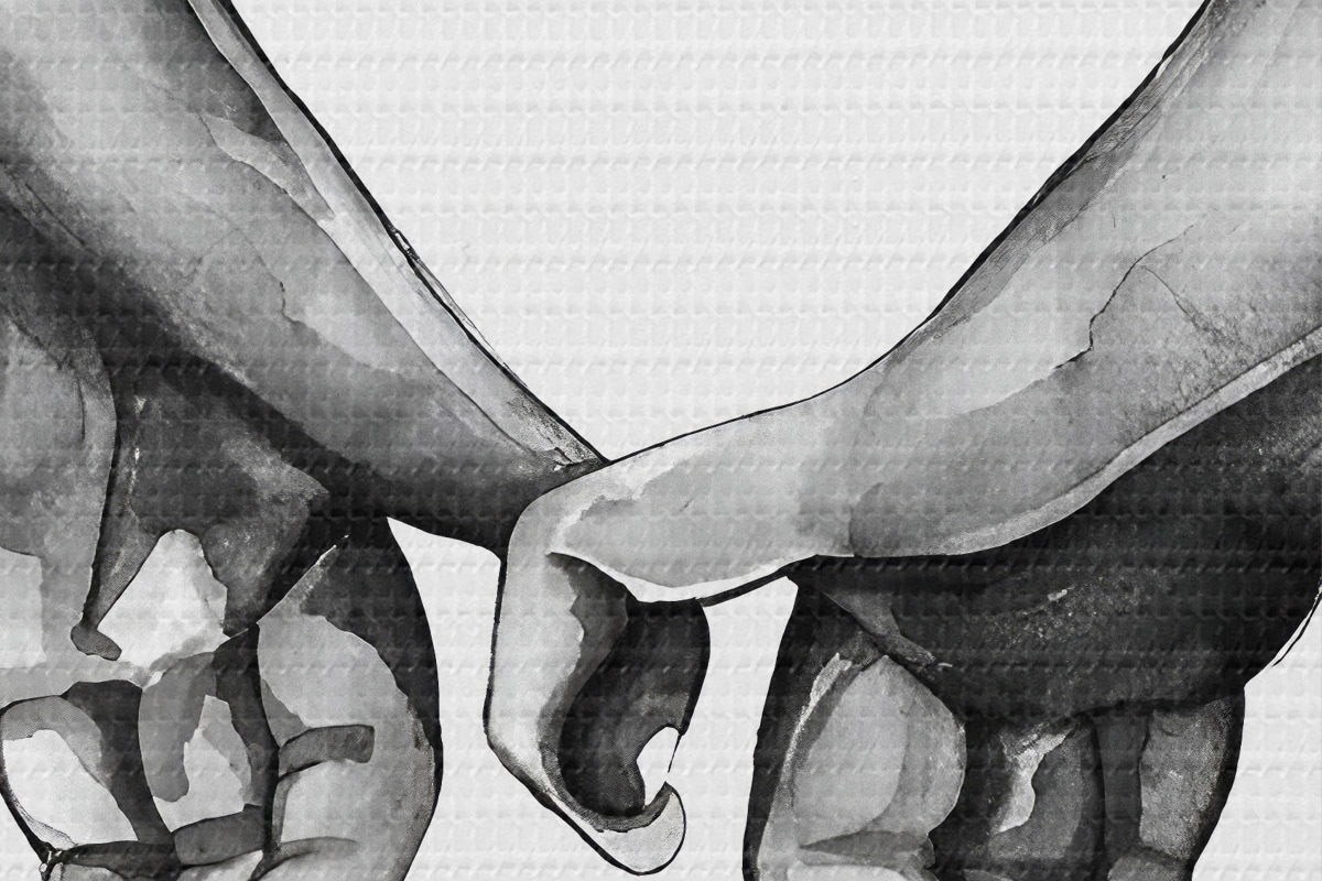 Foto Blanco y negro tomados de la mano sobre fondo blanco Nr r36848