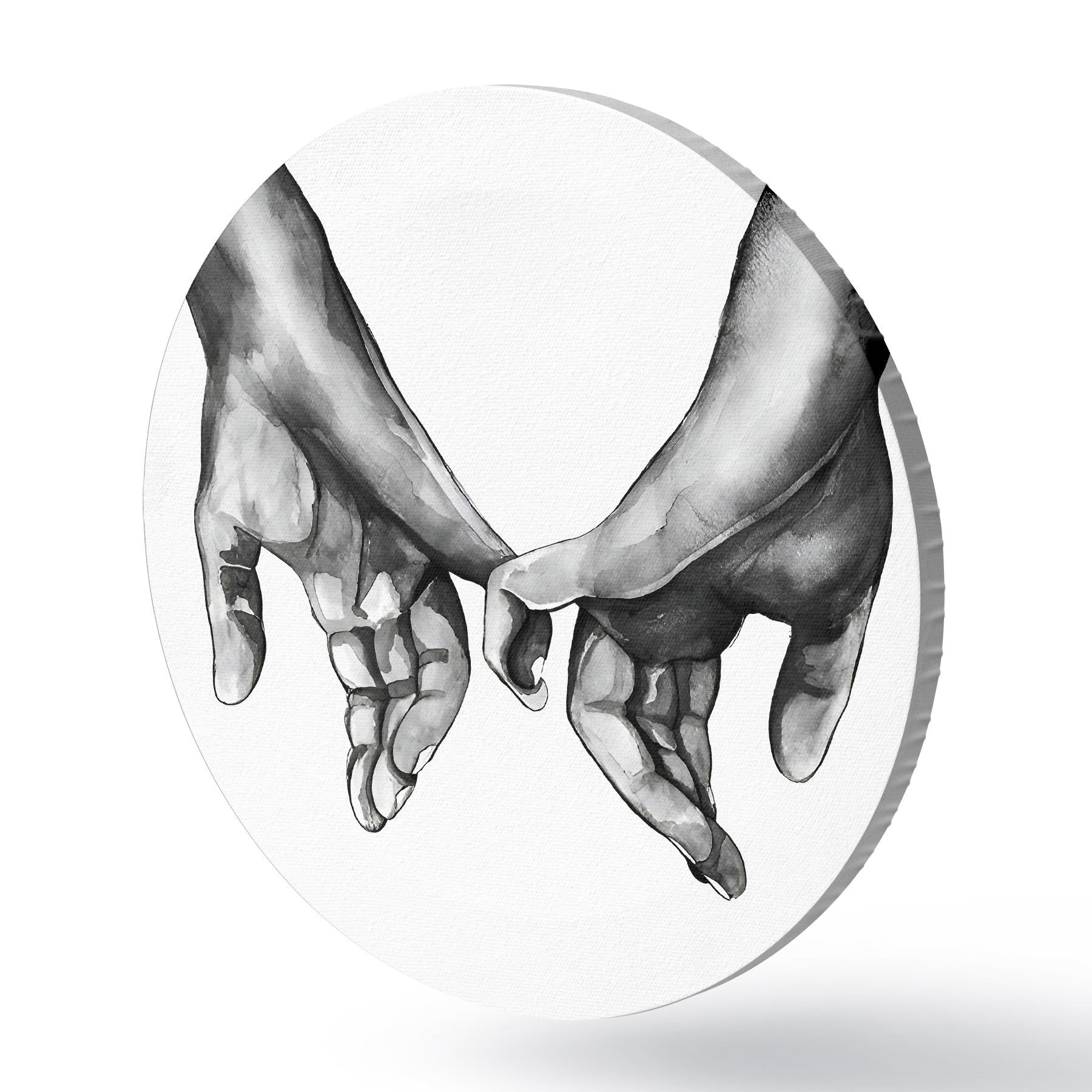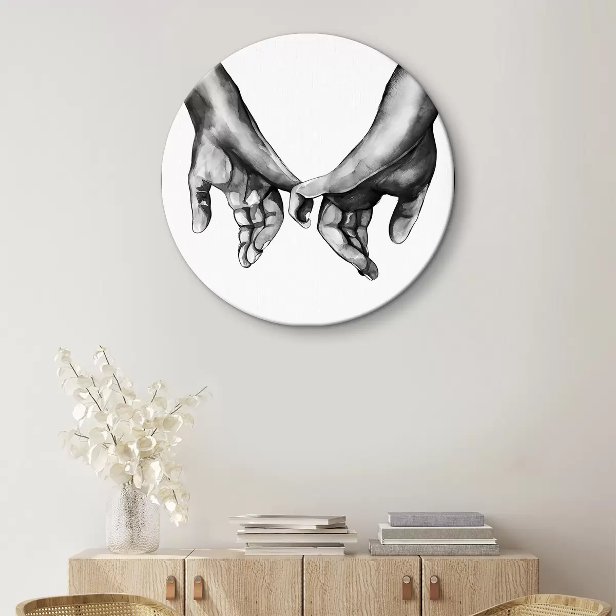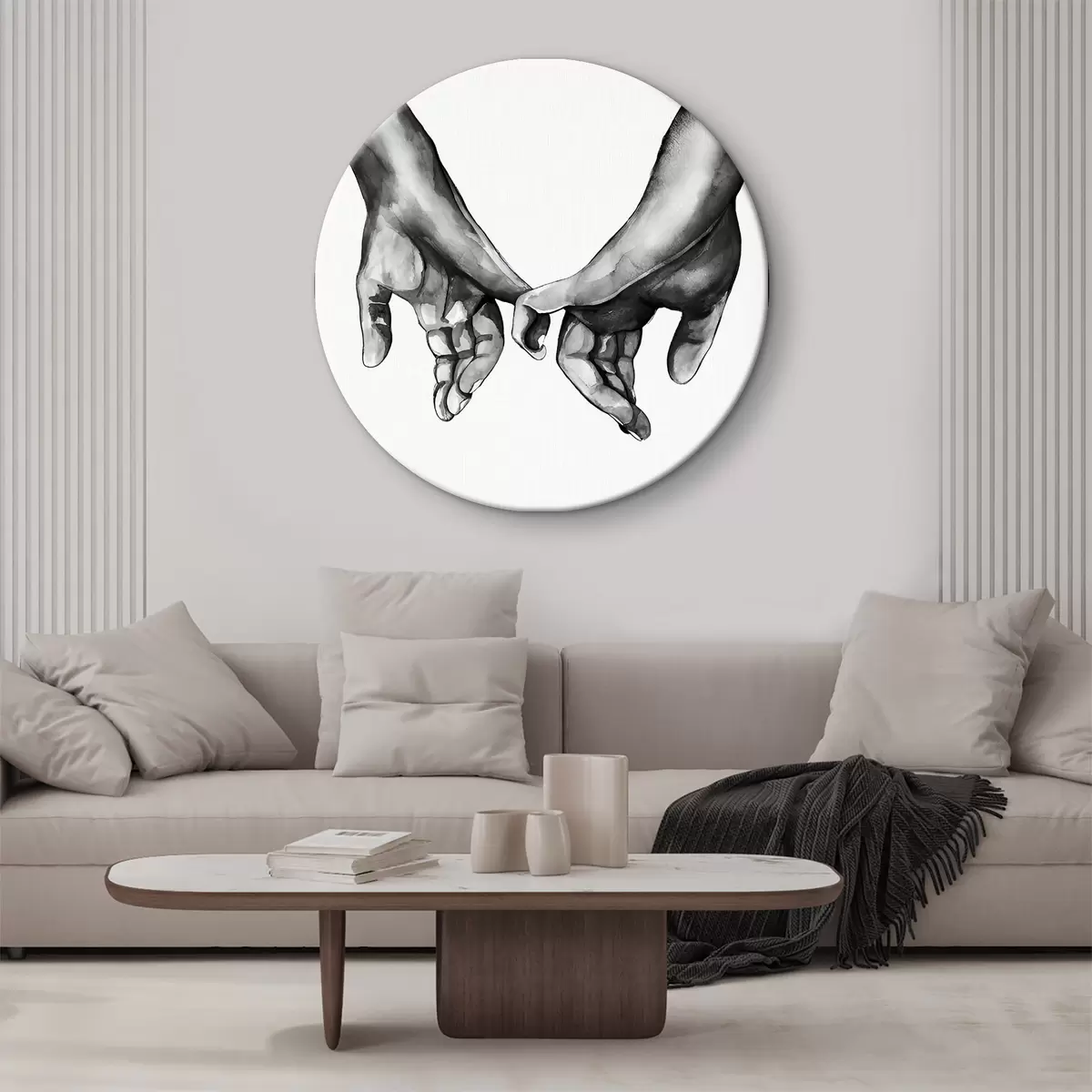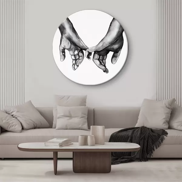Cuadros redondos Blanco y negro tomados de la mano sobre fondo blanco r36848
