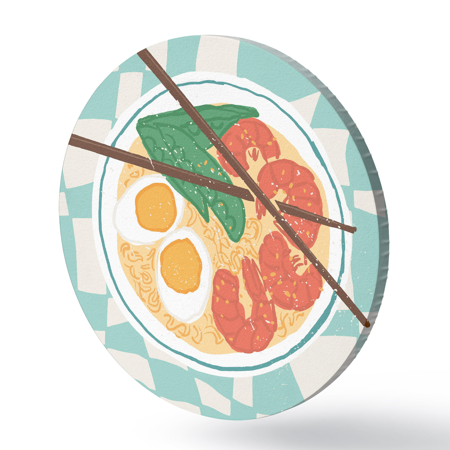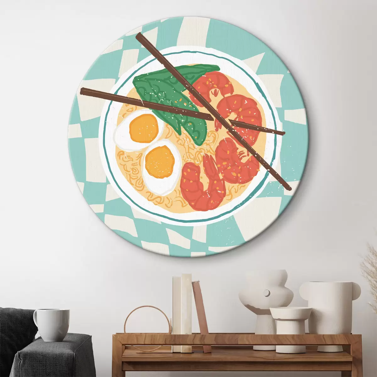 Cuadros redondos Afiche de comida ramen con estilo, estilo retro, arte pop r36863